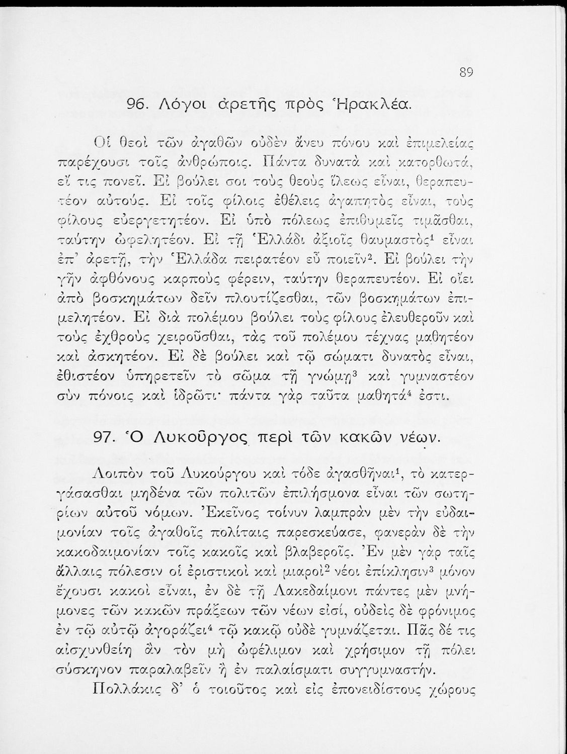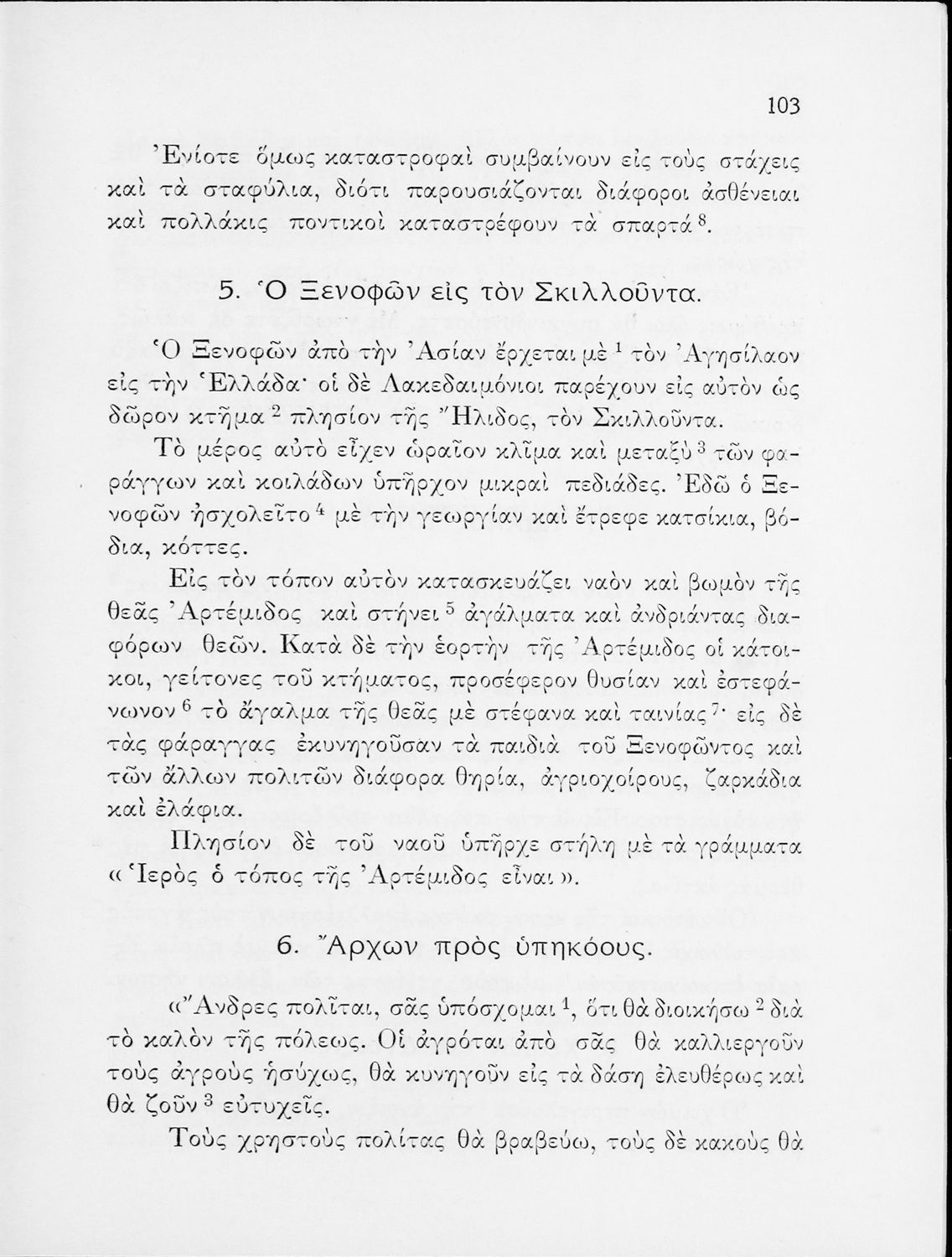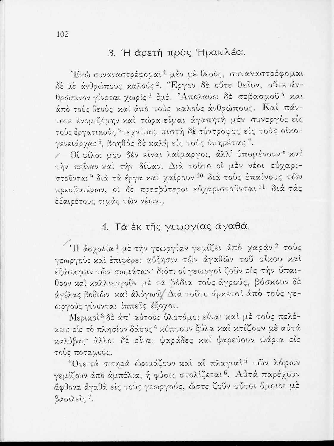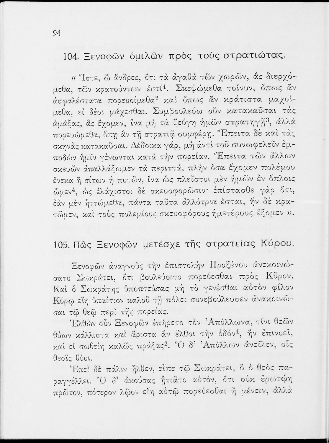 Σχολικό Εγχειρίδιο Αρχαίων Ελληνικών που περιλαμβάνει κείμενα προσαρμοσμένα στη διδασκαλία των γραμματικών και συντακτικών φαινομένων, και ερμηνευτικές και λεξιλογικές σημειώσεις.