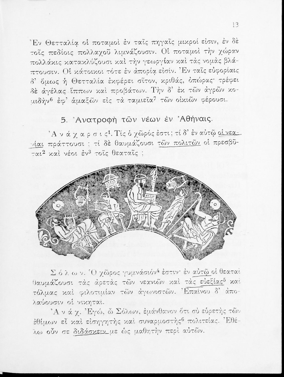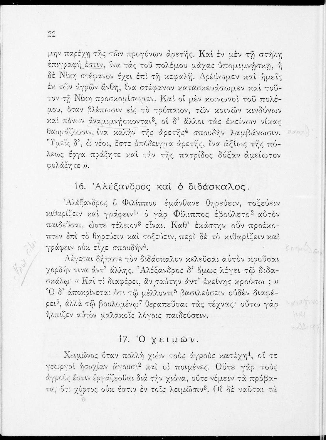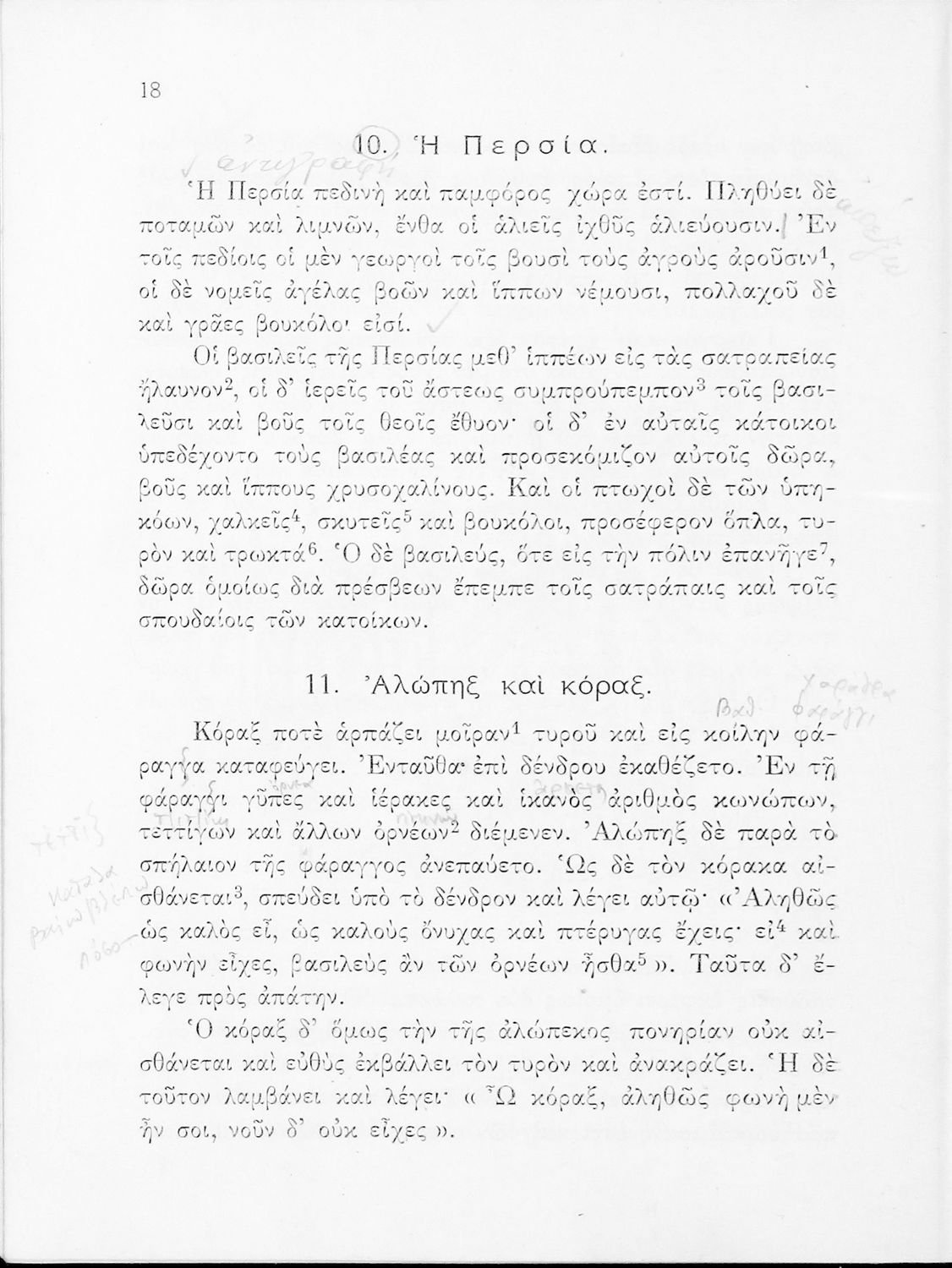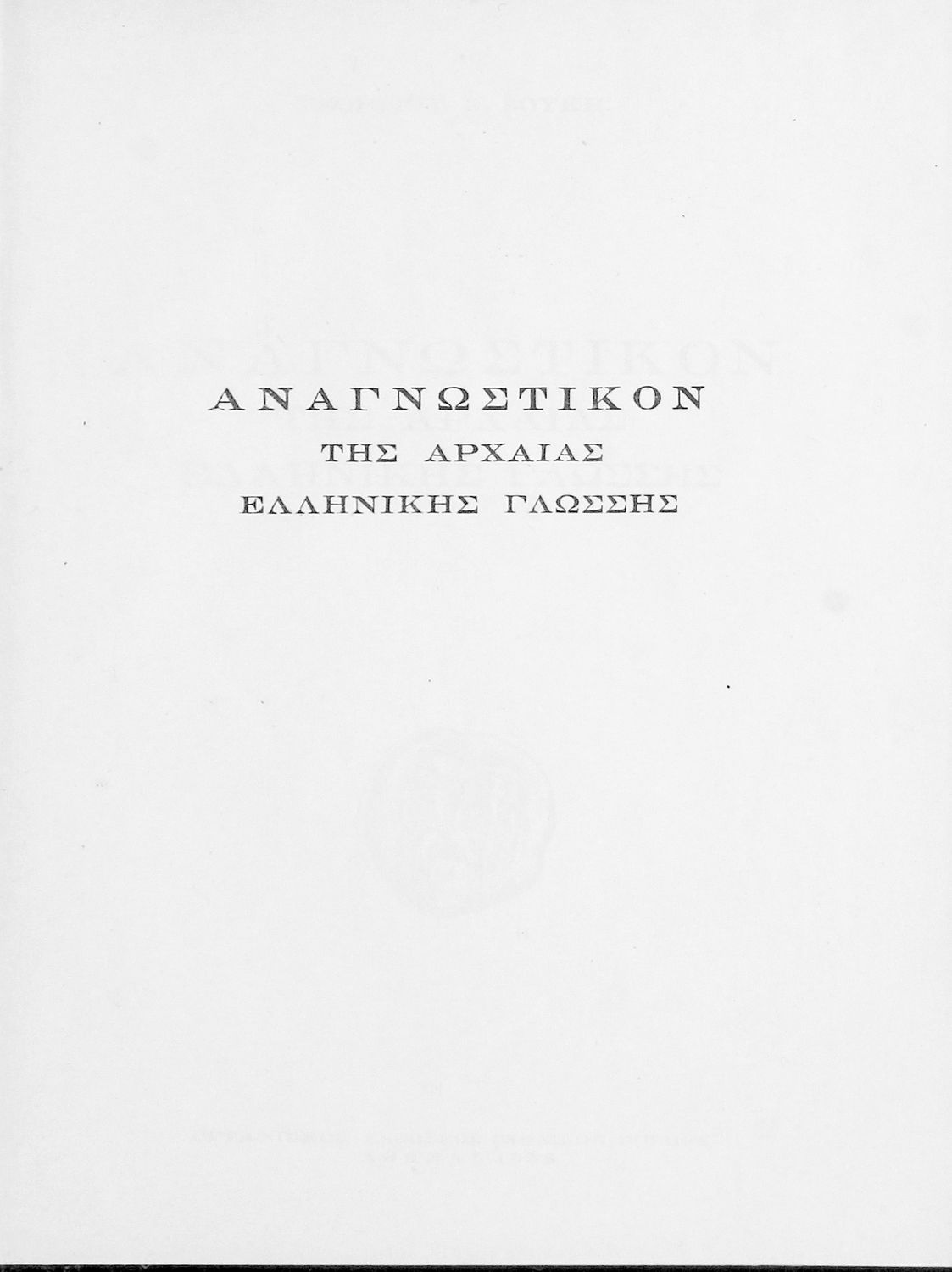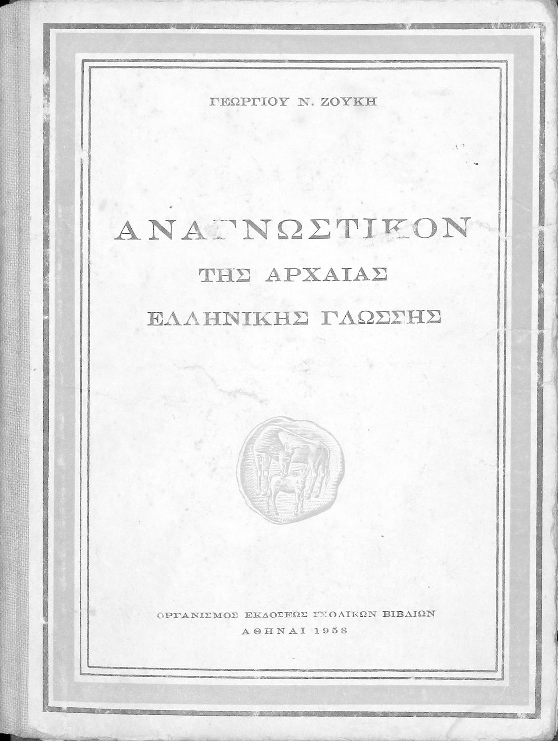 Σχολικό Εγχειρίδιο Αρχαίων Ελληνικών που περιλαμβάνει κείμενα προσαρμοσμένα στη διδασκαλία των γραμματικών και συντακτικών φαινομένων, και ερμηνευτικές και λεξιλογικές σημειώσεις.
