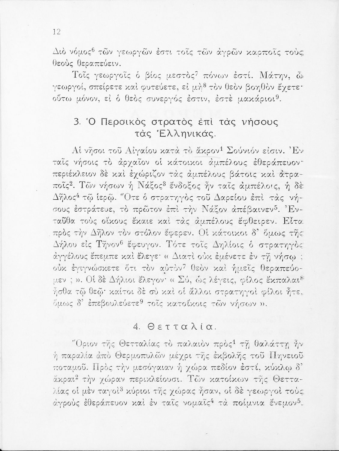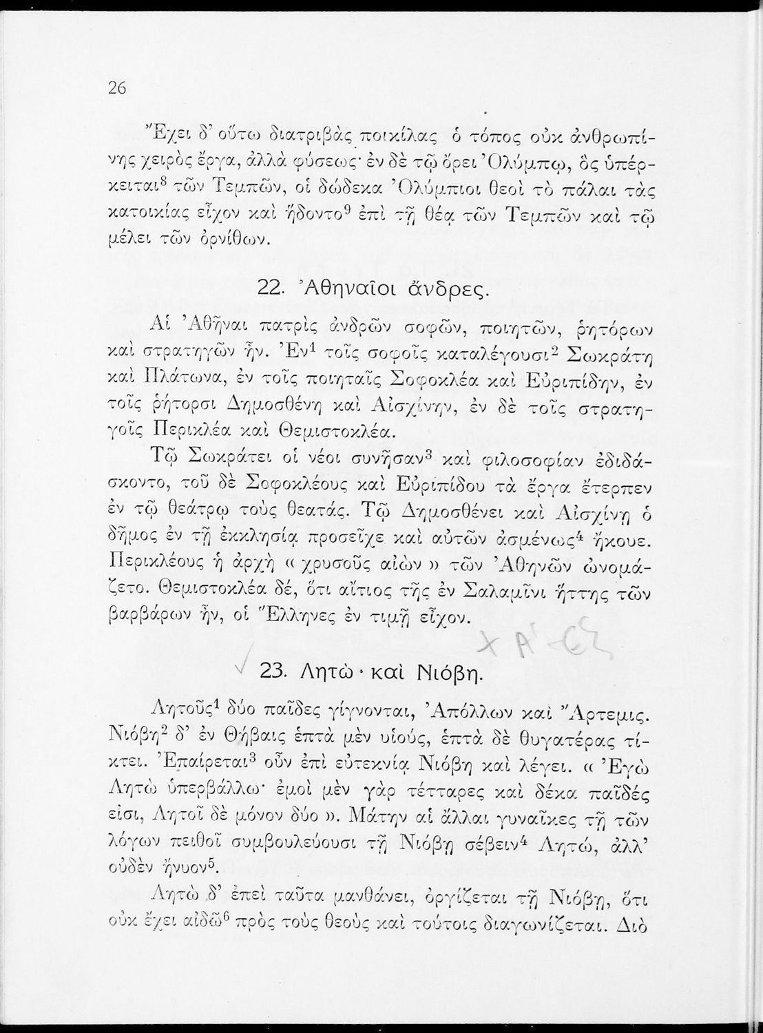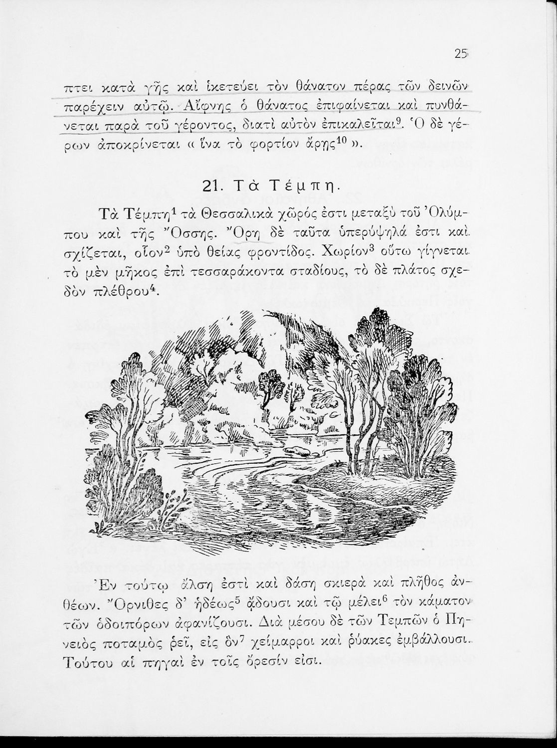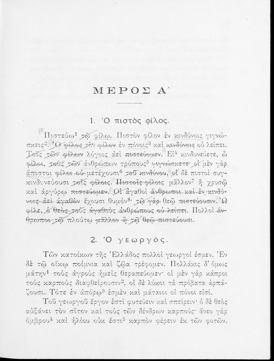 Σχολικό Εγχειρίδιο Αρχαίων Ελληνικών που περιλαμβάνει κείμενα προσαρμοσμένα στη διδασκαλία των γραμματικών και συντακτικών φαινομένων, και ερμηνευτικές και λεξιλογικές σημειώσεις.