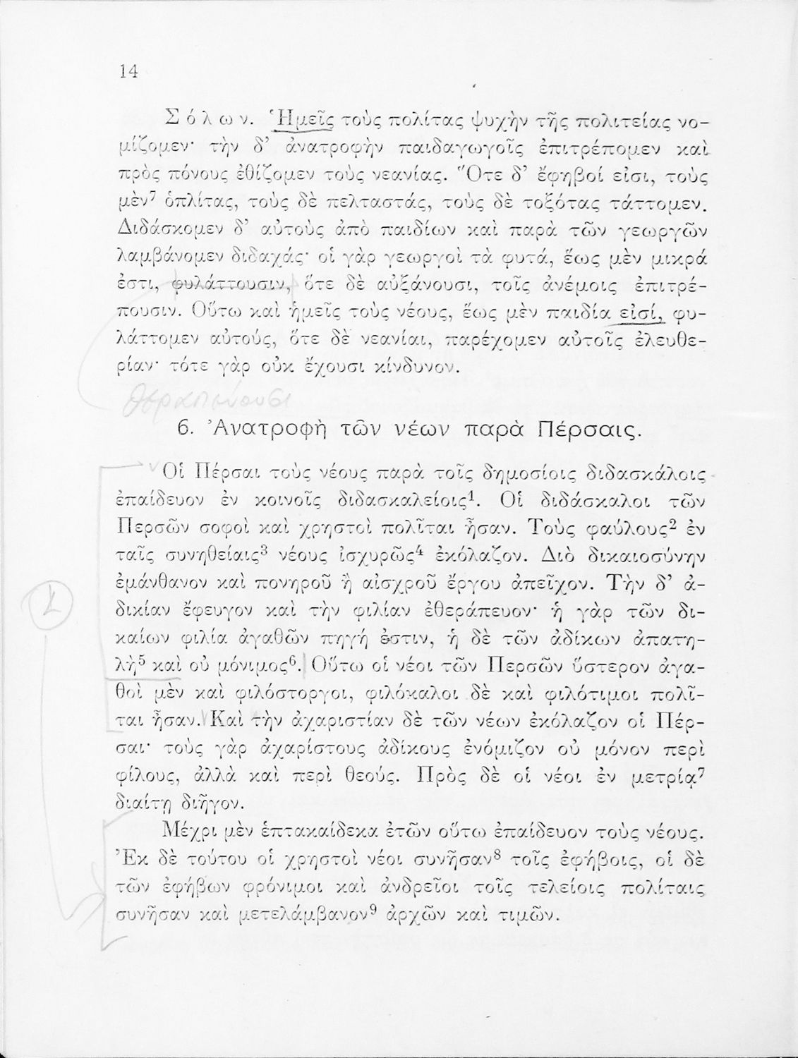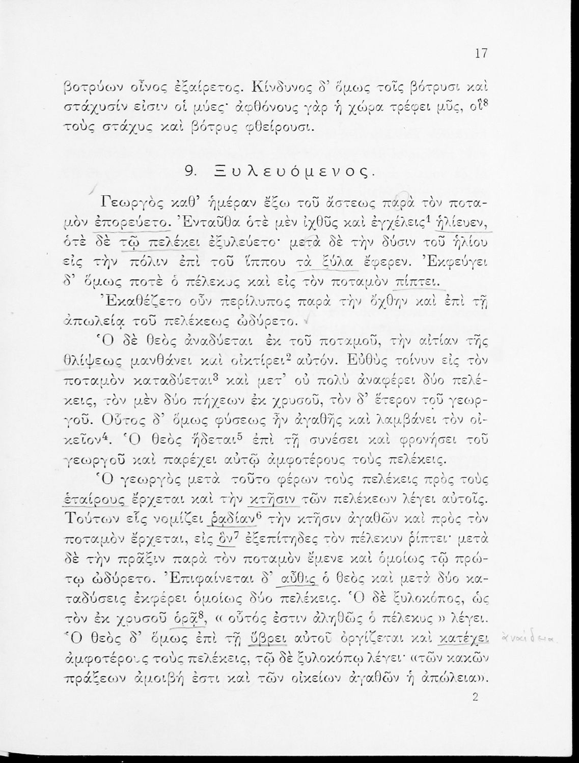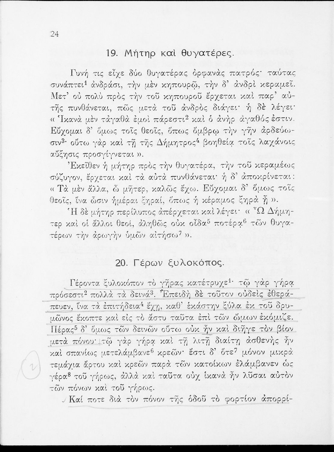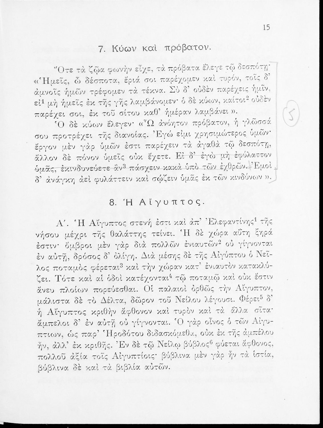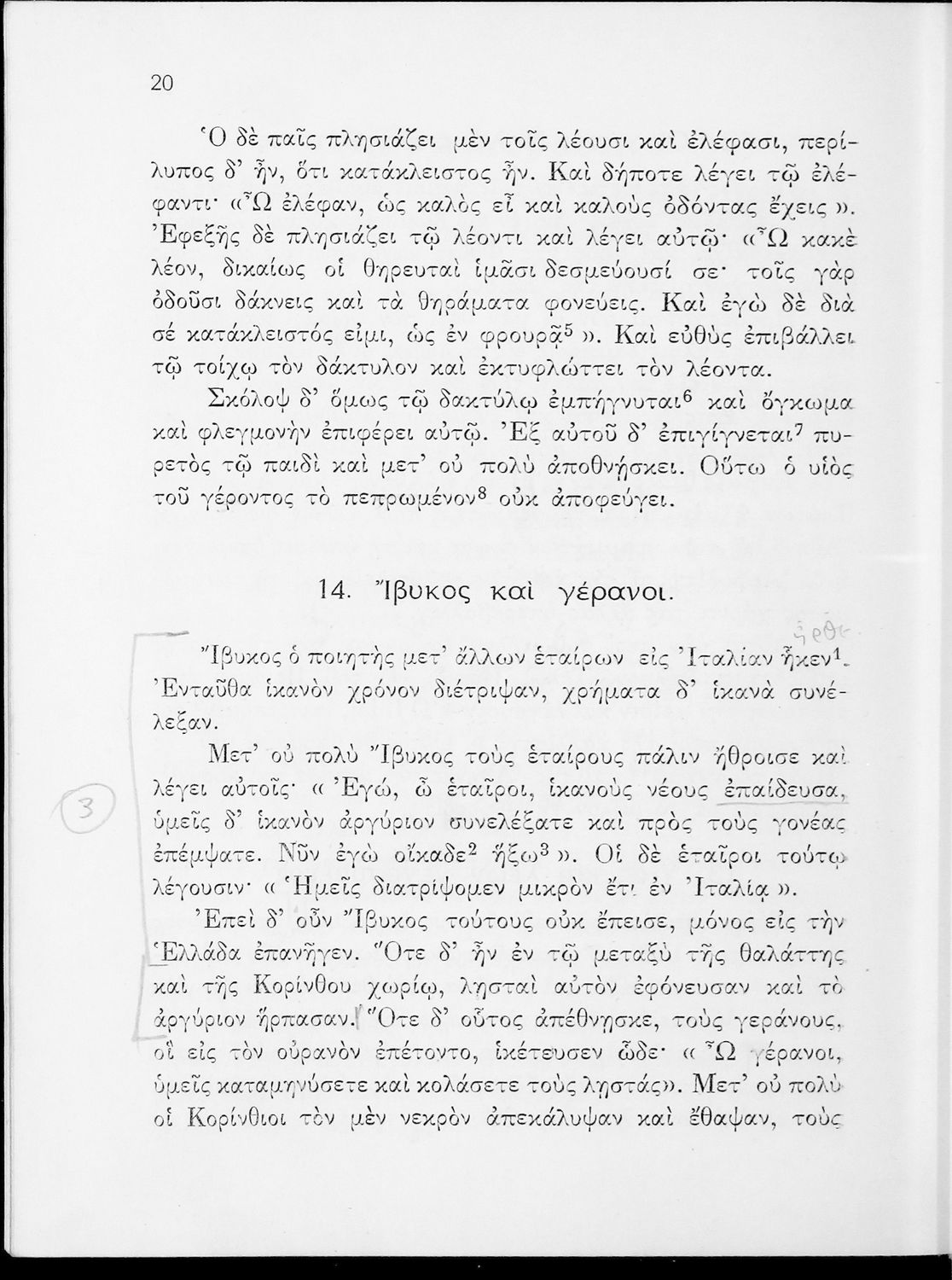 Σχολικό Εγχειρίδιο Αρχαίων Ελληνικών που περιλαμβάνει κείμενα προσαρμοσμένα στη διδασκαλία των γραμματικών και συντακτικών φαινομένων, και ερμηνευτικές και λεξιλογικές σημειώσεις.