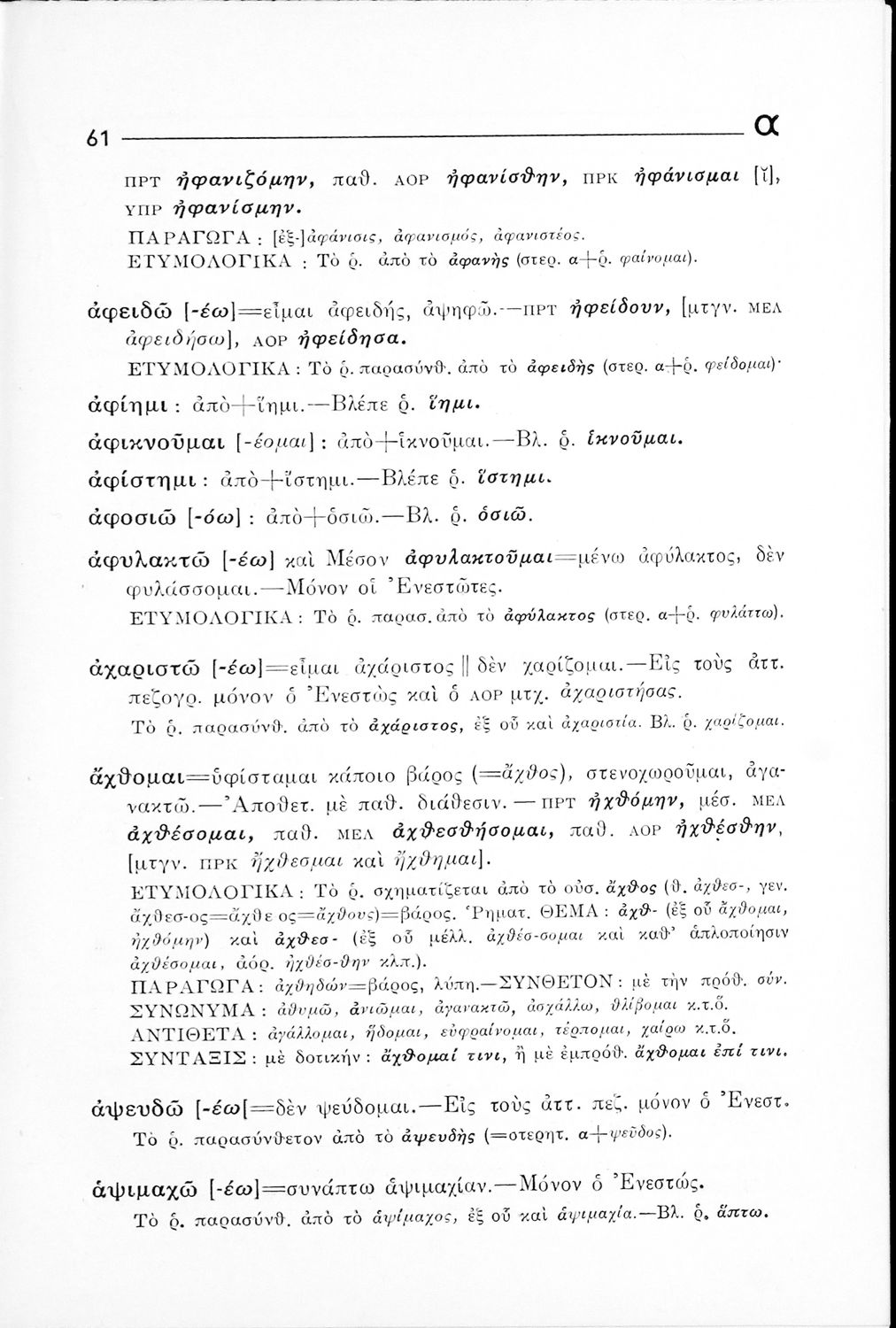 Μαθητικό βοήθημα Αρχαίων Ελληνικών που αποτελεί λεξικό ανωμάλων ρημάτων της αρχαίας ελληνικής και περιλαμβάνει την ετυμολογική επεξήγηση των ρημάτων, συνώνυμα και αρχικούς χρόνους.