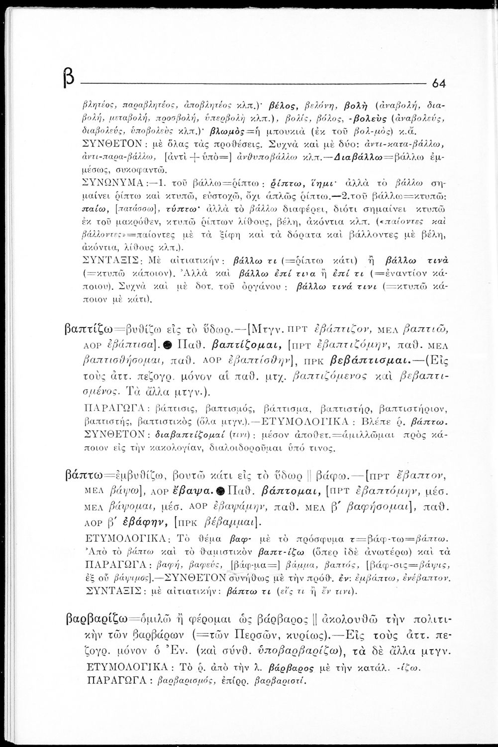 Σχολικό εγχειρίδιο Αρχαίων Ελληνικών Γυμνασίου που περιέχει τους κανόνες γραμματικής και είναι χωρισμένο σε φθογγολογικό, τυπολογικό και ετυμολογικό μέρος. Περιέχει και κατάλογο ανωμάλων ρημάτων.