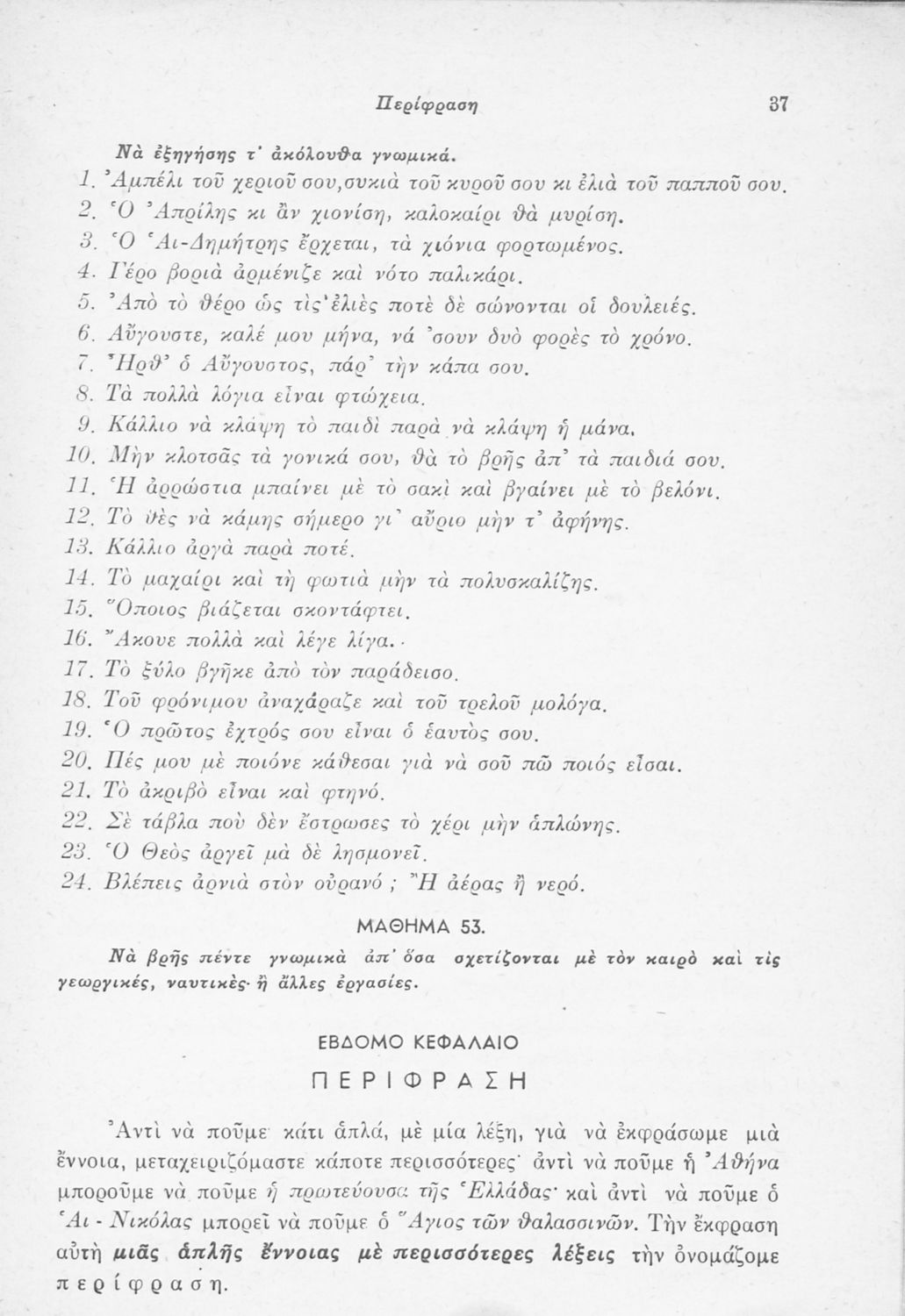 Το σύγγραμμα ήταν εκπαιδευτικό βοήθημα για το μάθημα των νέων ελληνικών. Αρχικά, έχει οδηγίες, οι οποίες απευθύνονται στους δασκάλους και τους μαθητές αντίστοιχα για την εξυπηρέτηση της διδασκαλίας. Στη ...