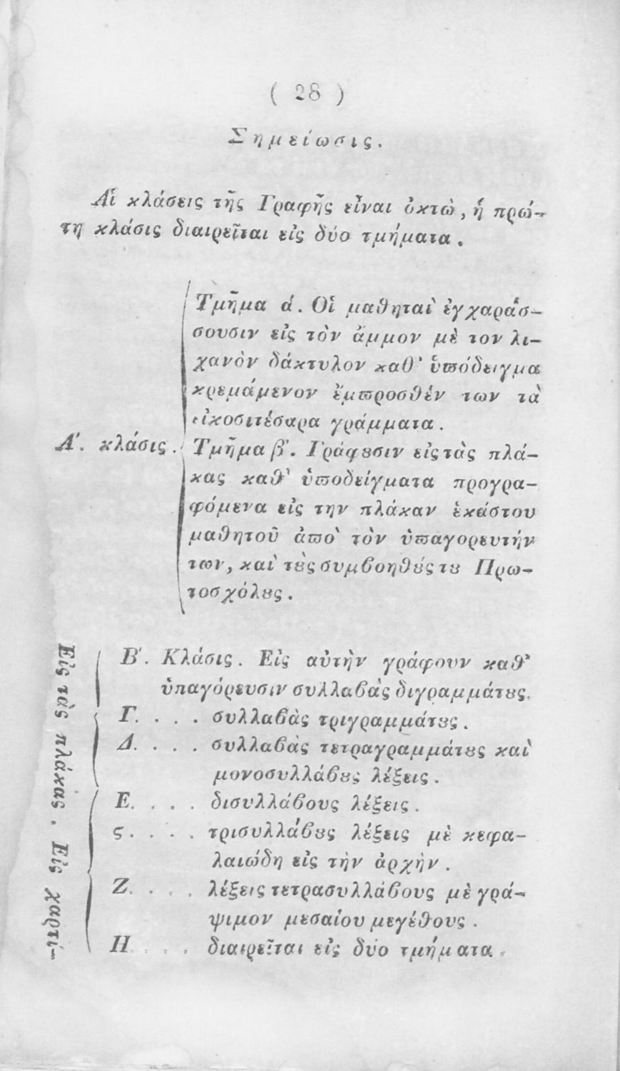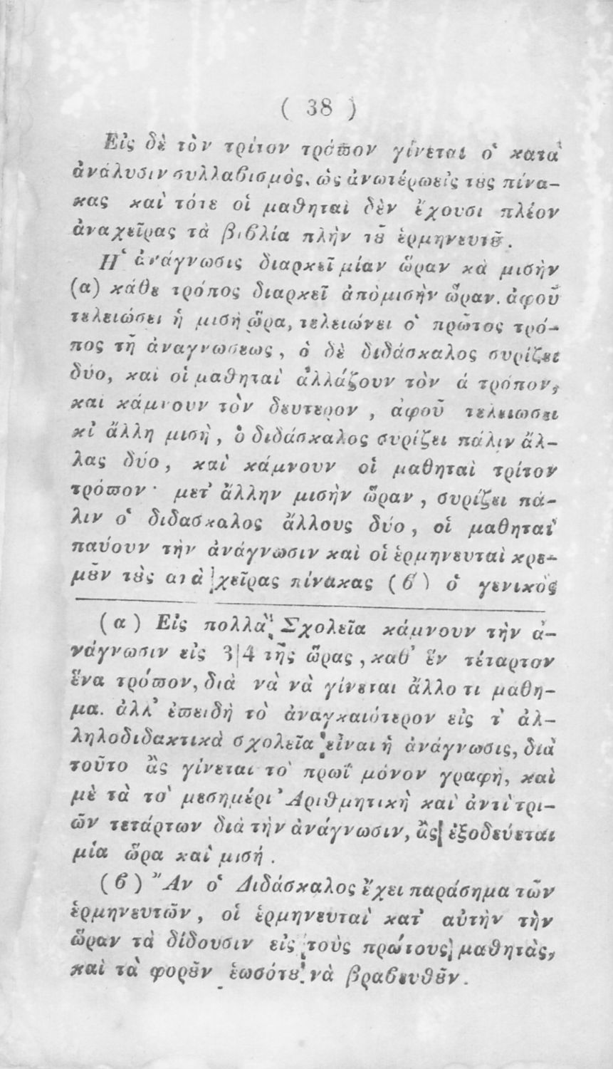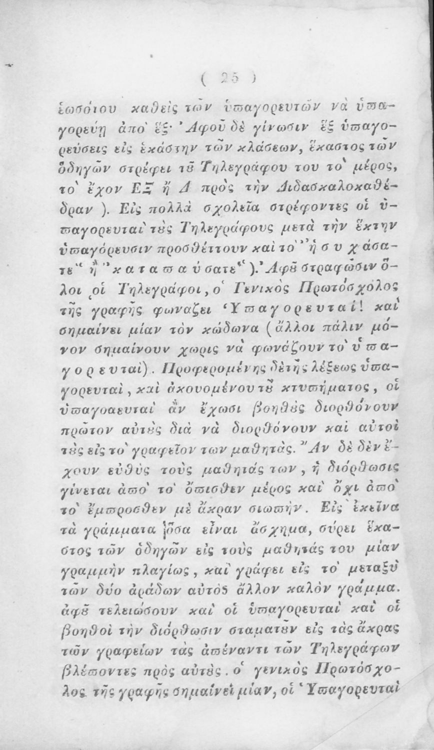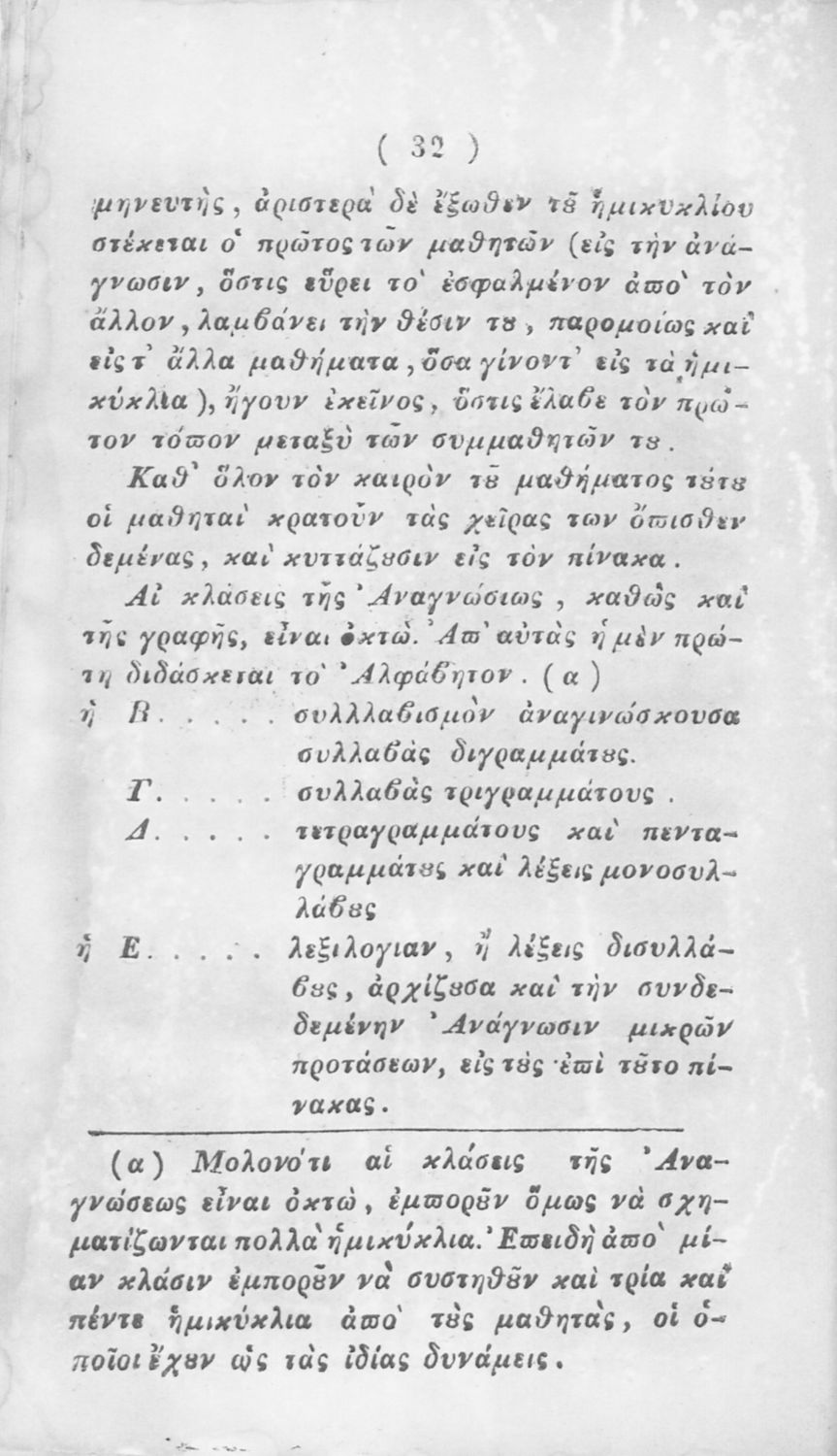 Παρουσίαση περιεχομένου: Παιδαγωγικό βοήθημα που περιλαμβάνει τις γενικές αρχές της αλληλοδιδακτικής μεθόδου διδασκαλίας που εφαρμοζόταν κατά την διάρκεια του 19ου αιώνα και εμφανίστηκε στην Ελλάδα κατά την δεκαετία του 1830. Ο δάσκαλος όριζε κάποιους μαθητές, συνήθως τους μεγαλύτερους και τους καλύτερους σε επιδόσεις (τους λεγόμενους πρωτόσχολους), για να τον βοηθήσουν με την διδασκαλία του μαθήματος.