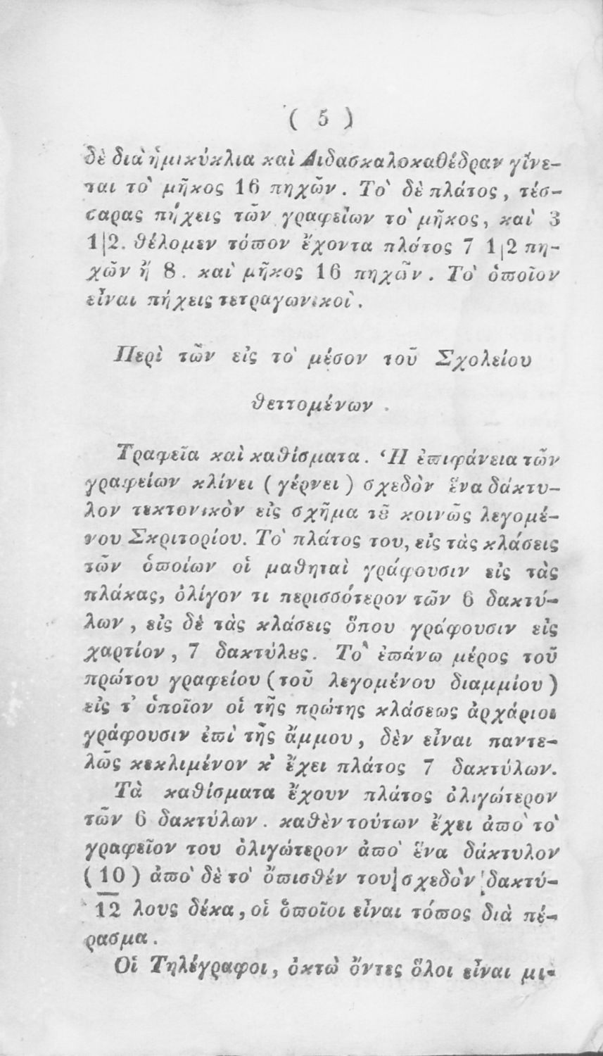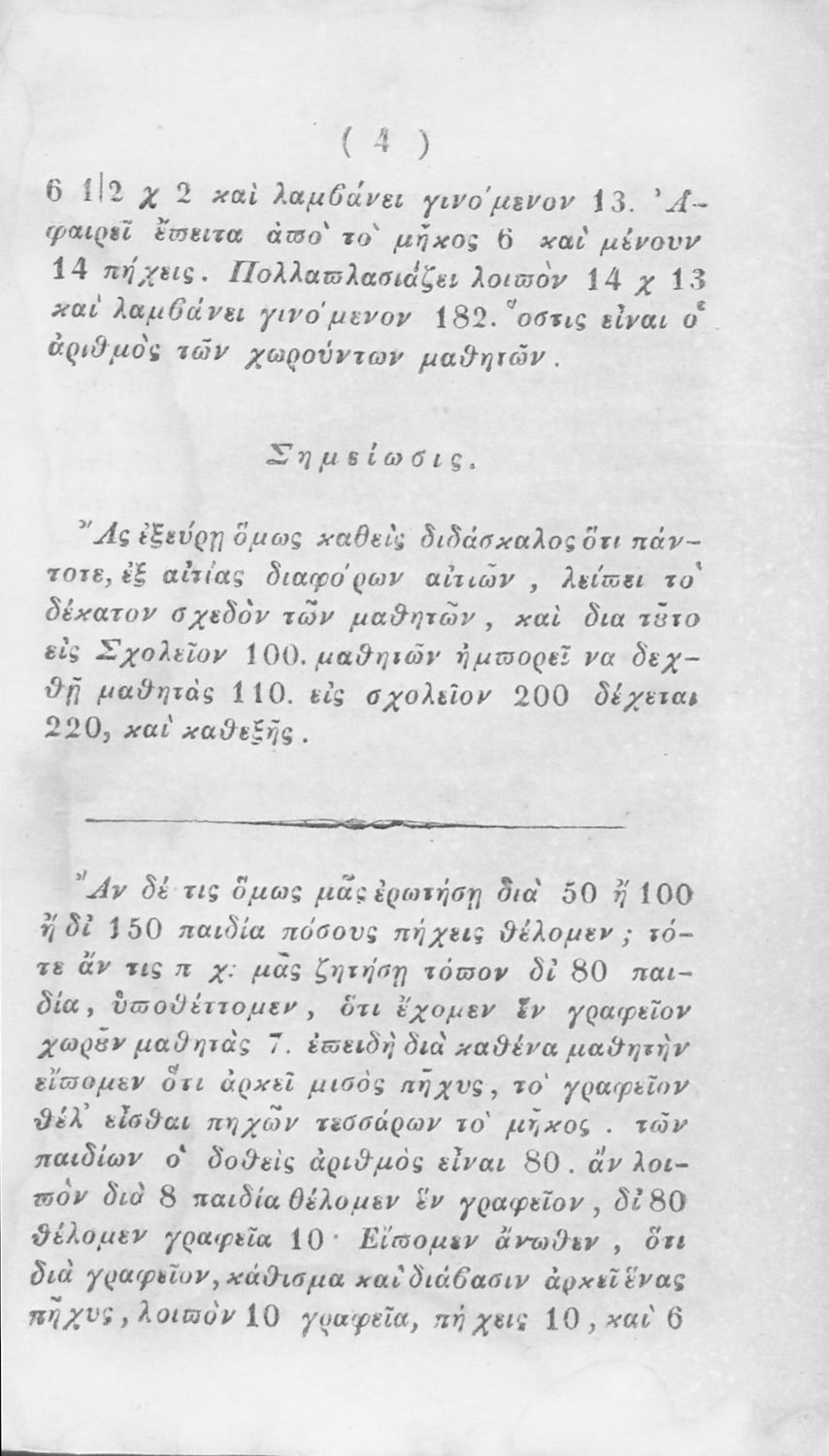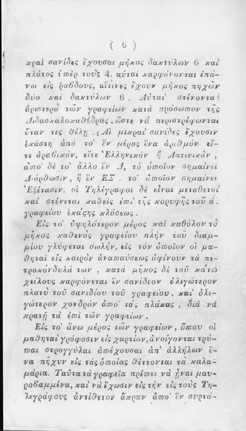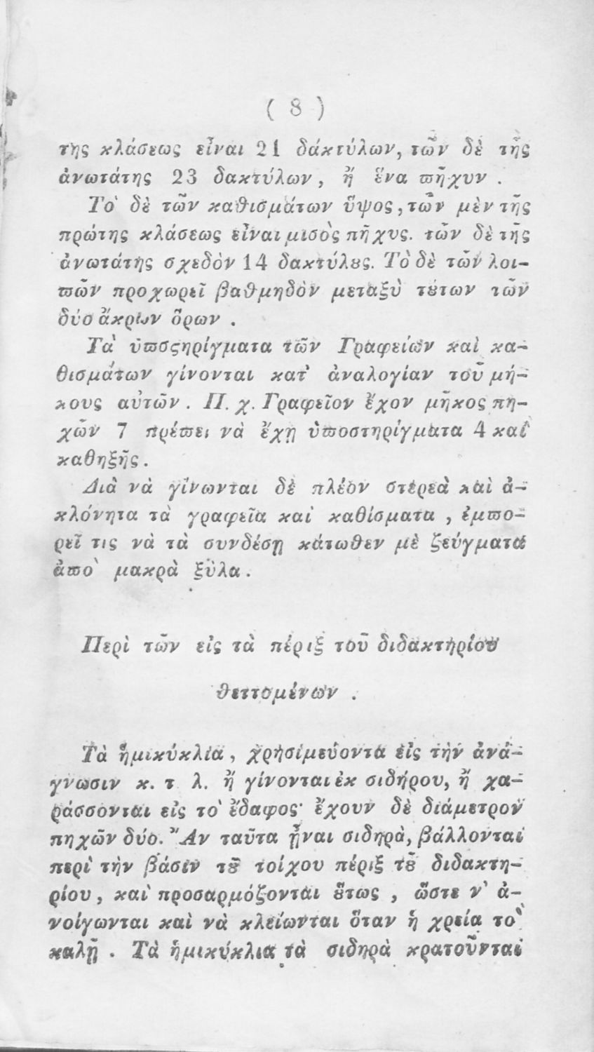 Γλώσσα: Καθαρεύουσα Παρουσίαση περιεχομένου: Παιδαγωγικό βοήθημα που περιλαμβάνει τις γενικές αρχές της αλληλοδιδακτικής μεθόδου διδασκαλίας που εφαρμοζόταν κατά την διάρκεια του 19ου αιώνα και εμφανίστηκε στην Ελλάδα κατά την δεκαετία του 1830. Ο δάσκαλος όριζε κάποιους μαθητές, συνήθως τους μεγαλύτερους και τους καλύτερους σε επιδόσεις (τους λεγόμενους πρωτόσχολους), για να τον βοηθήσουν με την διδασκαλία του μαθήματος. |