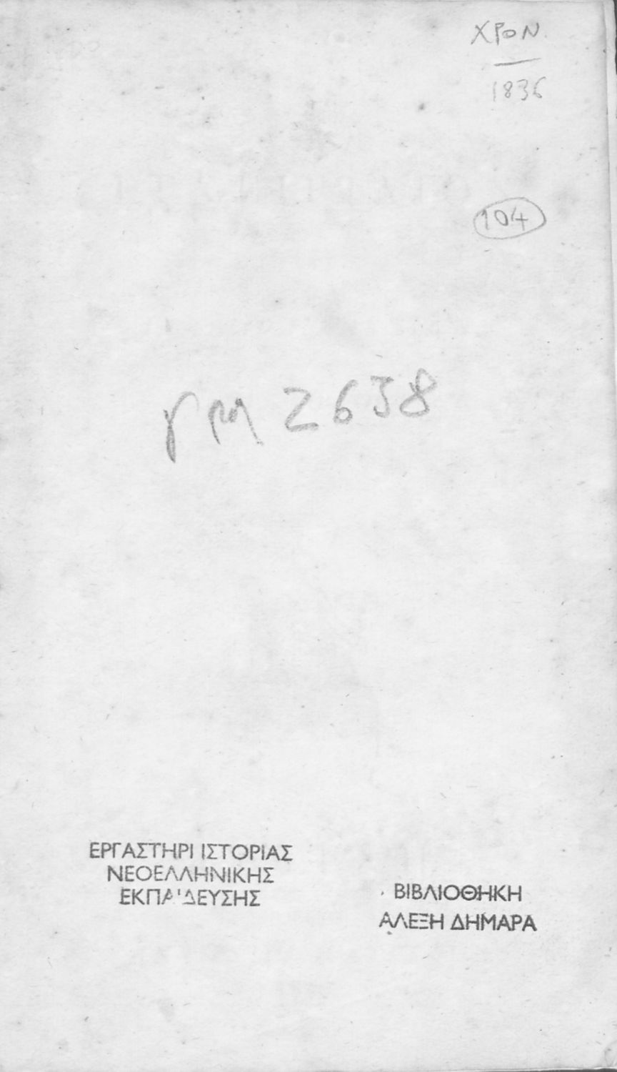 Εντοπισμός πρωτοτύπου: Εργαστήρι Ιστορίας Ν.Ε. Εκπαίδευσης, Πανεπιστήμιο Ιωαννίνων Κωδικός βιβλιοθήκης: 104 |
