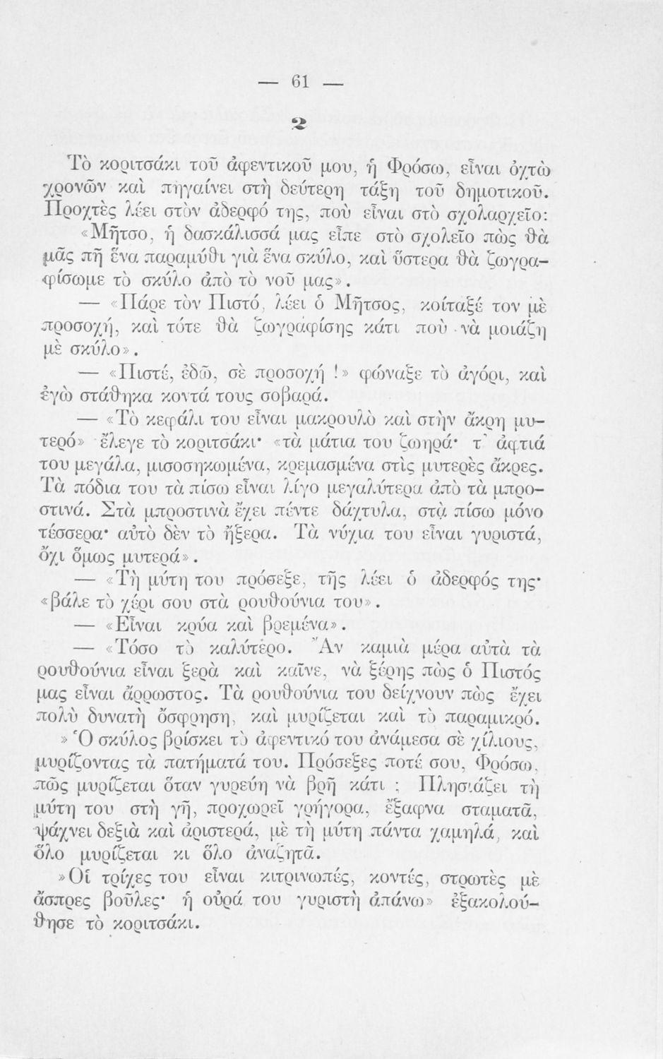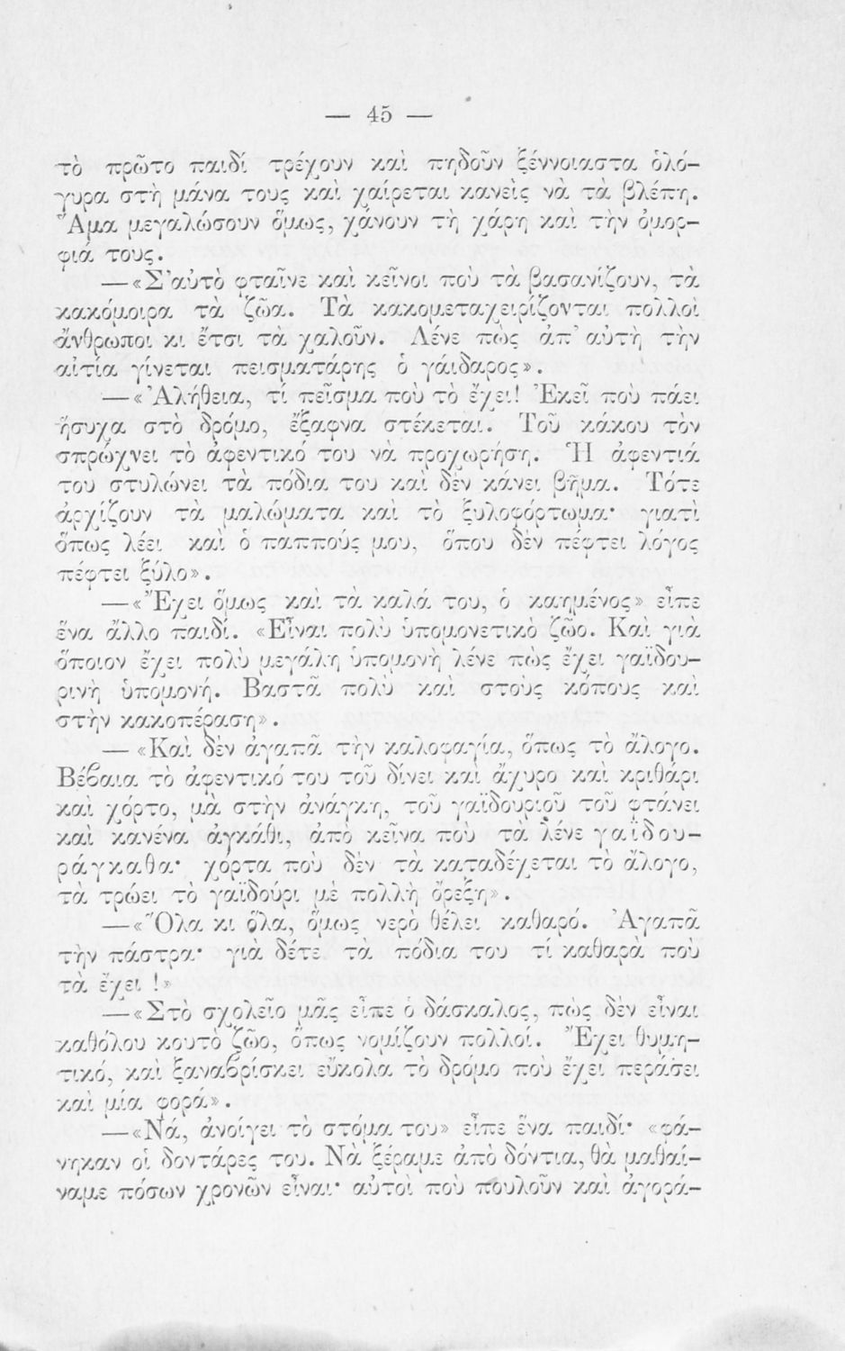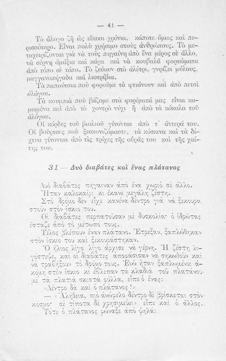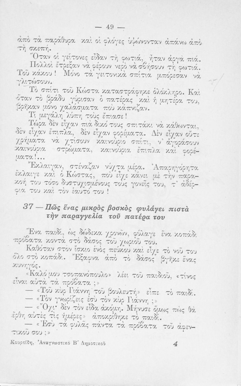 Αναγνωστικό Β' Δημοτικού που περιλαμβάνει μικρά διηγήματα και ποιήματα με περιεχόμενο από την οικογενειακή και κοινωνική ζωή, την ελληνική φύση, την ελληνική ιστορία και μυθολογία και την υγιεινή.