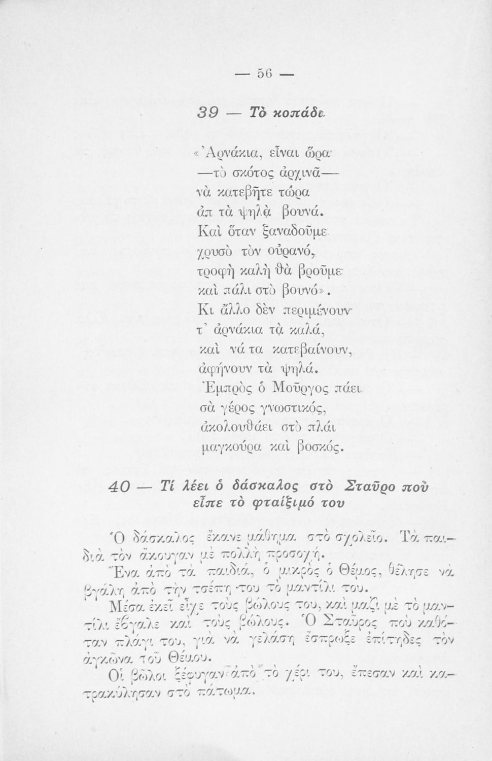 Αναγνωστικό Β' Δημοτικού που περιλαμβάνει ποιήματα και πεζά εμπνευσμένα από την καθημερινή ζωή, την ελληνική μυθολογία, την ελληνική φύση και τη θρησκευτική παράδοση.