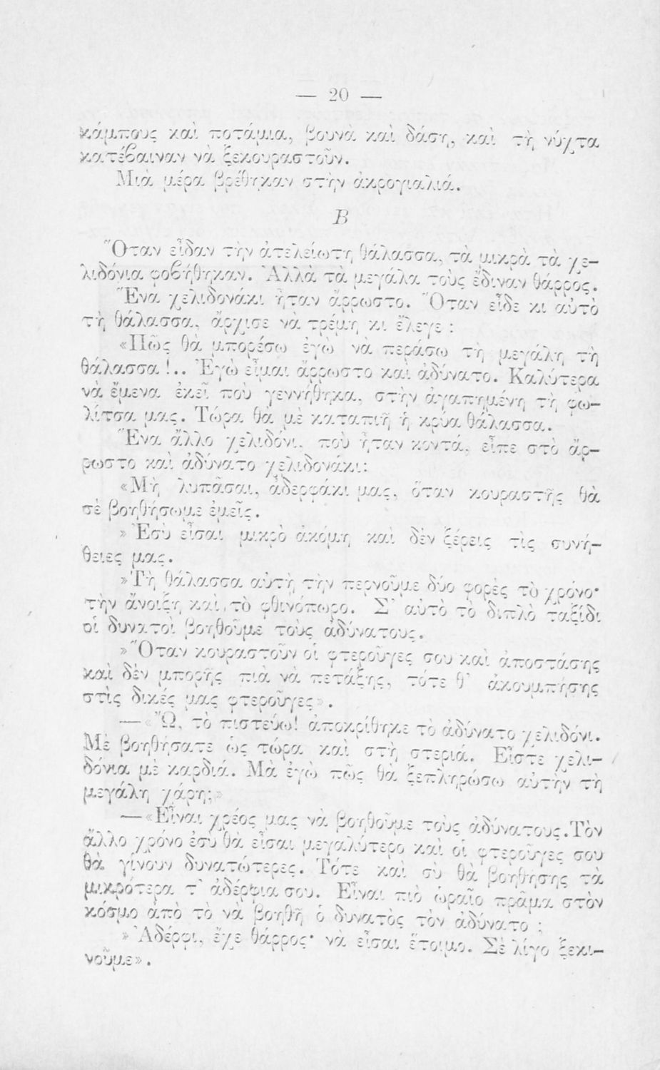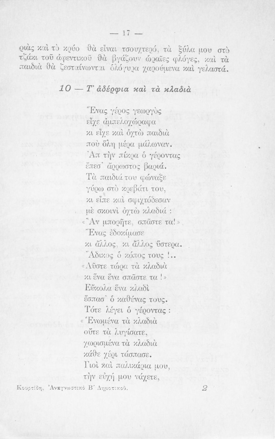 Βαθμίδα εκπαίδευσης: Πρωτοβάθμια Τάξη: Β' Δημοτικού Μάθημα: Νέα Ελληνικά Γλώσσα: Δημοτική Παρουσίαση περιεχομένου: Αναγνωστικό Β΄ Δημοτικού που περιλαμβάνει ιστορίες από την καθημερινή ζωή των παιδιών και των οικογενειών τους, την παιδαγωγική αξία των προσευχών, τις οικογενειακές και εθνικές γιορτές και τις 4 εποχές του έτους. |