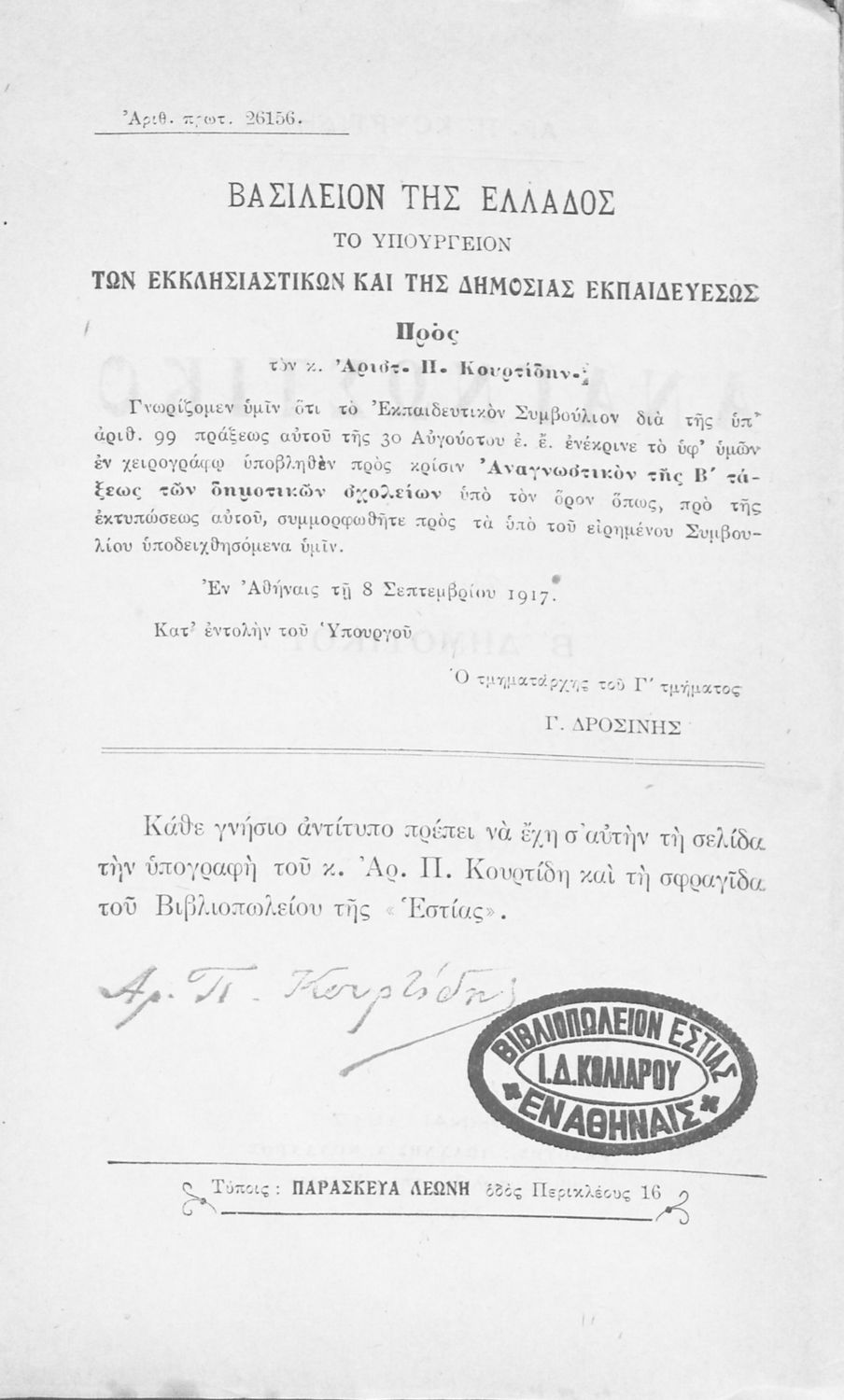 Εντοπισμός πρωτοτύπου: Εργαστήρι Ιστορίας Ν.Ε. Εκπαίδευσης, Πανεπιστήμιο Ιωαννίνων Κωδικός βιβλιοθήκης: 105 |