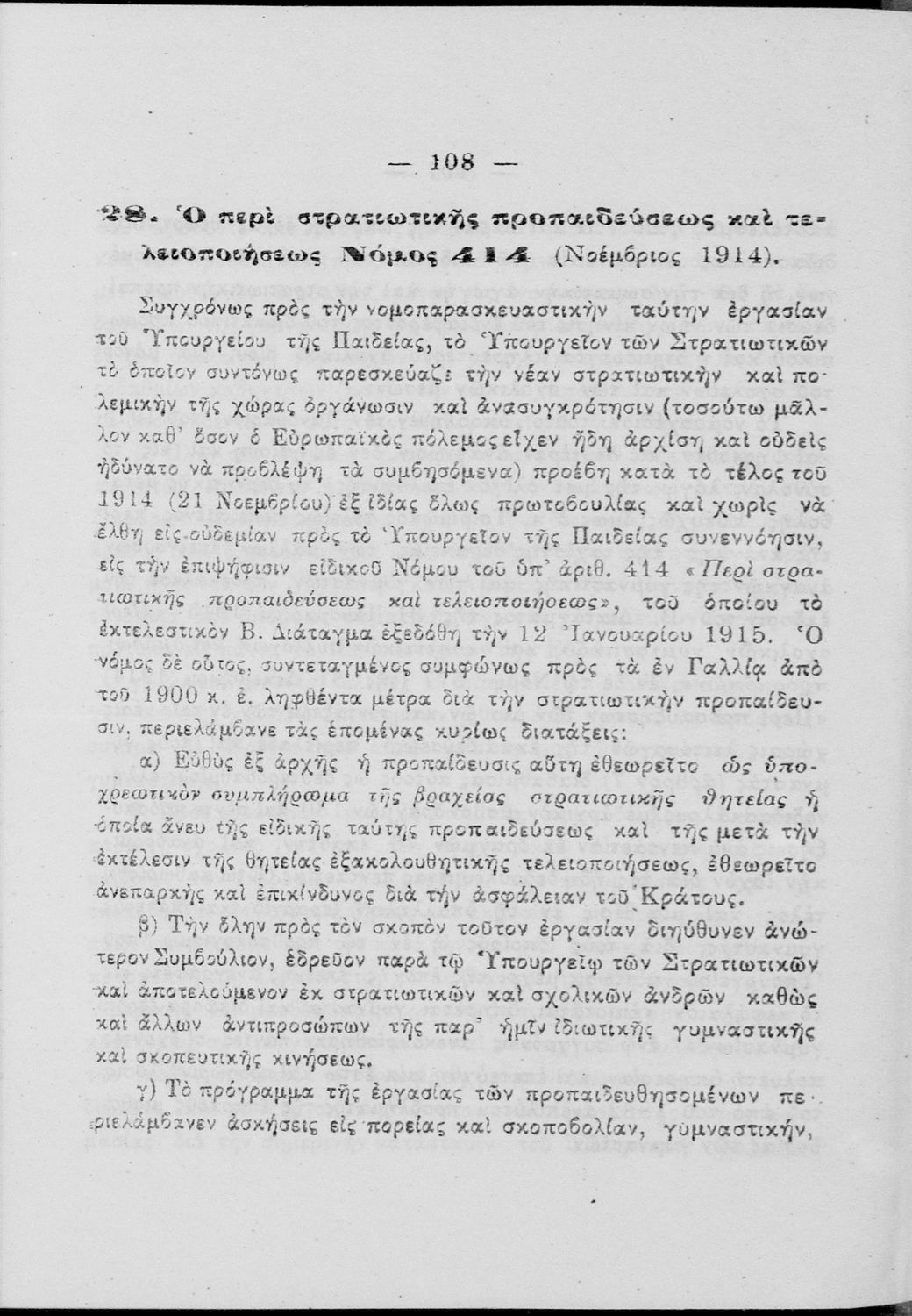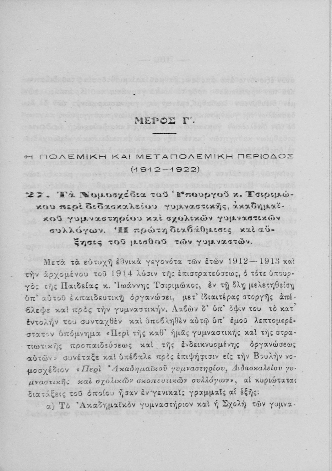 Τίτλος: Η σωματική αγωγή και η στρατιωτική προπαίδευσις των μαθητών της νεότητος και η ενδεικνυόμενη οργάνωσις αυτών
