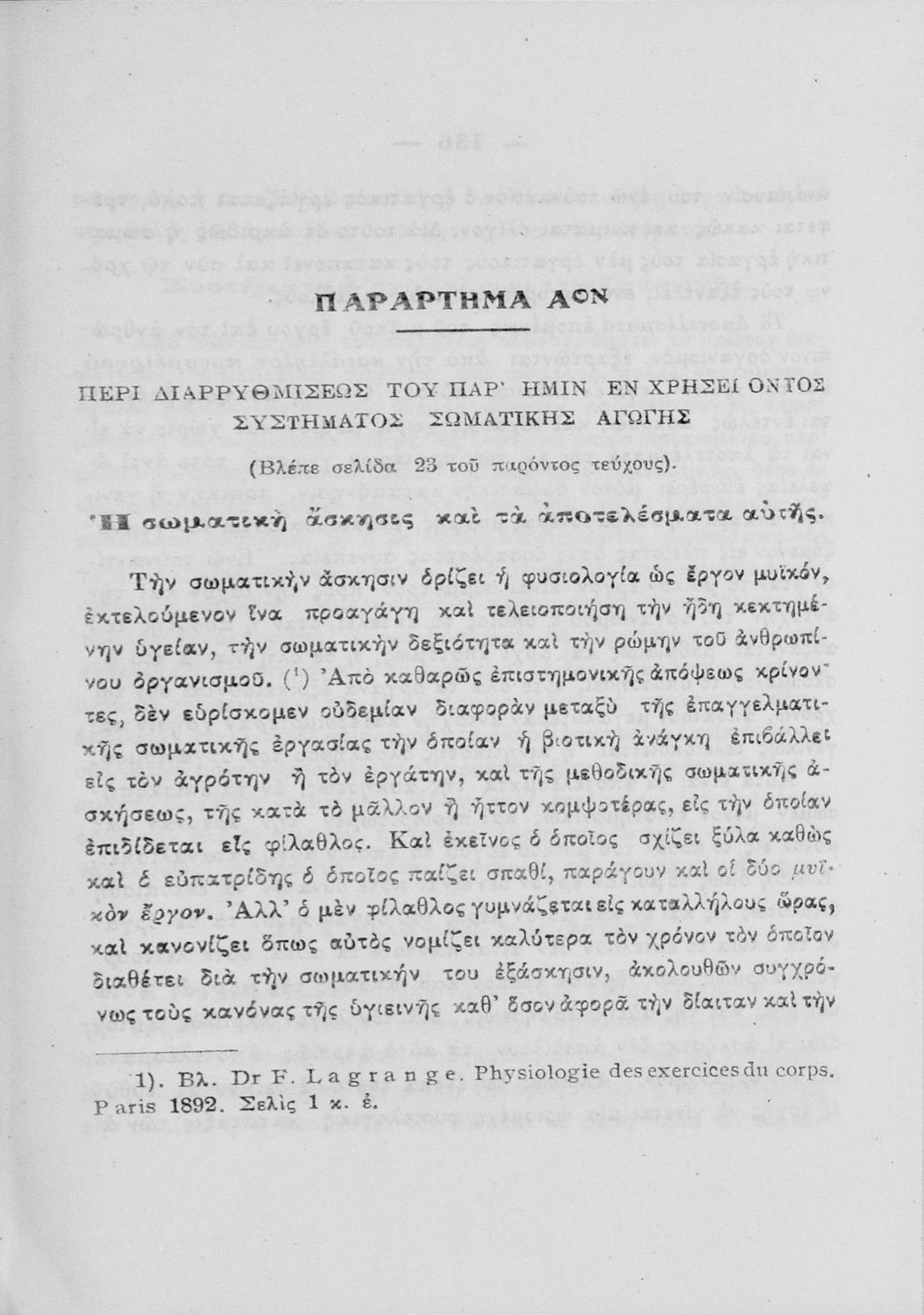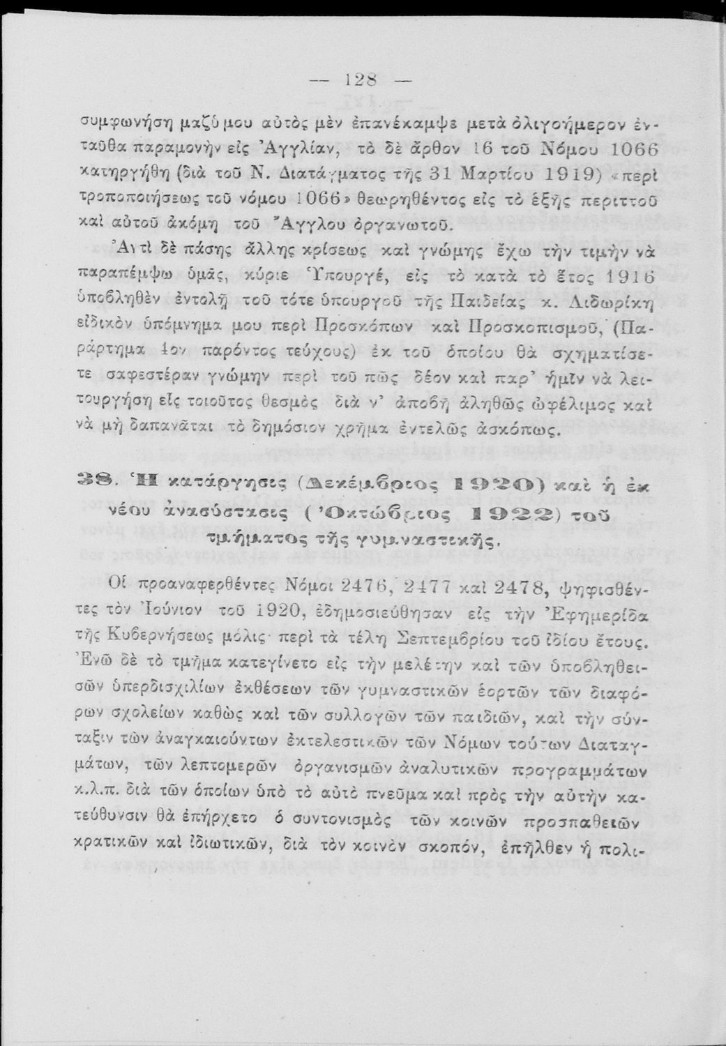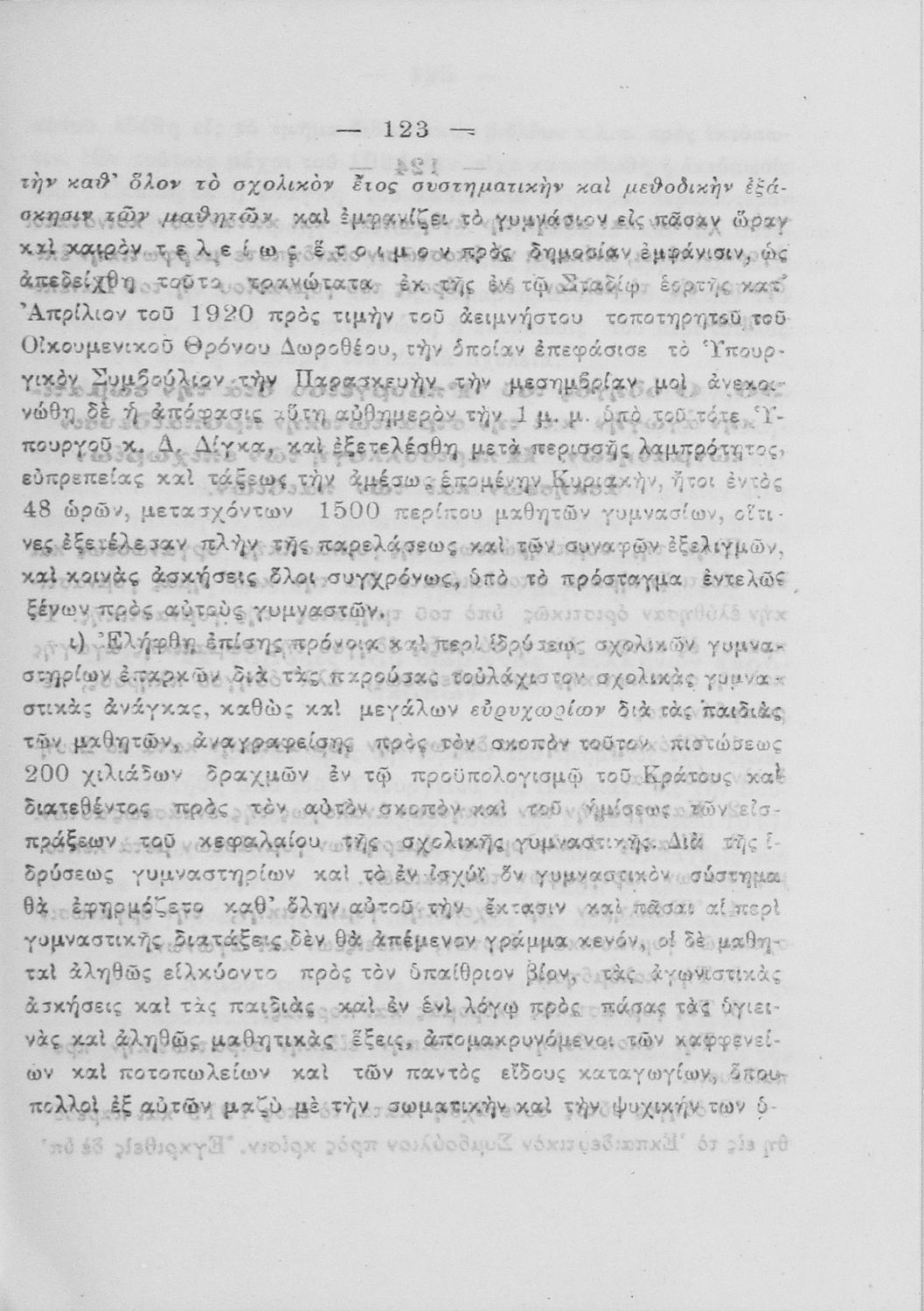 520 ## _aΥπόμνημα που υποβλήθηκε από τον τμηματάρχη Γυμναστικής στο Υπουργείο Εκκλησιαστικών και Δημόσιας Εκπαιδεύσεως και περιλαμβάνει ζητήματα σωματικής αγωγής των νέων, ιστορική αναδρομή και αναφορά στον προσκοπισμό.