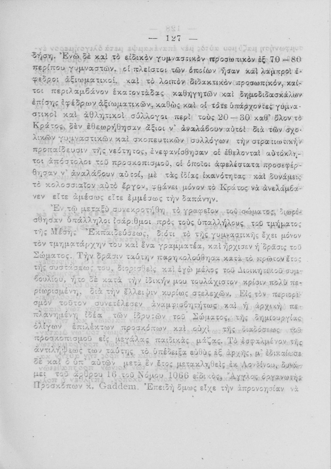 Υπόμνημα που υποβλήθηκε από τον τμηματάρχη Γυμναστικής στο Υπουργείο Εκκλησιαστικών και Δημόσιας Εκπαιδεύσεως και περιλαμβάνει ζητήματα σωματικής αγωγής των νέων, ιστορική αναδρομή και αναφορά στον προσκοπισμό.