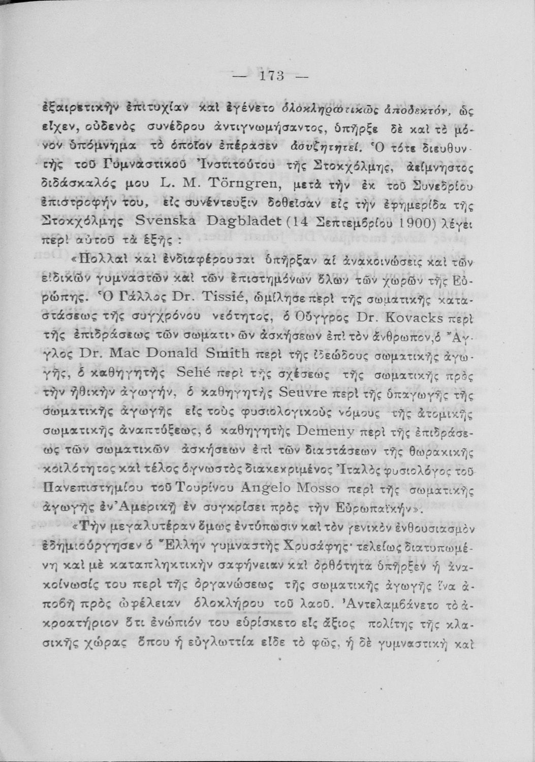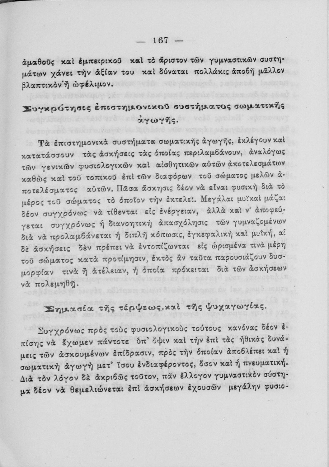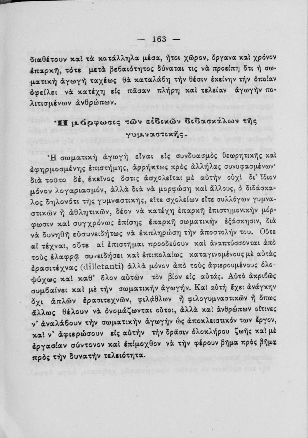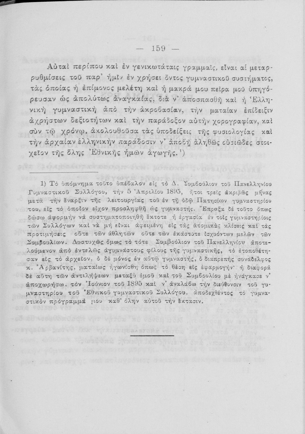 Υπόμνημα που υποβλήθηκε από τον τμηματάρχη Γυμναστικής στο Υπουργείο Εκκλησιαστικών και Δημόσιας Εκπαιδεύσεως και περιλαμβάνει ζητήματα σωματικής αγωγής των νέων, ιστορική αναδρομή και αναφορά στον προσκοπισμό.