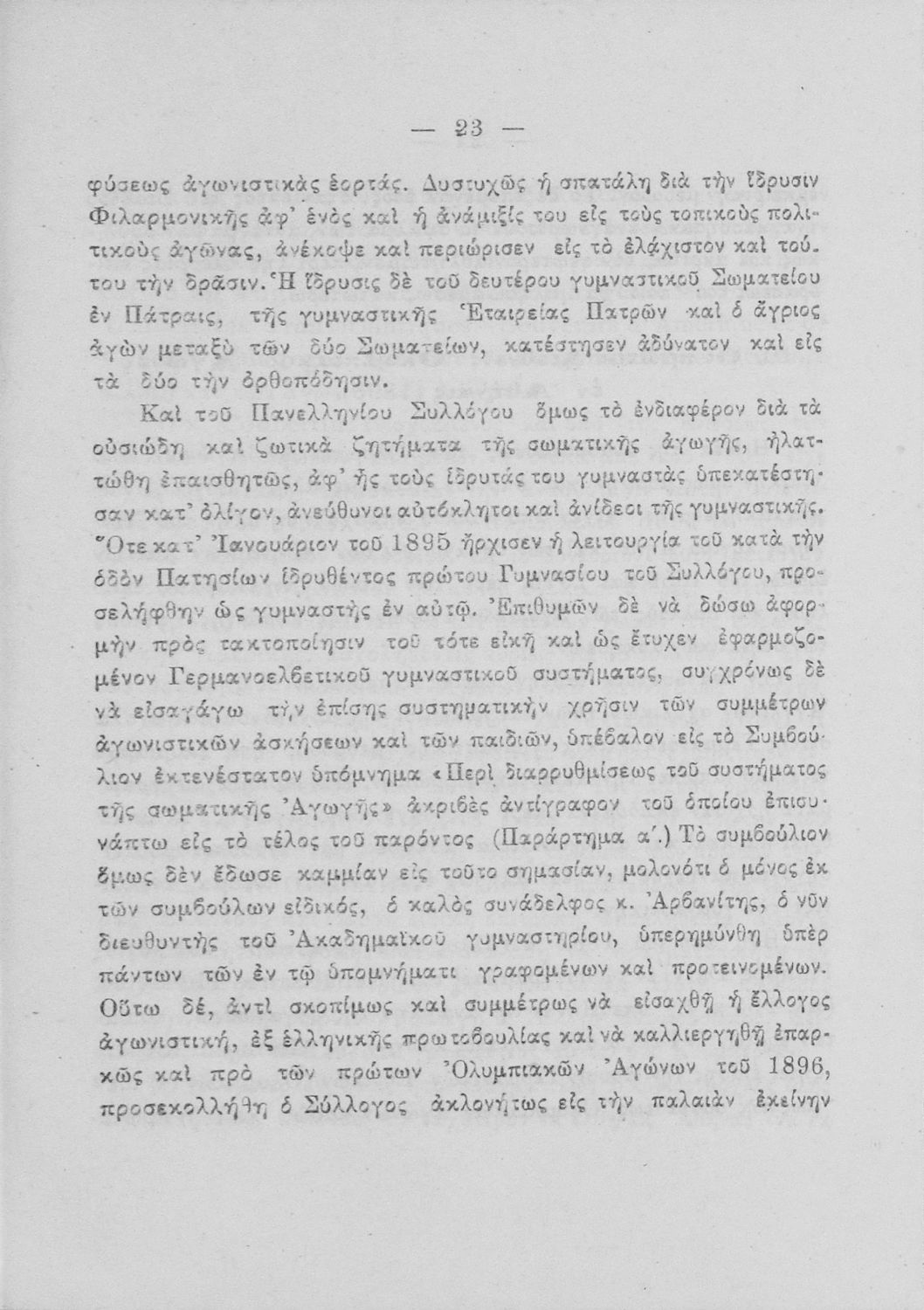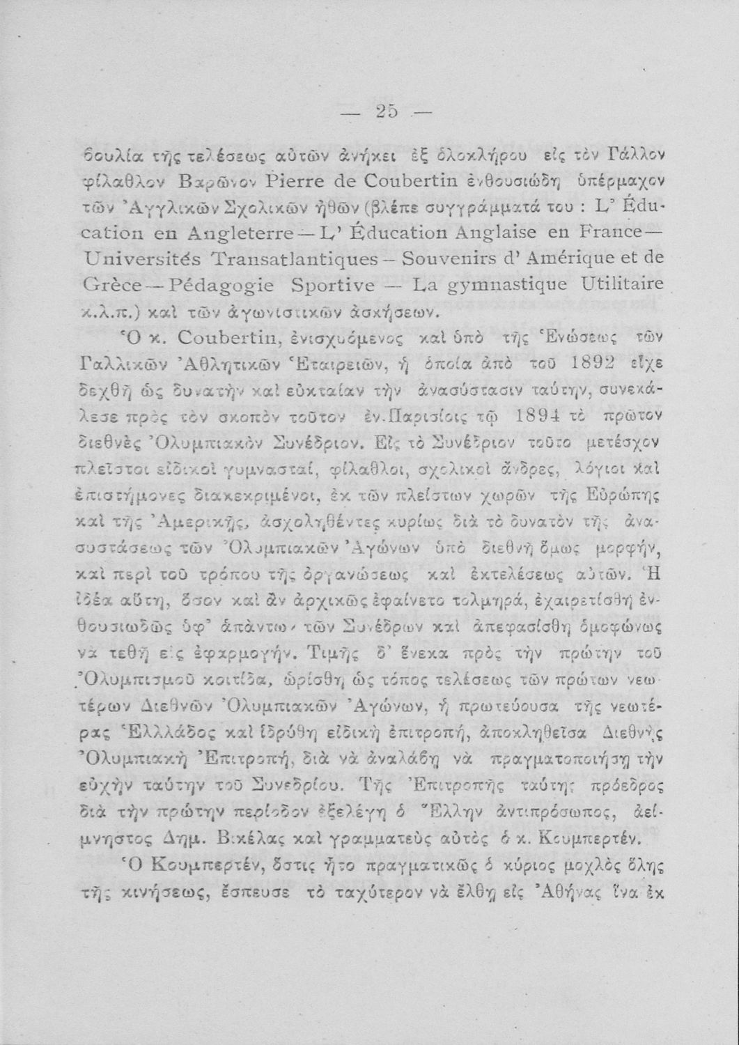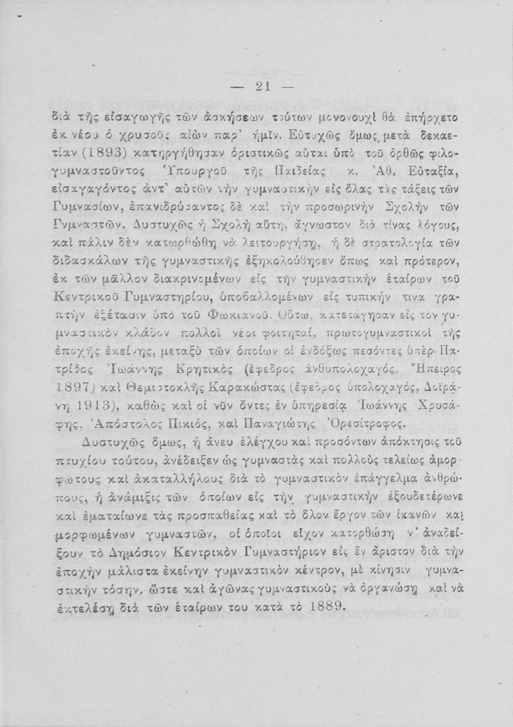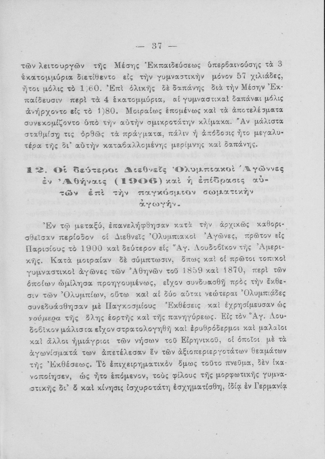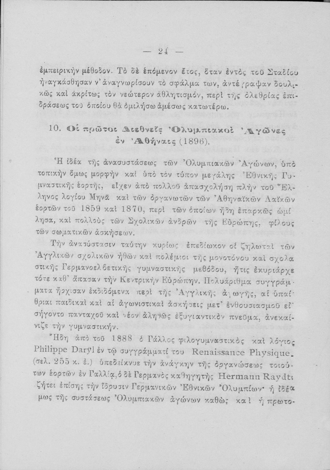 Υπόμνημα που υποβλήθηκε από τον τμηματάρχη Γυμναστικής στο Υπουργείο Εκκλησιαστικών και Δημόσιας Εκπαιδεύσεως και περιλαμβάνει ζητήματα σωματικής αγωγής των νέων, ιστορική αναδρομή και αναφορά στον προσκοπισμό.