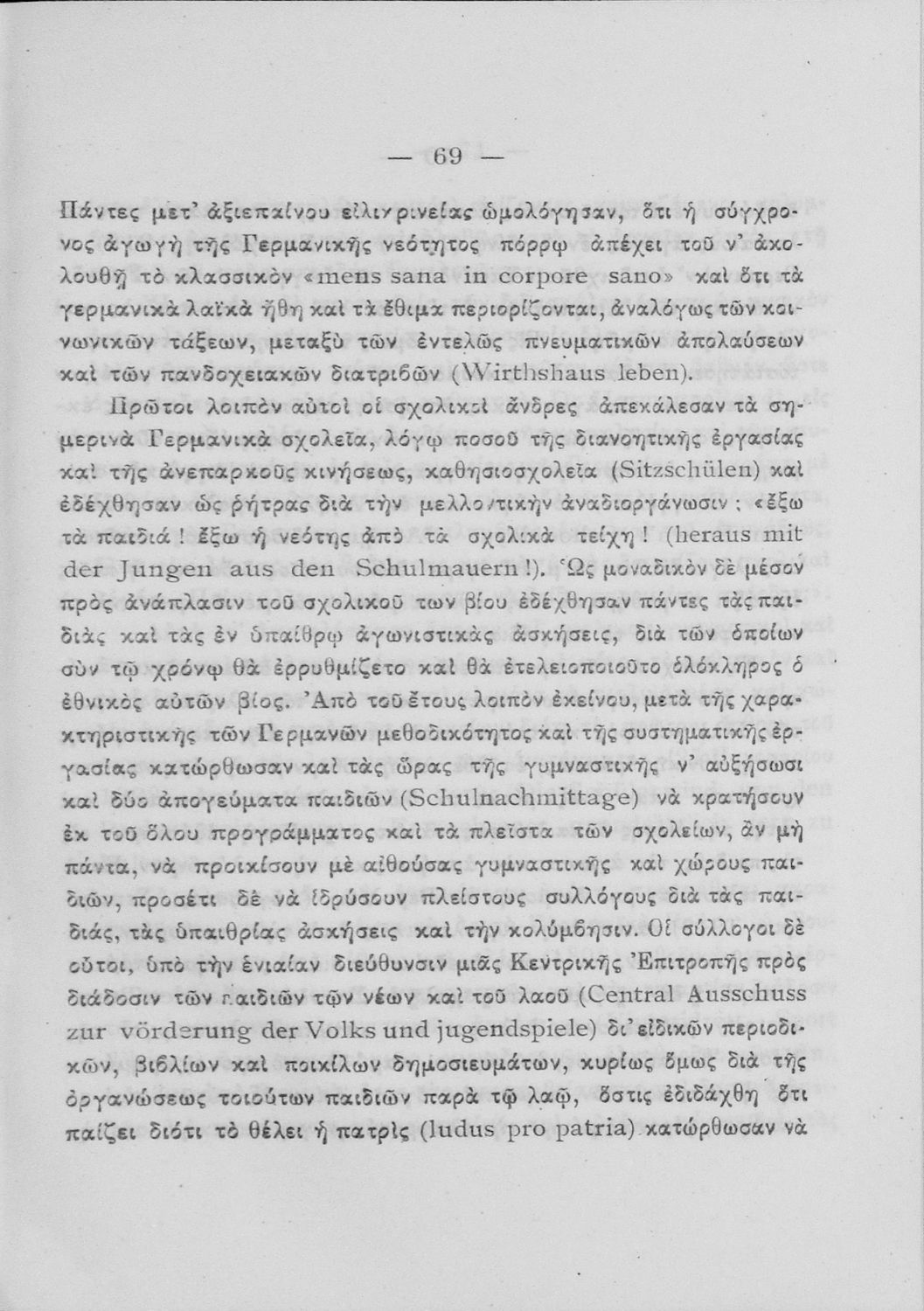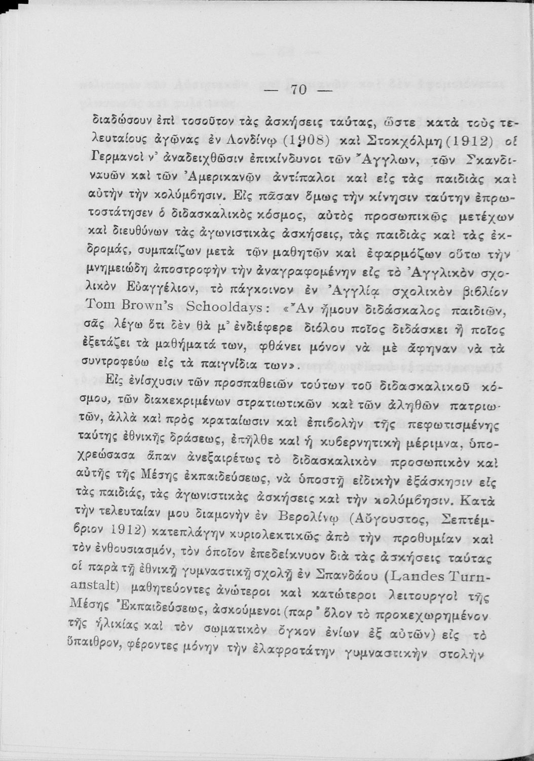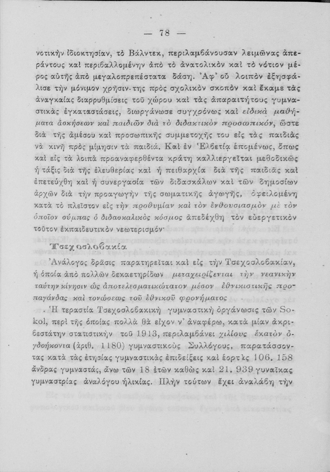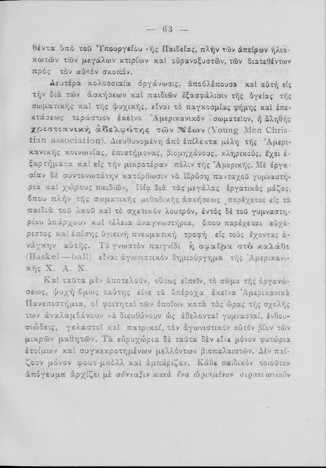 Υπόμνημα που υποβλήθηκε από τον τμηματάρχη Γυμναστικής στο Υπουργείο Εκκλησιαστικών και Δημόσιας Εκπαιδεύσεως και περιλαμβάνει ζητήματα σωματικής αγωγής των νέων, ιστορική αναδρομή και αναφορά στον προσκοπισμό.