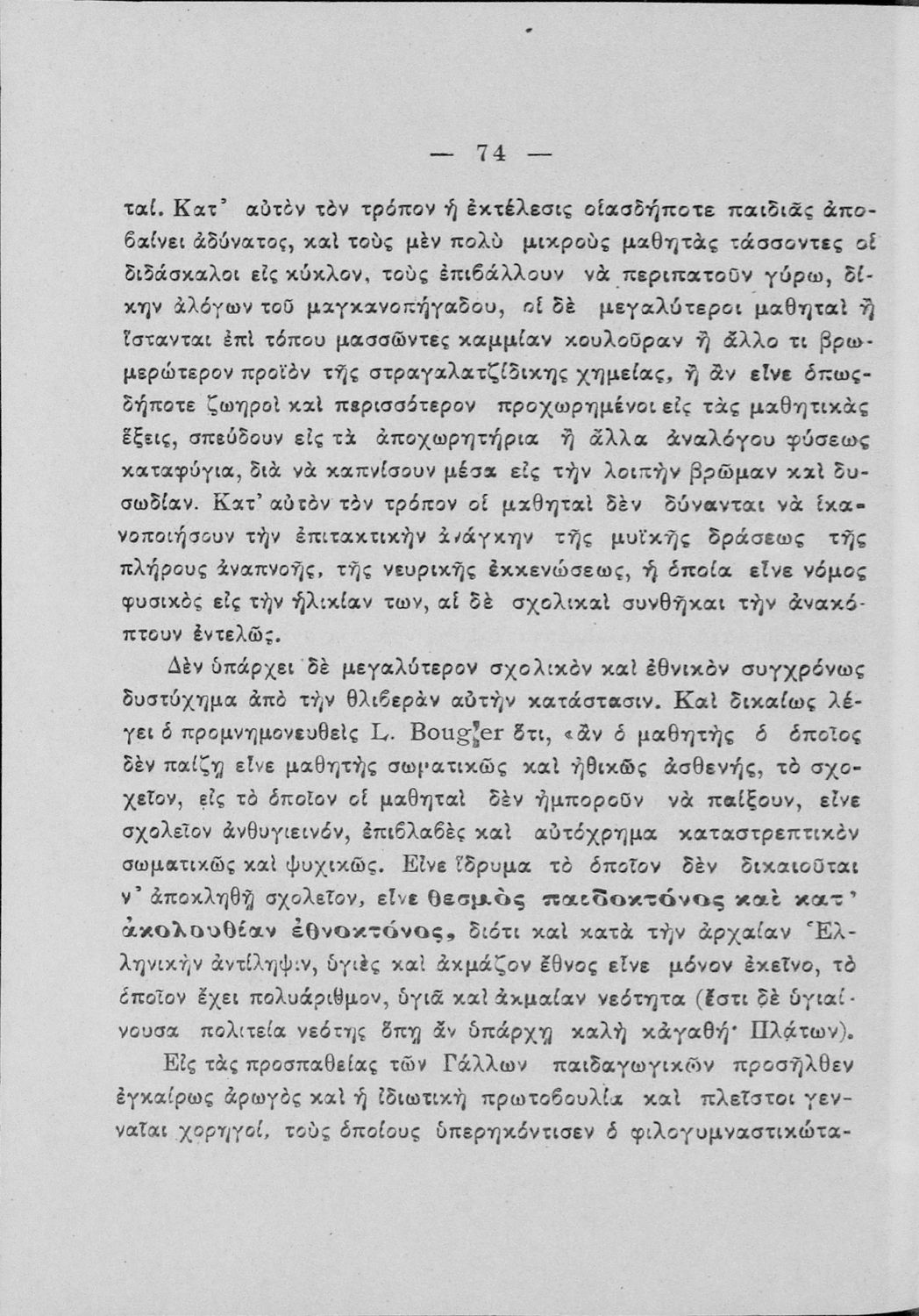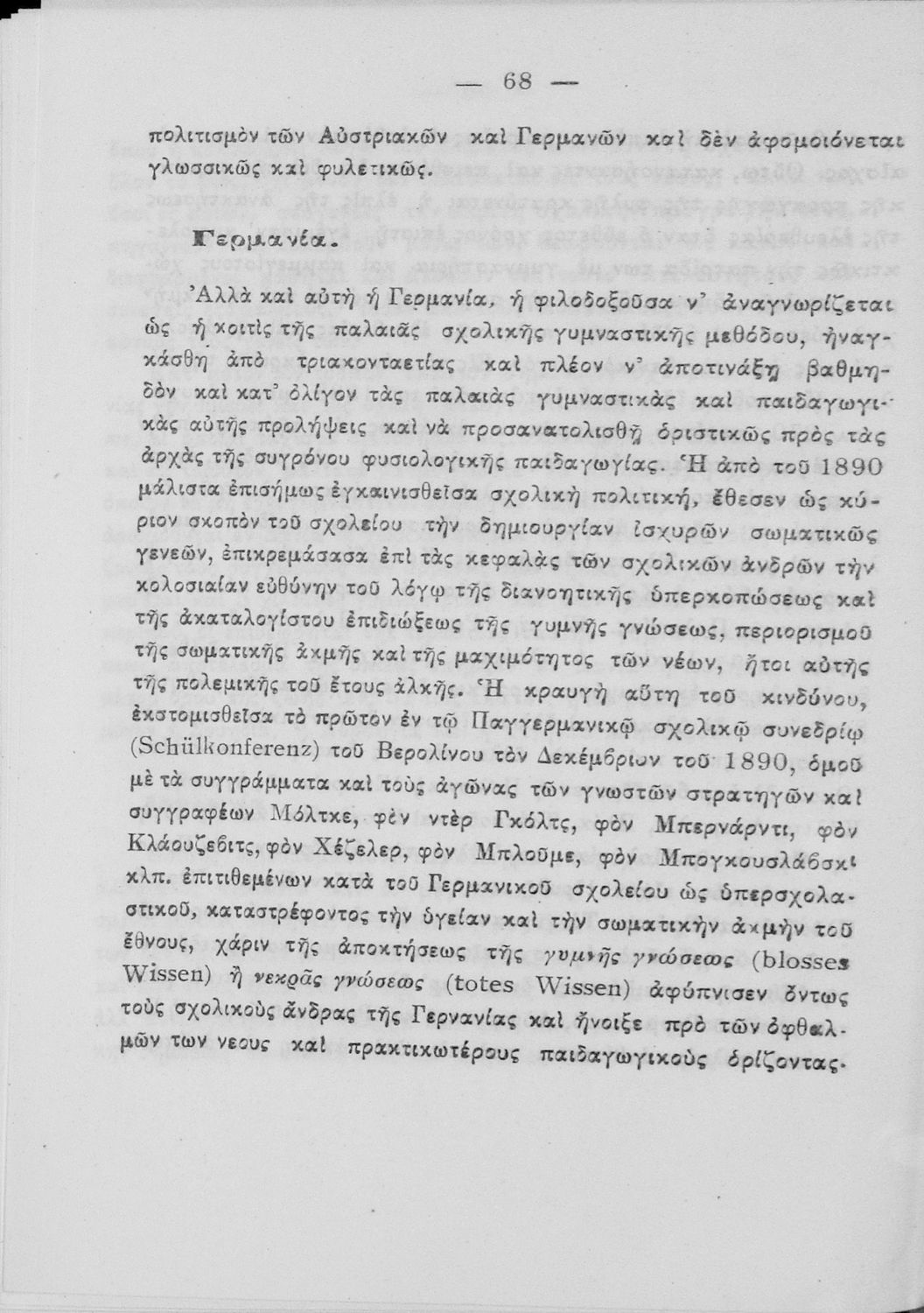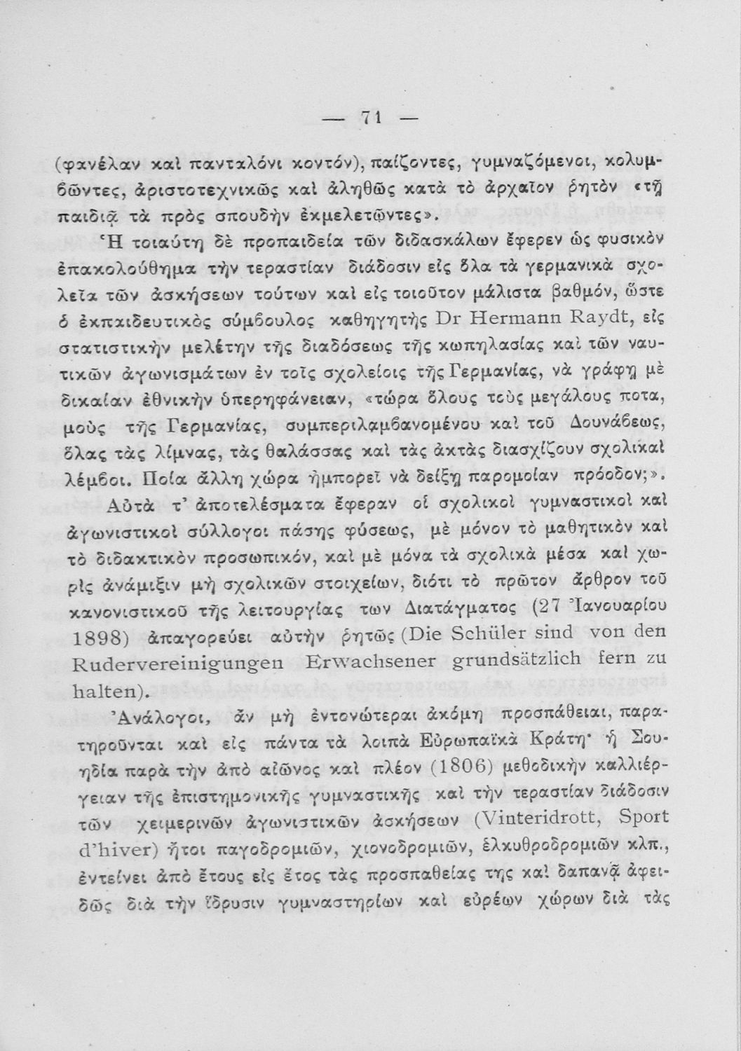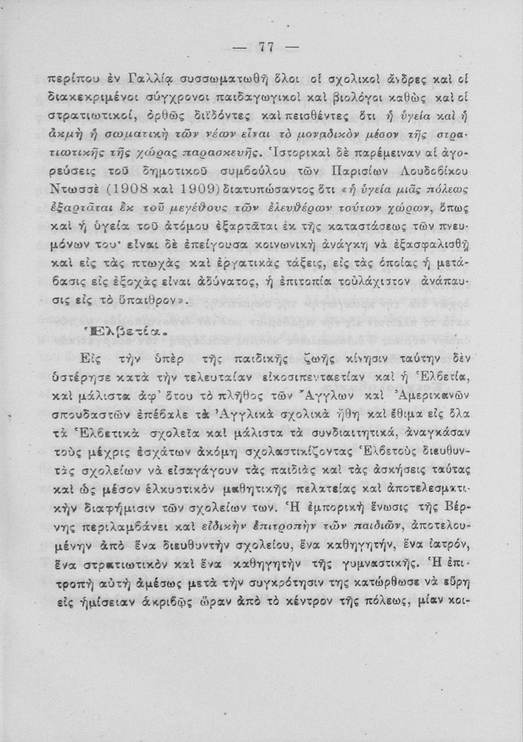 Υπόμνημα που υποβλήθηκε από τον τμηματάρχη Γυμναστικής στο Υπουργείο Εκκλησιαστικών και Δημόσιας Εκπαιδεύσεως και περιλαμβάνει ζητήματα σωματικής αγωγής των νέων, ιστορική αναδρομή και αναφορά στον προσκοπισμό.