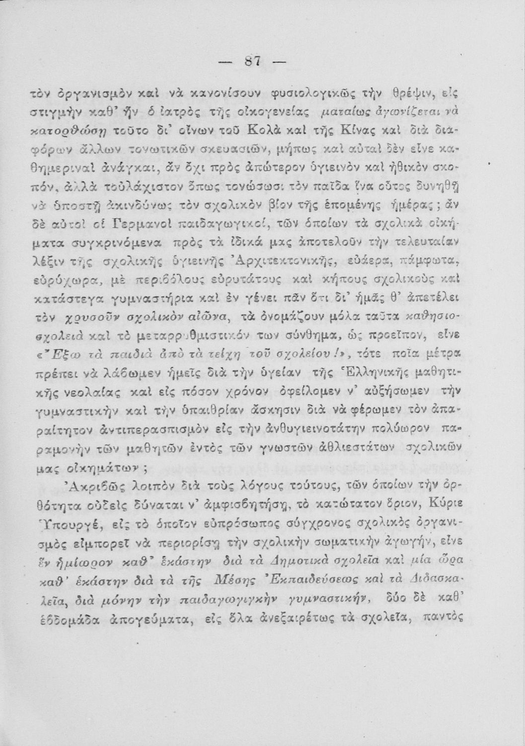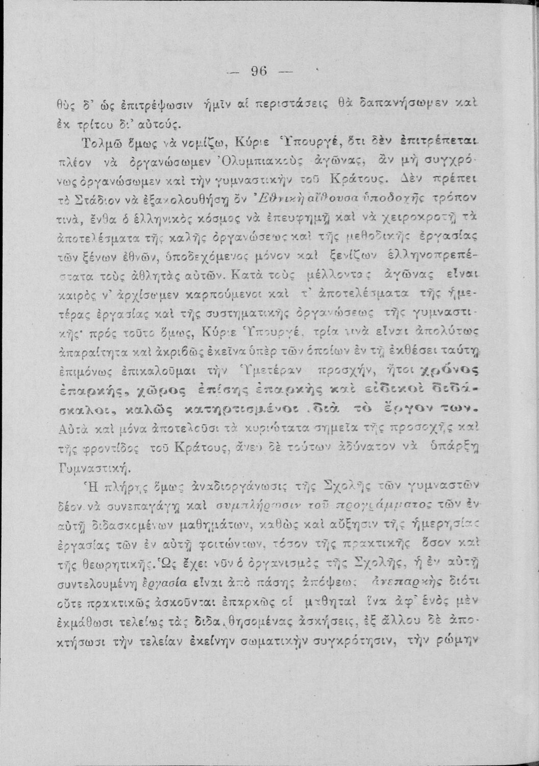 520 ## _aΥπόμνημα που υποβλήθηκε από τον τμηματάρχη Γυμναστικής στο Υπουργείο Εκκλησιαστικών και Δημόσιας Εκπαιδεύσεως και περιλαμβάνει ζητήματα σωματικής αγωγής των νέων, ιστορική αναδρομή και αναφορά στον προσκοπισμό.