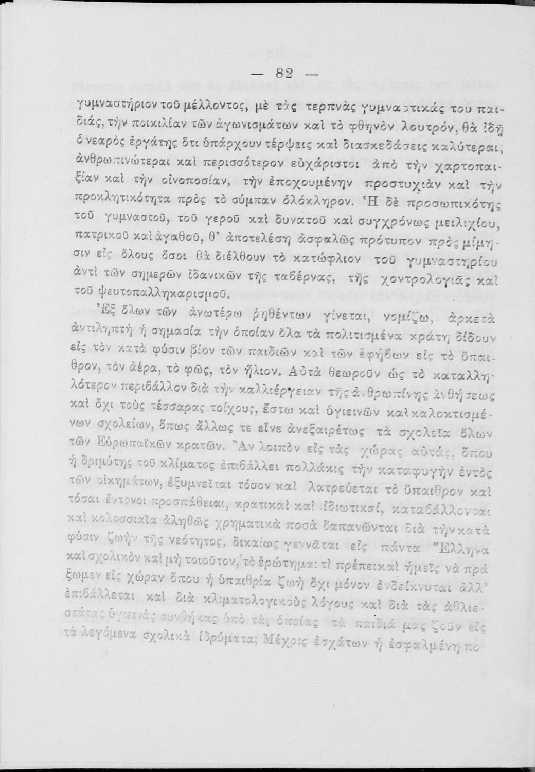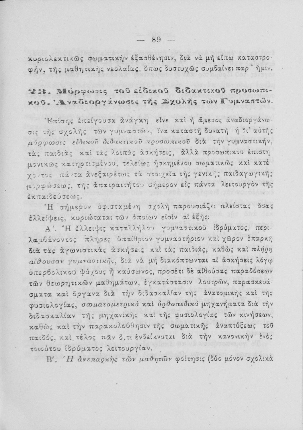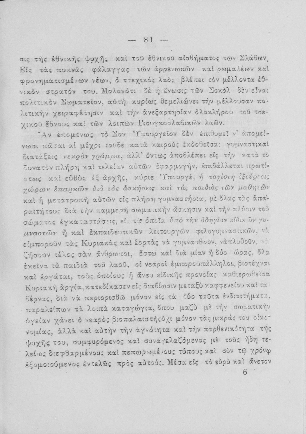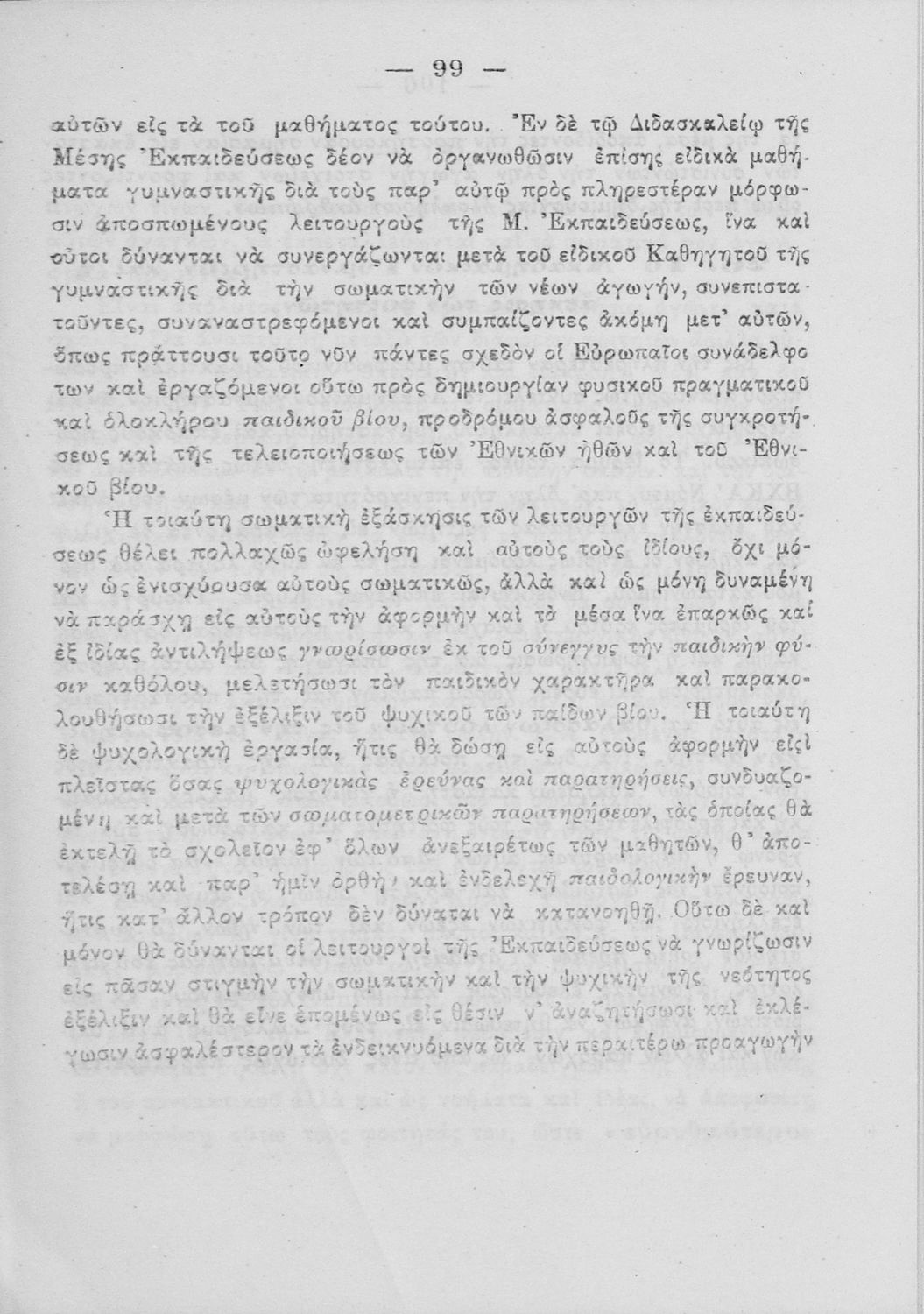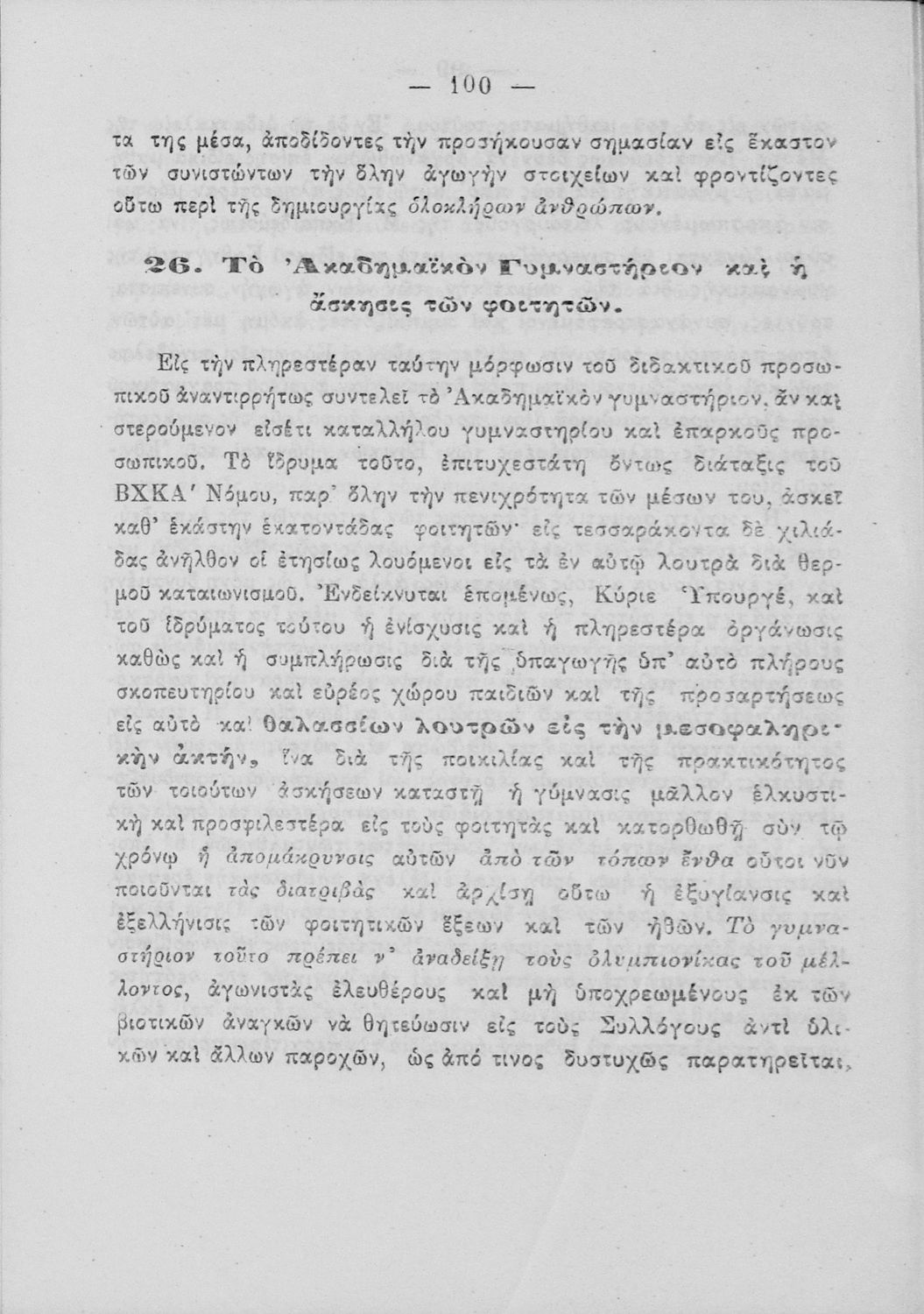 Υπόμνημα που υποβλήθηκε από τον τμηματάρχη Γυμναστικής στο Υπουργείο Εκκλησιαστικών και Δημόσιας Εκπαιδεύσεως και περιλαμβάνει ζητήματα σωματικής αγωγής των νέων, ιστορική αναδρομή και αναφορά στον προσκοπισμό.