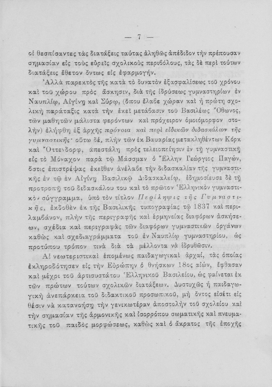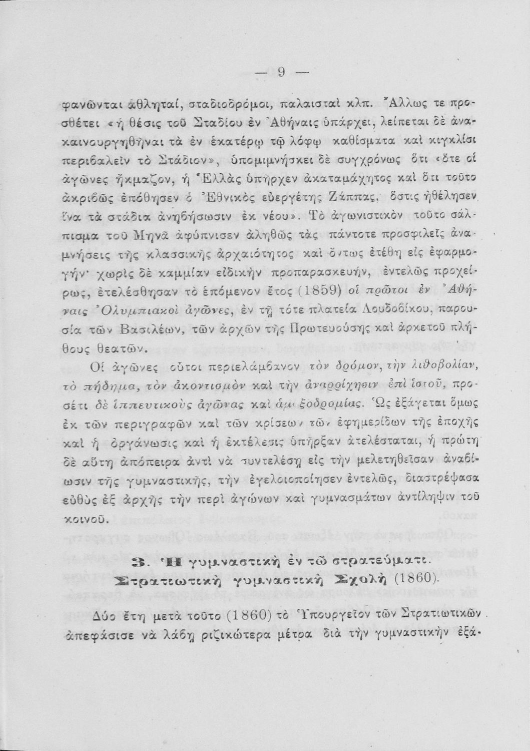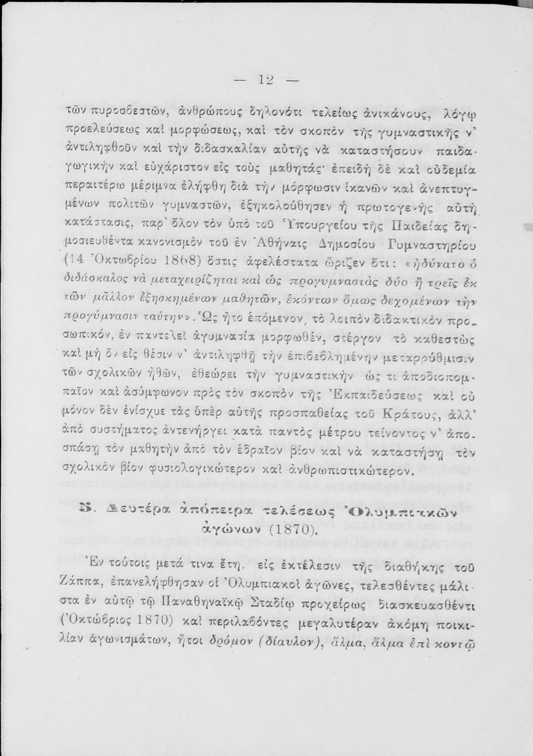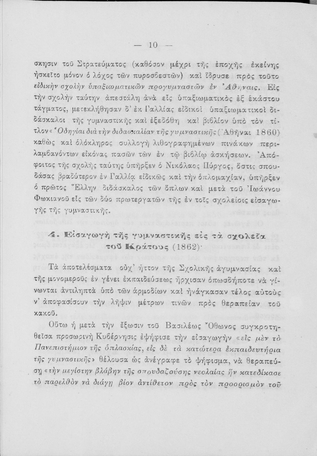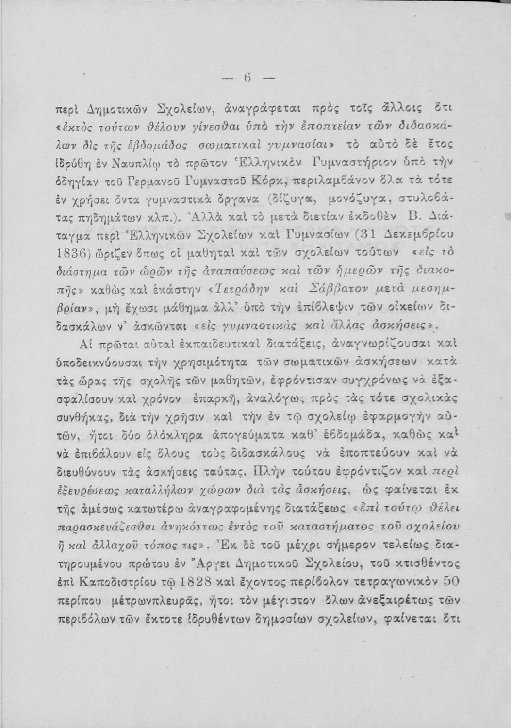 Υπόμνημα που υποβλήθηκε από τον τμηματάρχη Γυμναστικής στο Υπουργείο Εκκλησιαστικών και Δημόσιας Εκπαιδεύσεως και περιλαμβάνει ζητήματα σωματικής αγωγής των νέων, ιστορική αναδρομή και αναφορά στον προσκοπισμό.