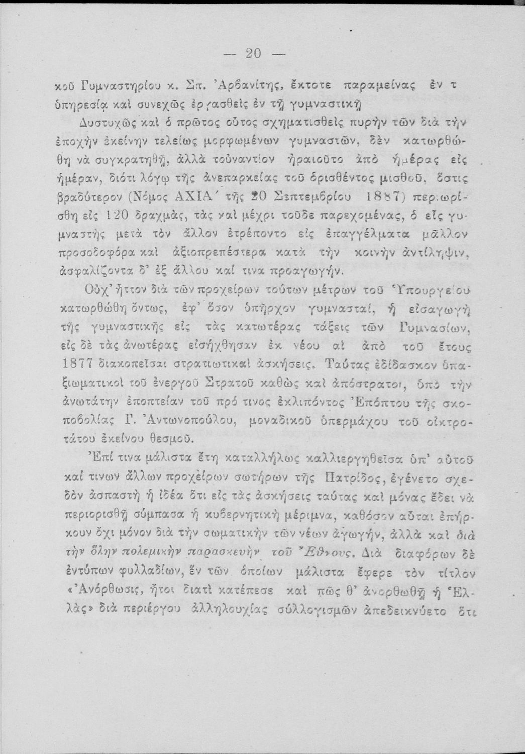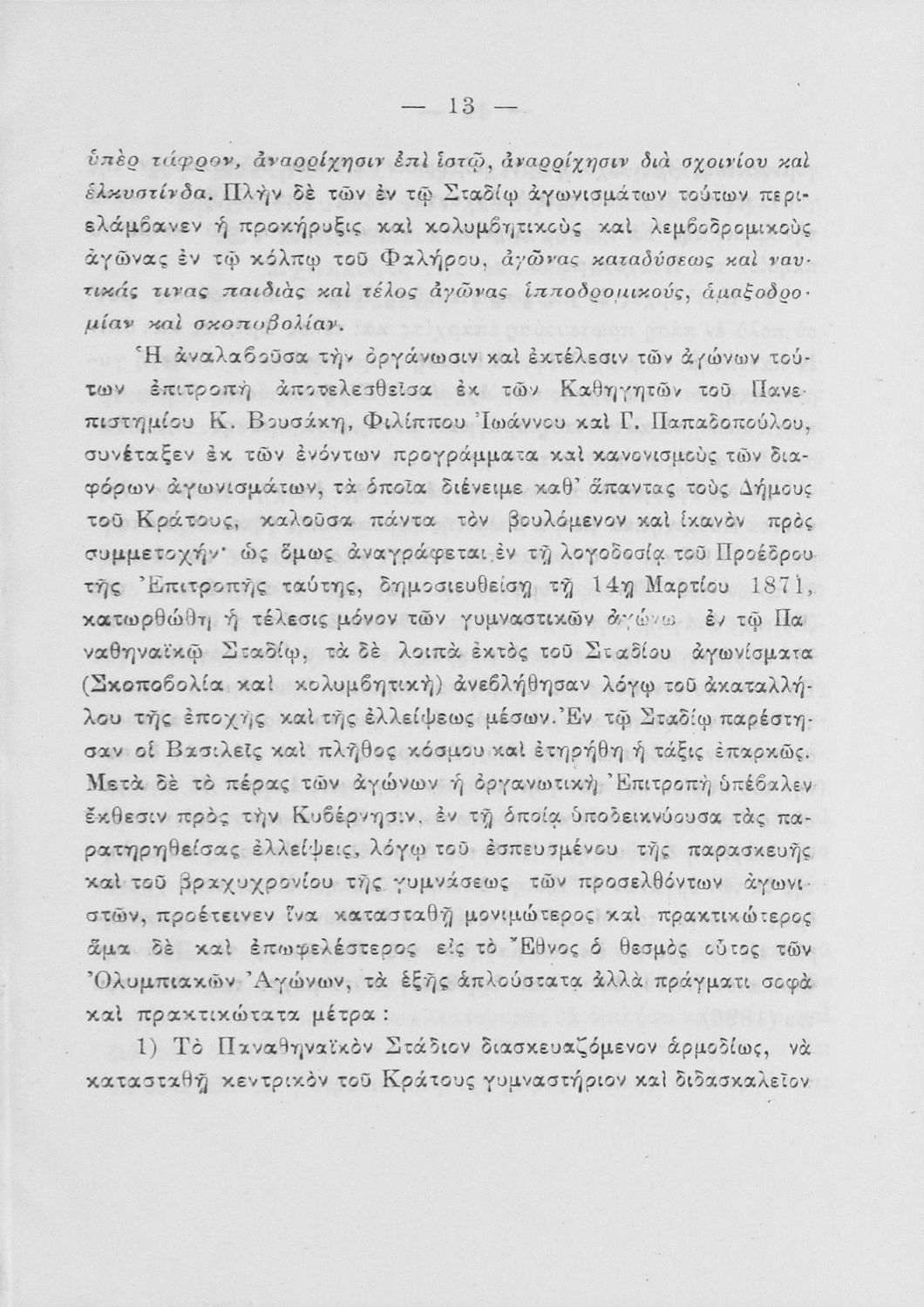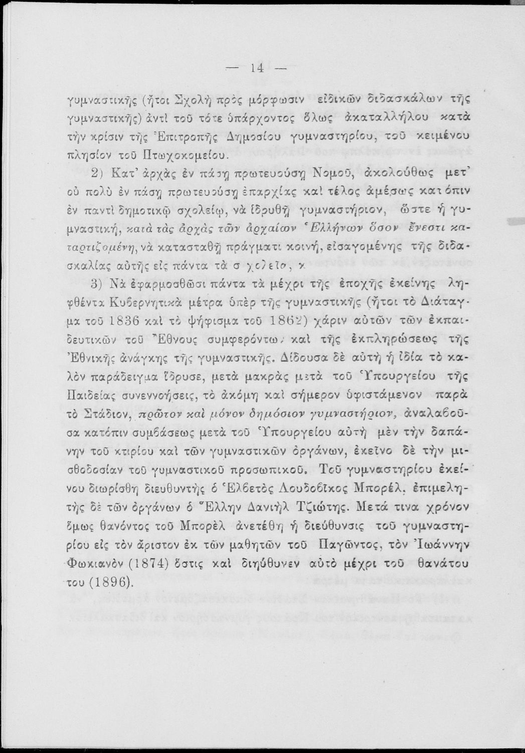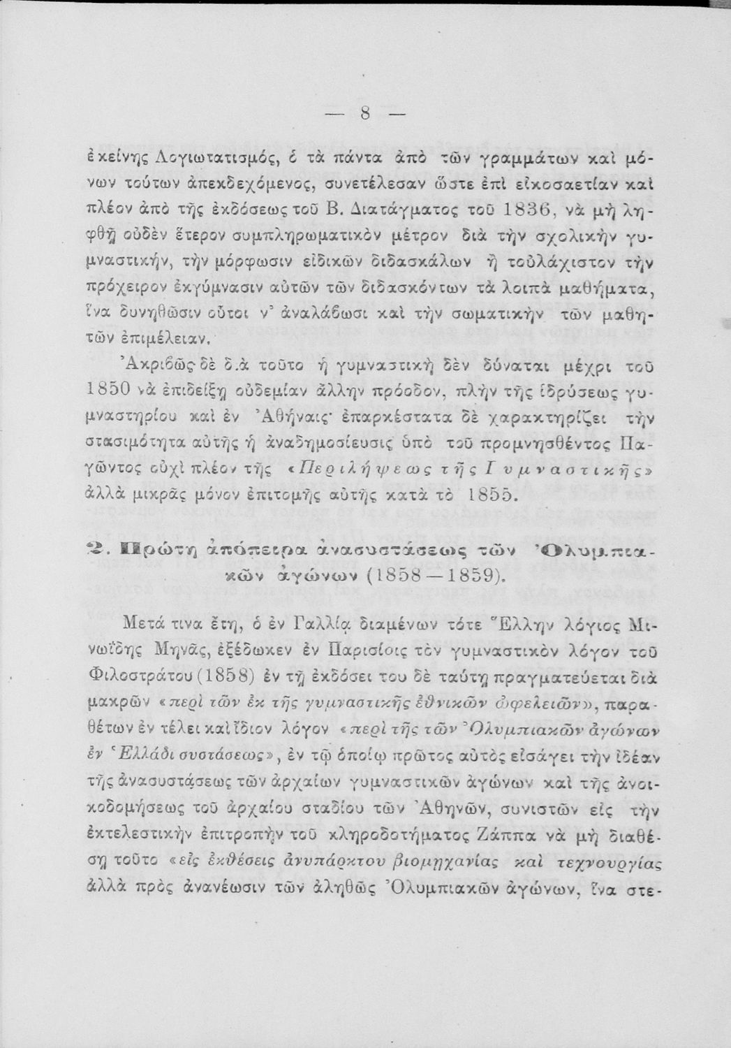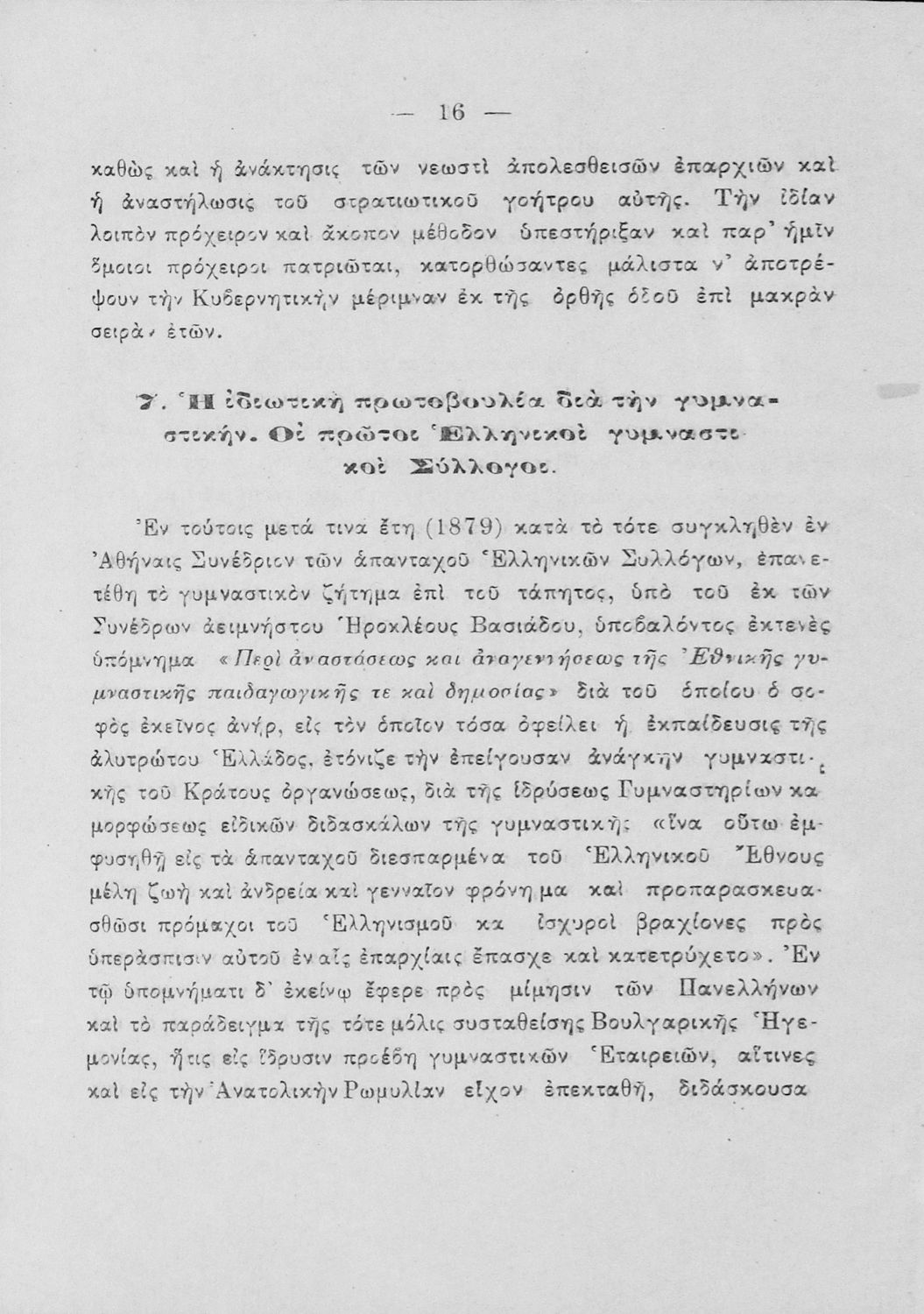 Υπόμνημα που υποβλήθηκε από τον τμηματάρχη Γυμναστικής στο Υπουργείο Εκκλησιαστικών και Δημόσιας Εκπαιδεύσεως και περιλαμβάνει ζητήματα σωματικής αγωγής των νέων, ιστορική αναδρομή και αναφορά στον προσκοπισμό.