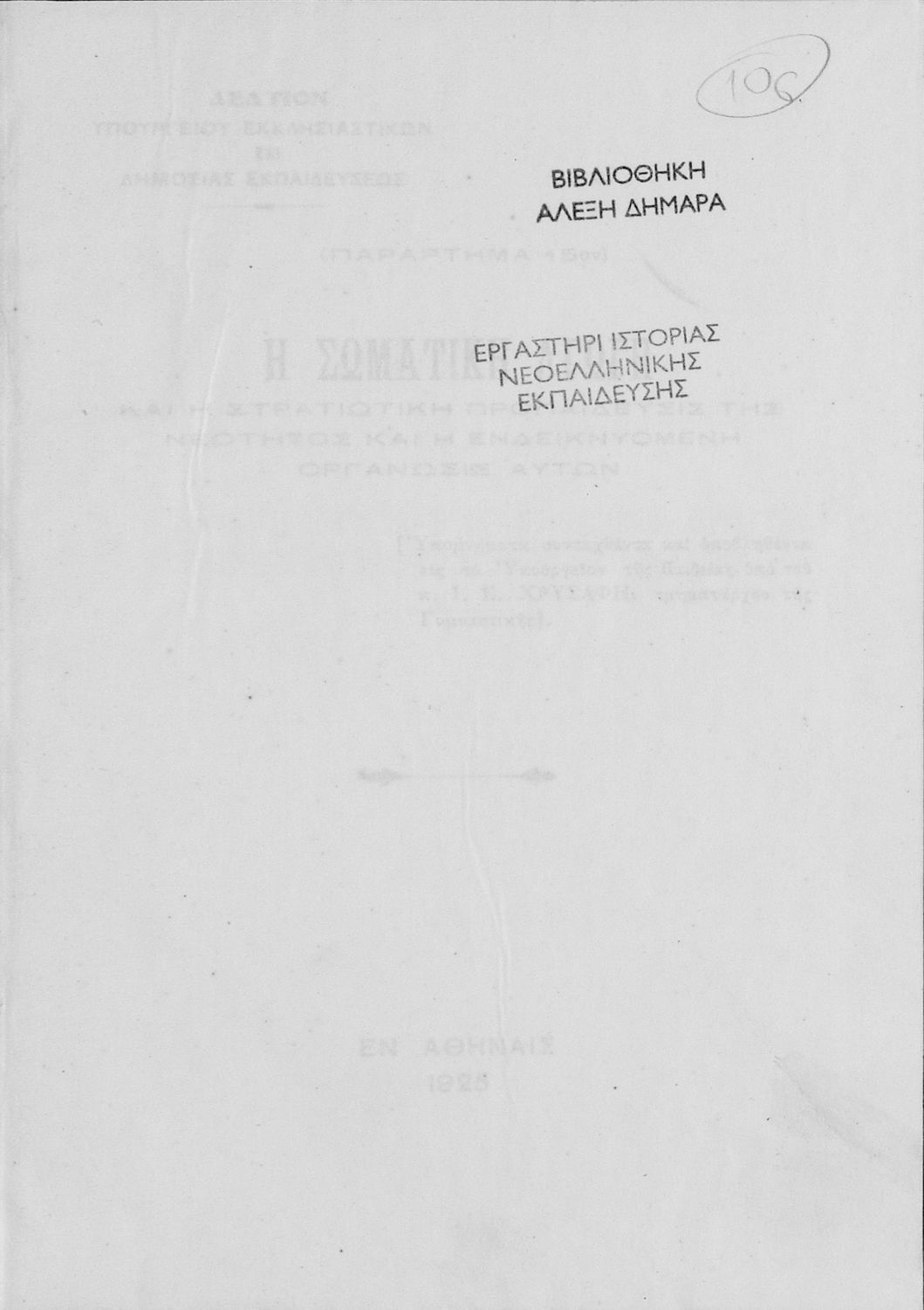Εντοπισμός πρωτοτύπου: Εργαστήρι Ιστορίας Ν.Ε. Εκπαίδευσης, Πανεπιστήμιο Ιωαννίνων Κωδικός βιβλιοθήκης: 106 |