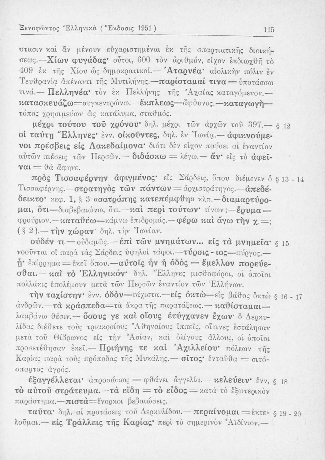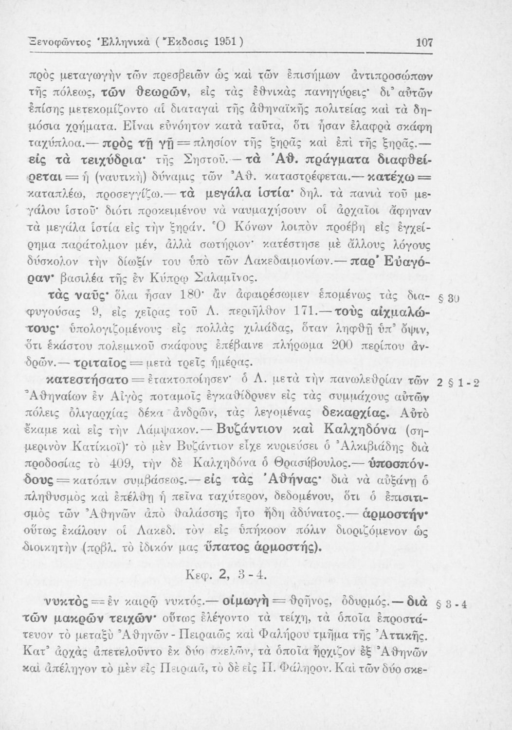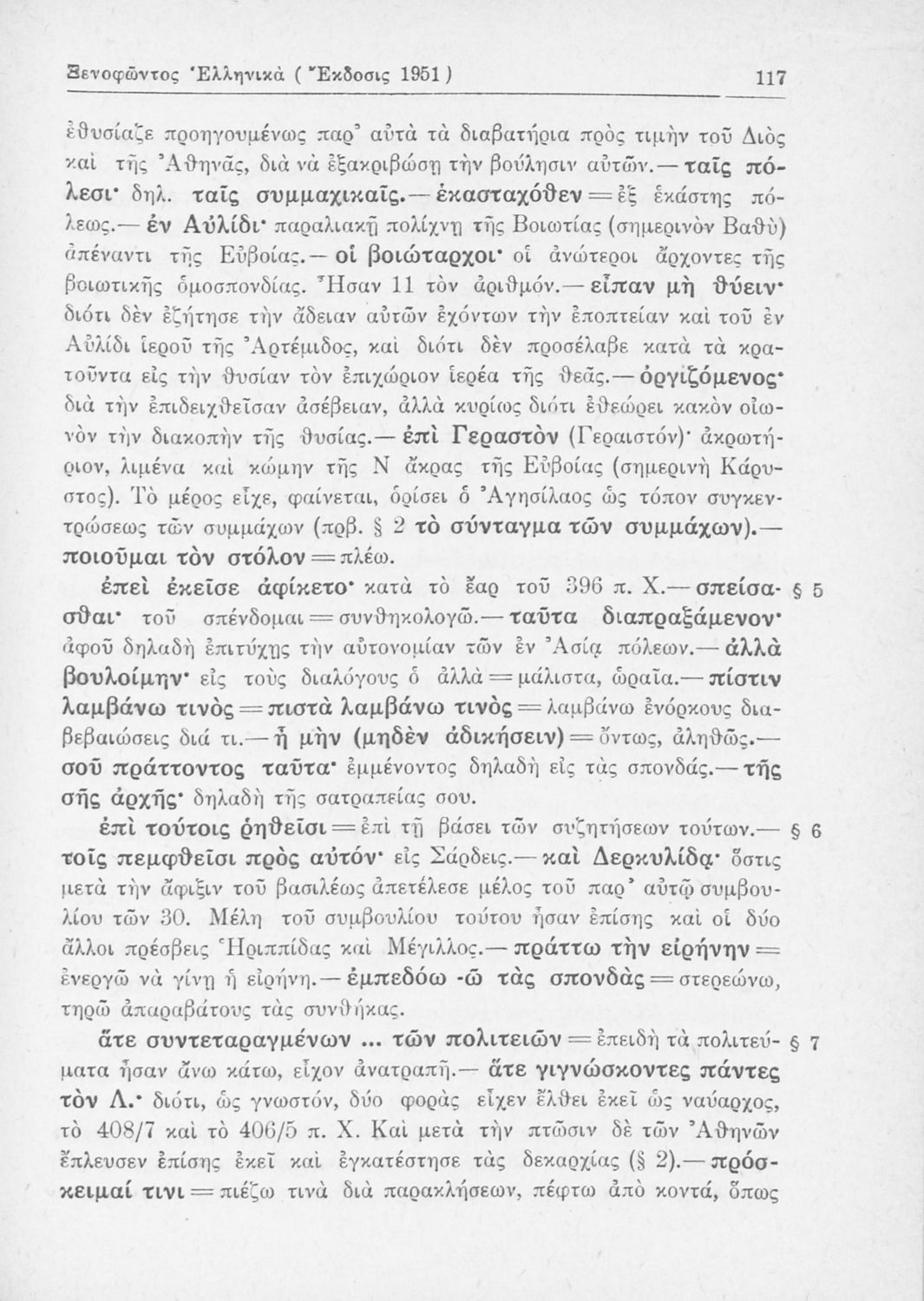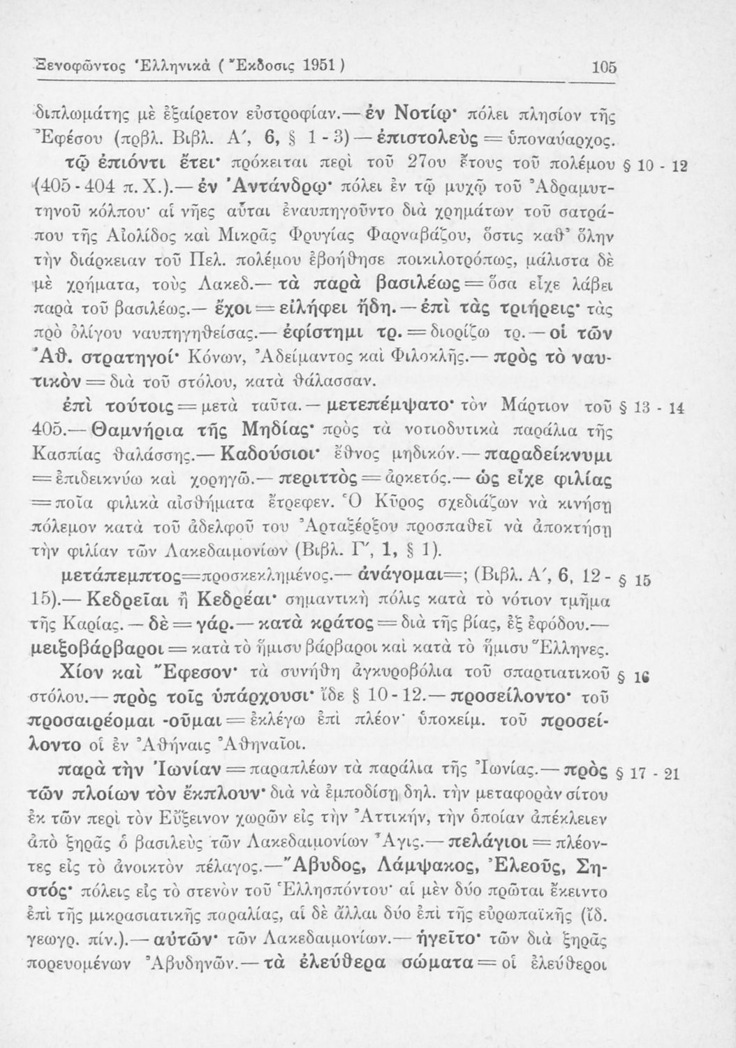 Σχολικό εγχειρίδιο Αρχαίων Ελληνικών Β΄ Γυμνασίου που περιλαμβάνει αποσπάσματα από τα Ελληνικά του Ξενοφώντα, εισαγωγή, ερμηνευτικές παρατηρήσεις και πίνακες και σχεδιαγράμματα μαχών.