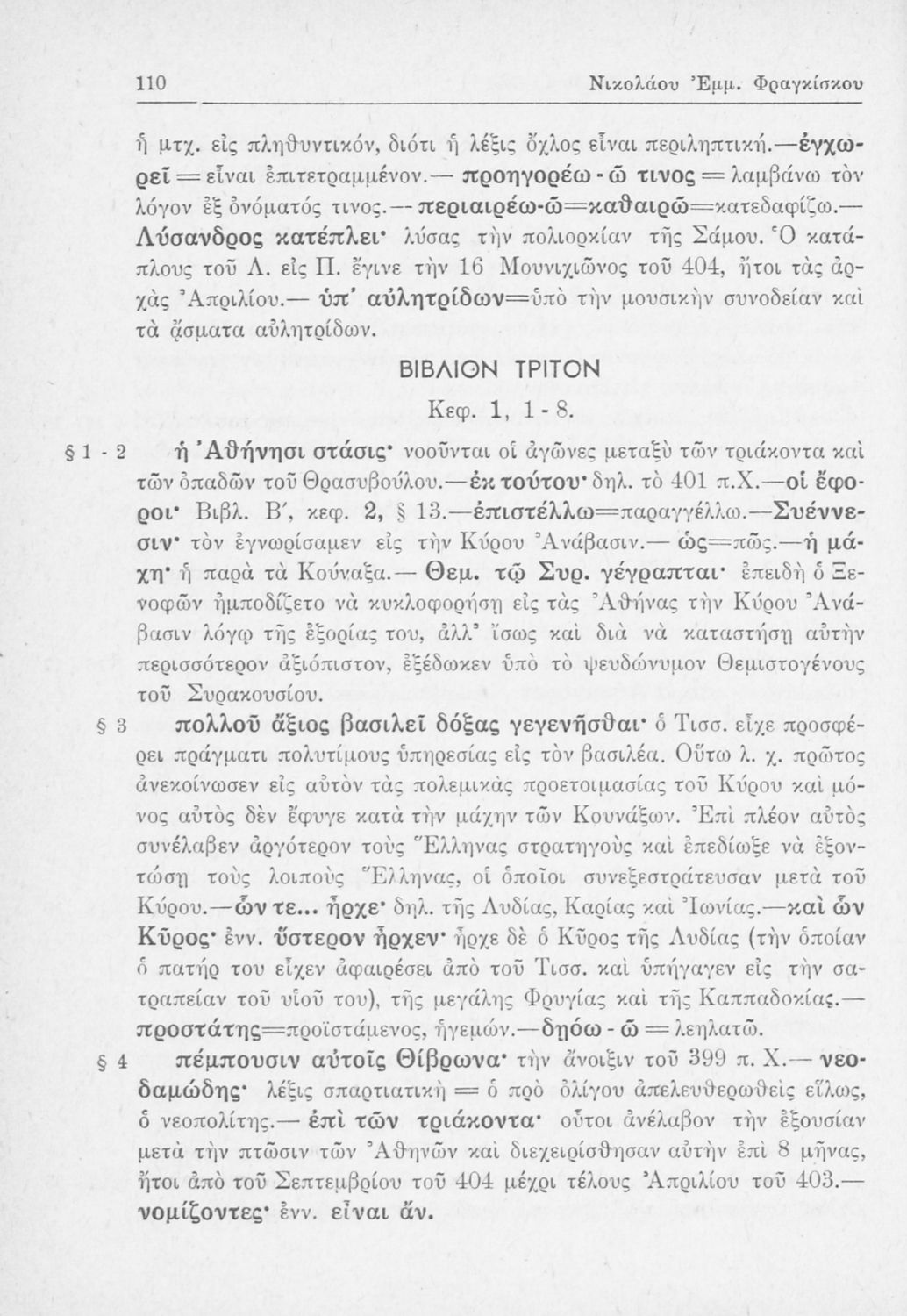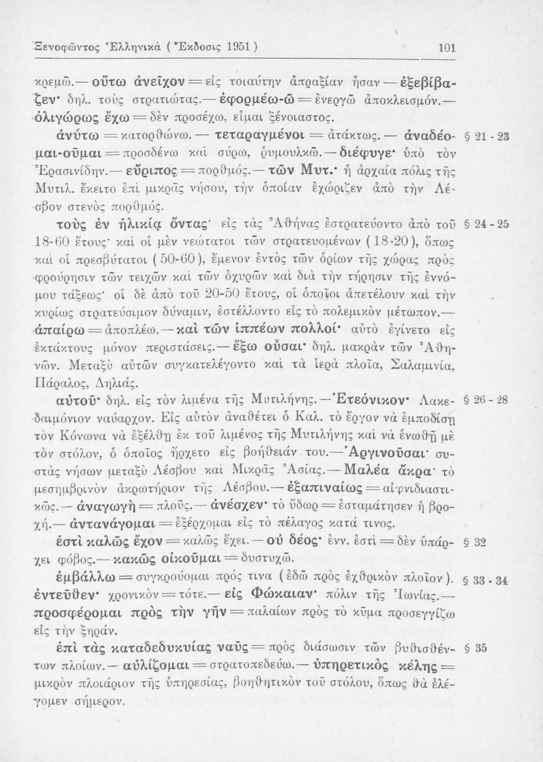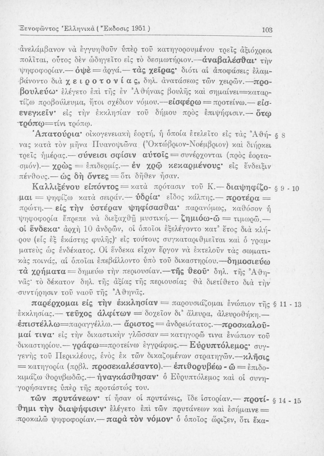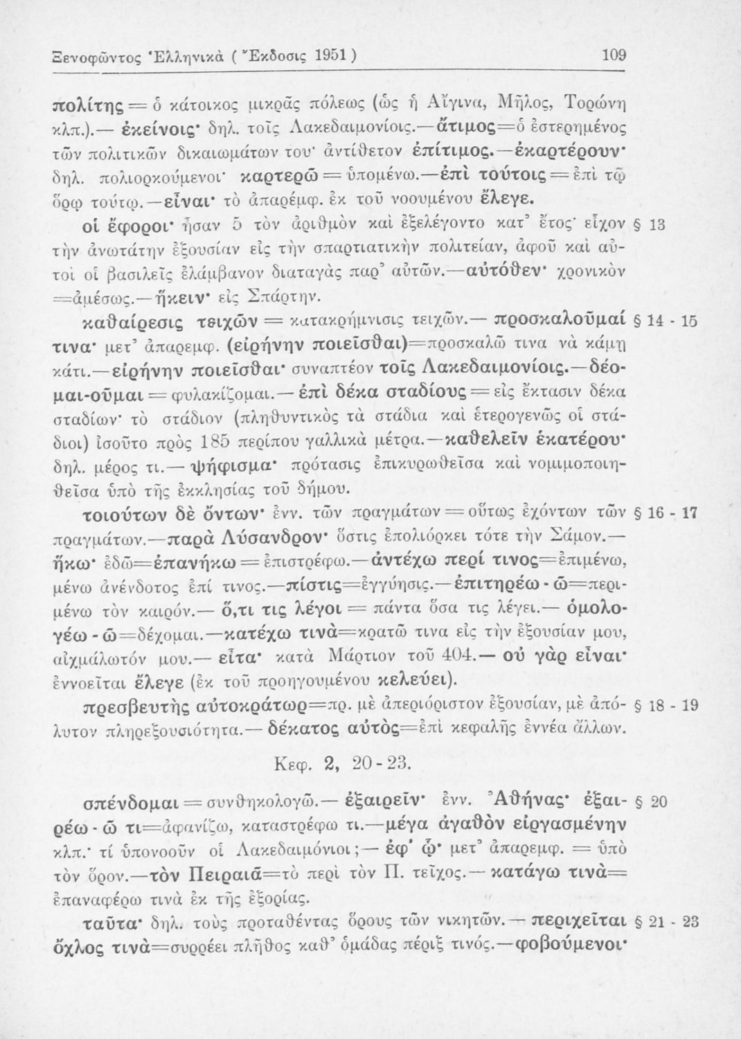 Σχολικό εγχειρίδιο Αρχαίων Ελληνικών Β΄ Γυμνασίου που περιλαμβάνει αποσπάσματα από τα Ελληνικά του Ξενοφώντα, εισαγωγή, ερμηνευτικές παρατηρήσεις και πίνακες και σχεδιαγράμματα μαχών.