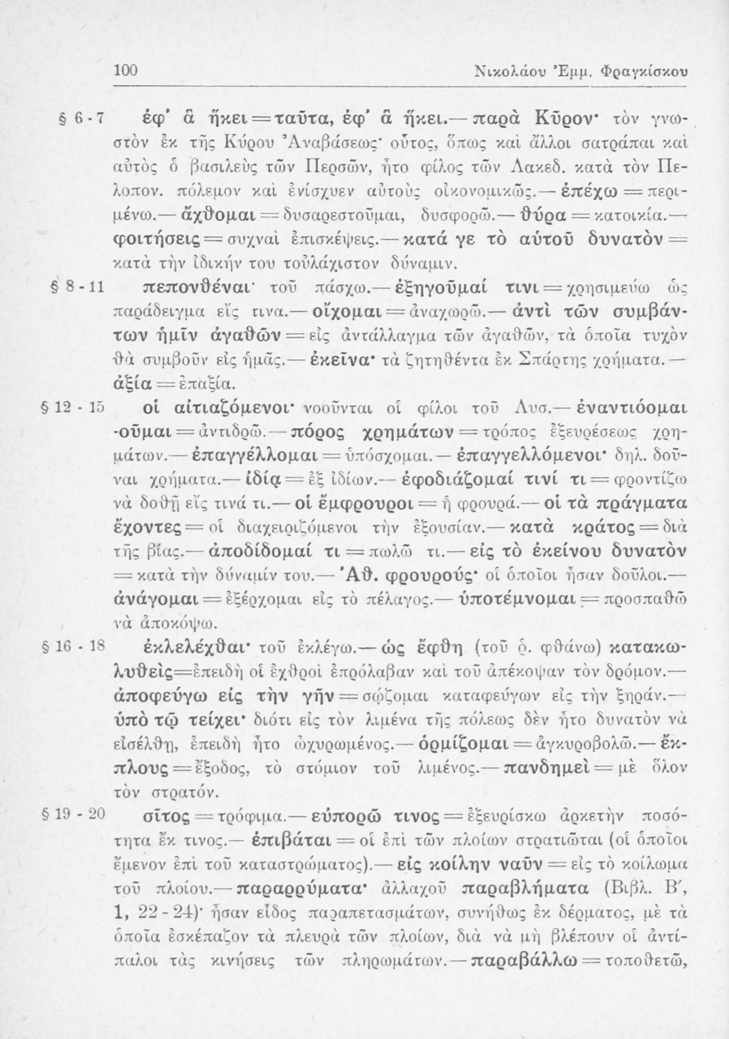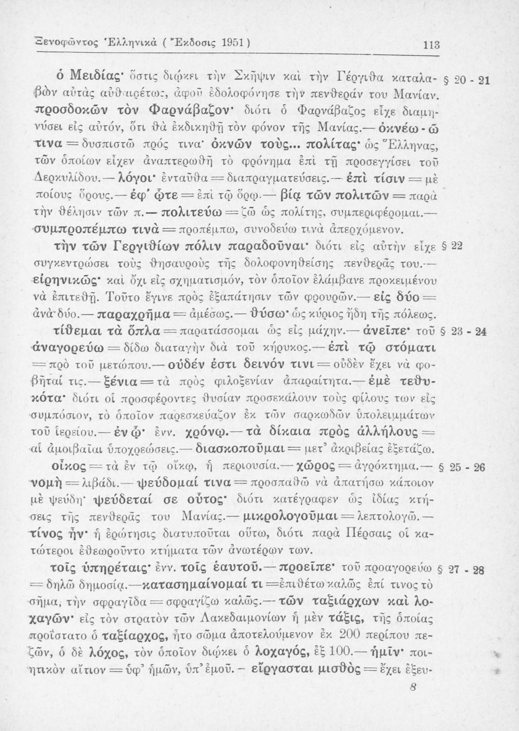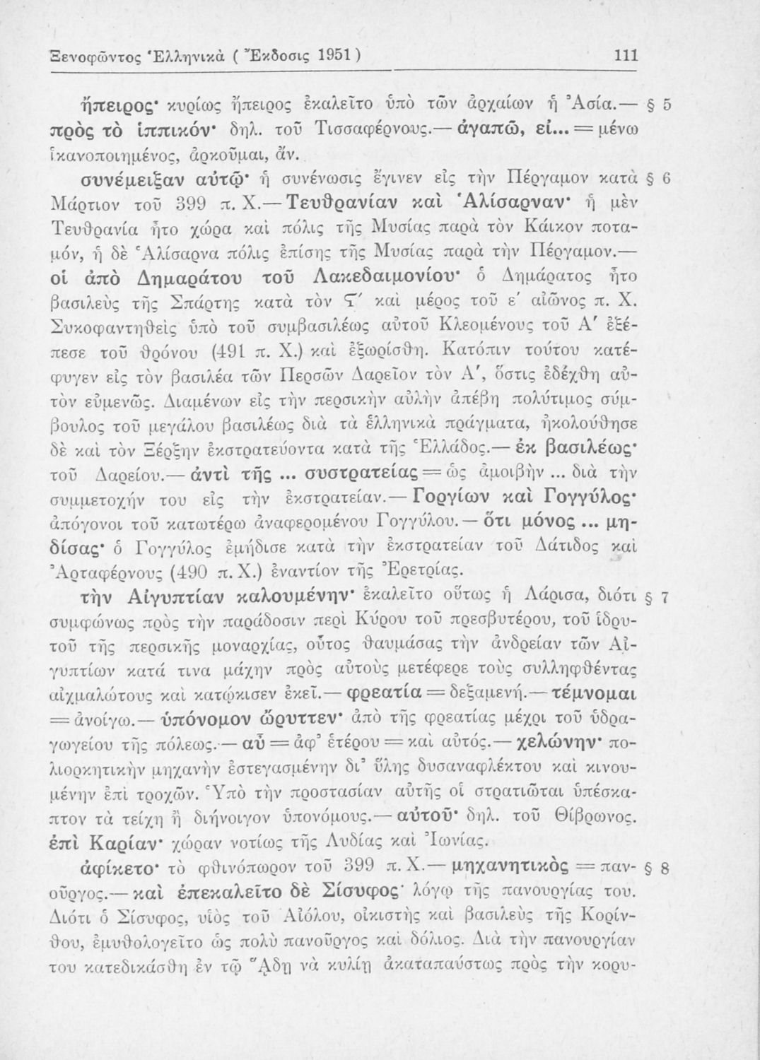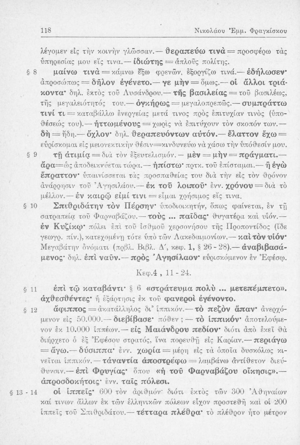 Σχολικό εγχειρίδιο Αρχαίων Ελληνικών Β΄ Γυμνασίου που περιλαμβάνει αποσπάσματα από τα Ελληνικά του Ξενοφώντα, εισαγωγή, ερμηνευτικές παρατηρήσεις και πίνακες και σχεδιαγράμματα μαχών.