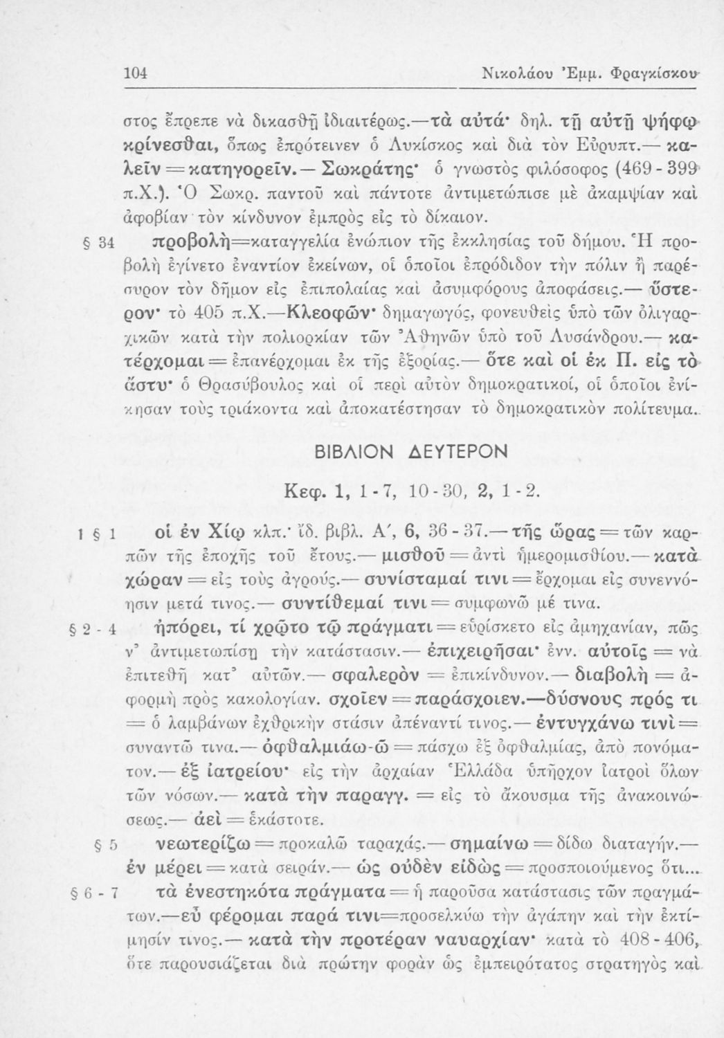 Βαθμίδα εκπαίδευσης: Δευτεροβάθμια Τάξη: Β' Γυμνασίου Μάθημα: Αρχαία Ελληνικά Γλώσσα: Καθαρεύουσα Παρουσίαση περιεχομένου: Σχολικό εγχειρίδιο Αρχαίων Ελληνικών Β΄ Γυμνασίου που περιλαμβάνει αποσπάσματα από τα Ελληνικά του Ξενοφώντα, εισαγωγή, ερμηνευτικές παρατηρήσεις και πίνακες και σχεδιαγράμματα μαχών. |