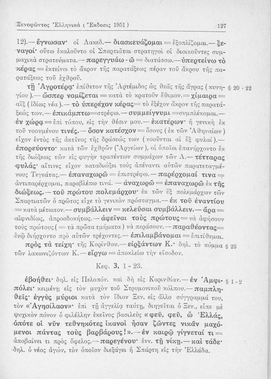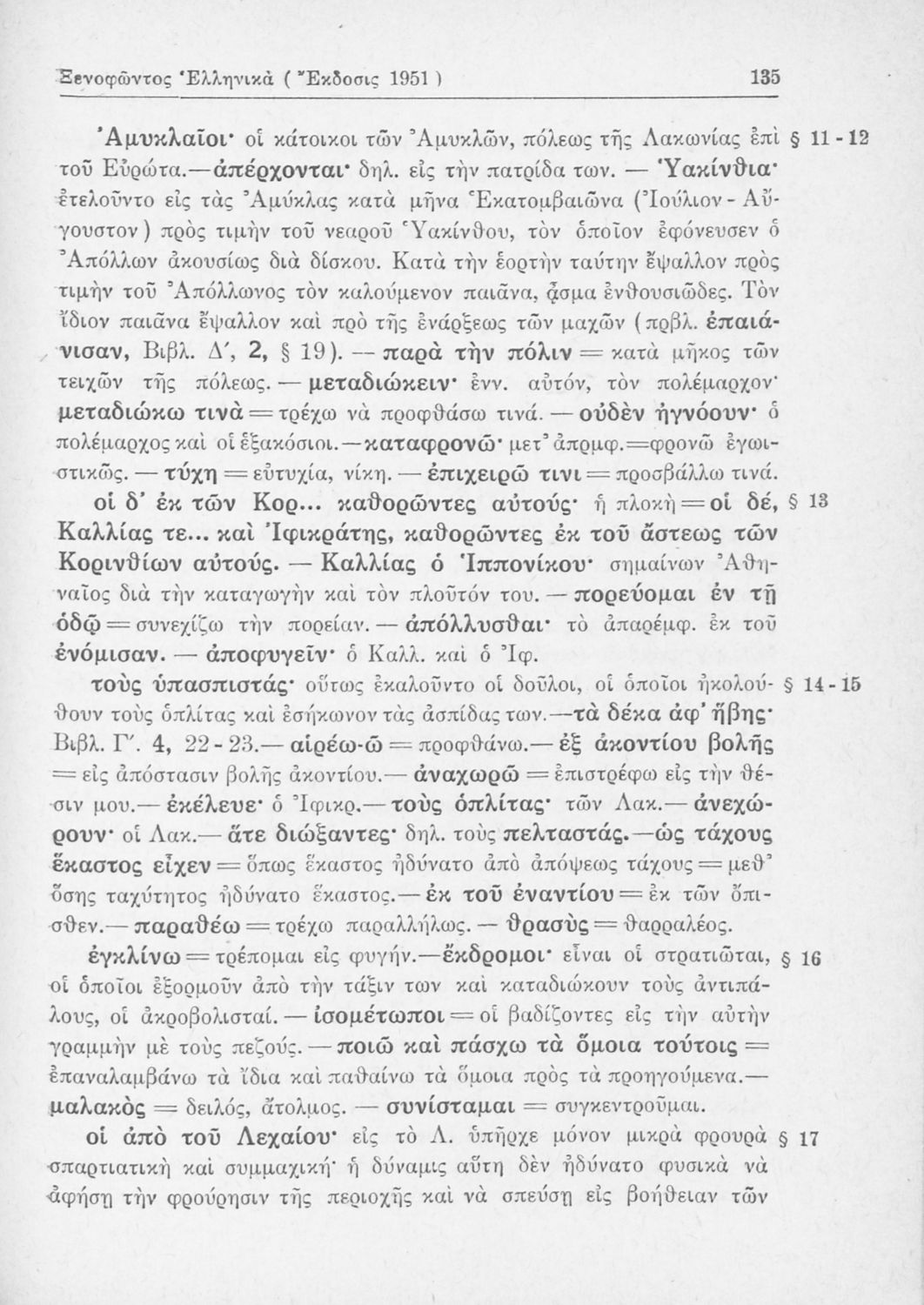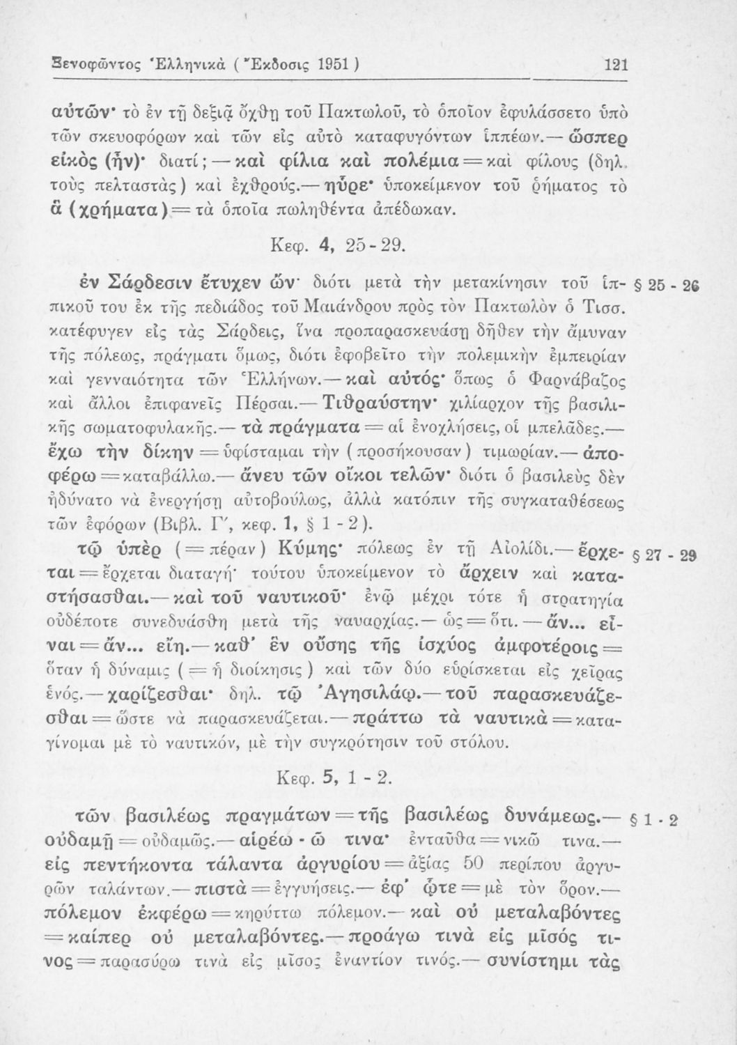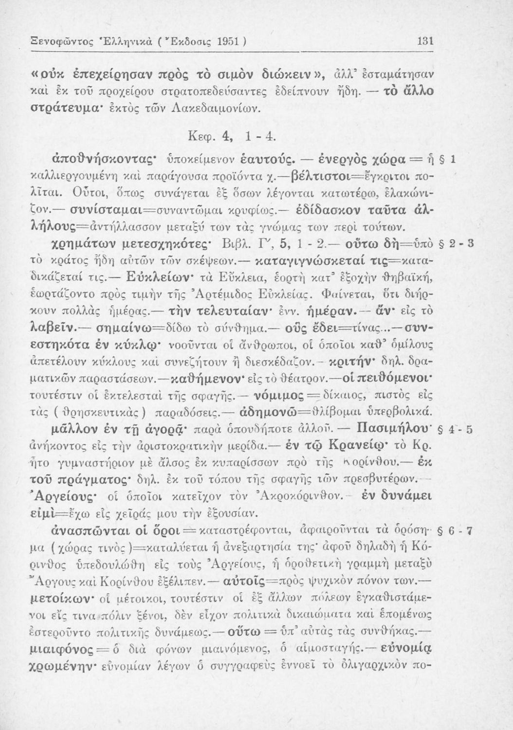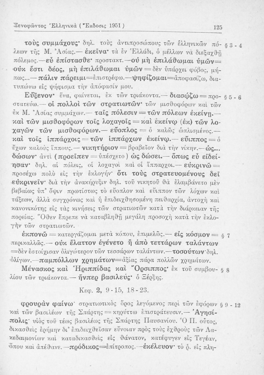 Σχολικό εγχειρίδιο Αρχαίων Ελληνικών Β΄ Γυμνασίου που περιλαμβάνει αποσπάσματα από τα Ελληνικά του Ξενοφώντα, εισαγωγή, ερμηνευτικές παρατηρήσεις και πίνακες και σχεδιαγράμματα μαχών.