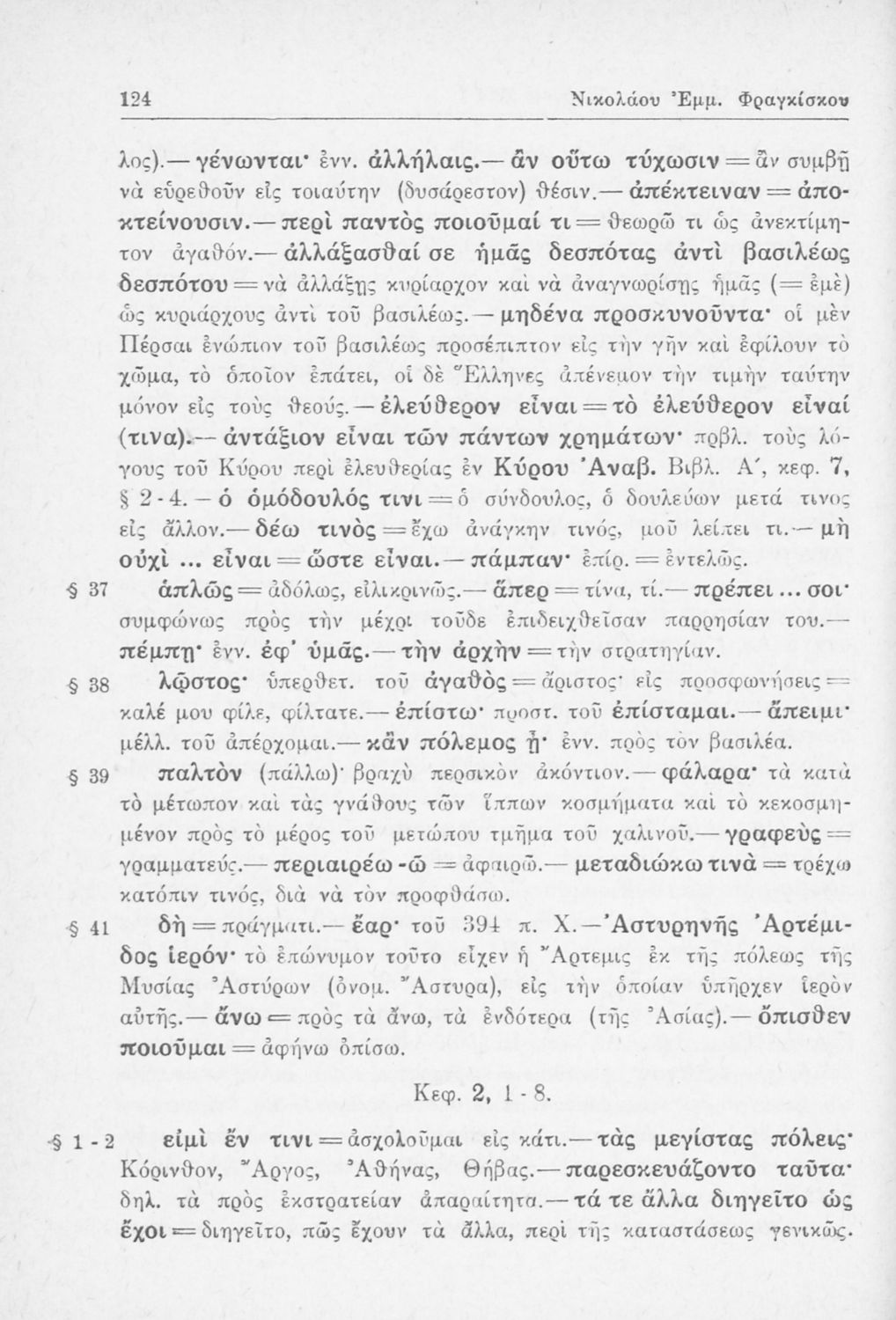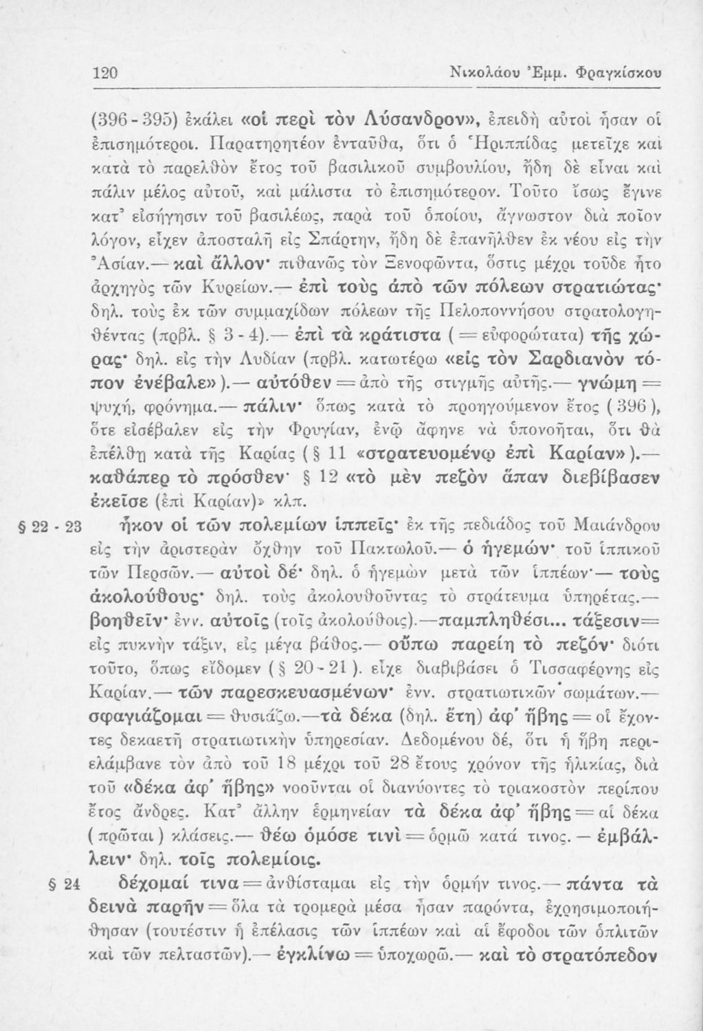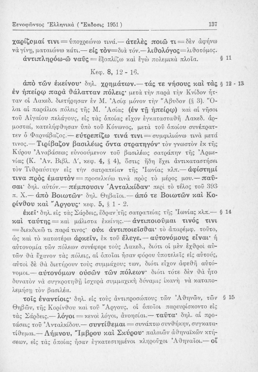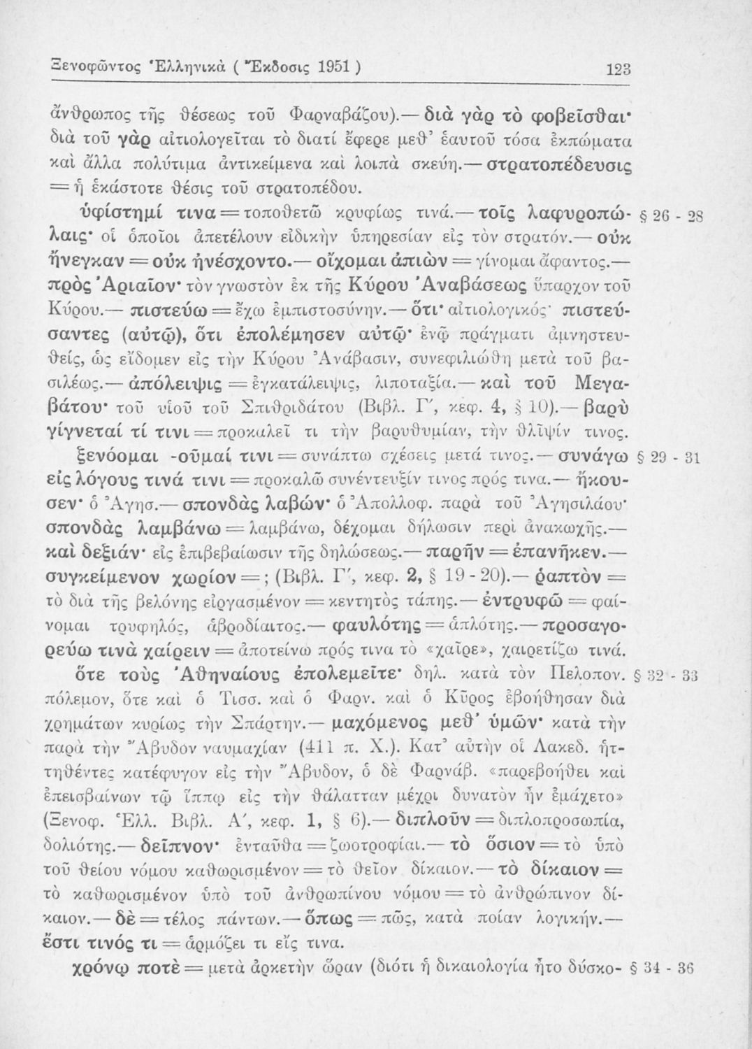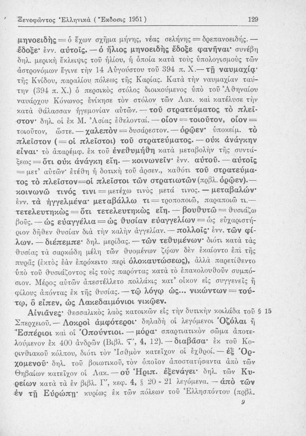 Σχολικό εγχειρίδιο Αρχαίων Ελληνικών Β΄ Γυμνασίου που περιλαμβάνει αποσπάσματα από τα Ελληνικά του Ξενοφώντα, εισαγωγή, ερμηνευτικές παρατηρήσεις και πίνακες και σχεδιαγράμματα μαχών.