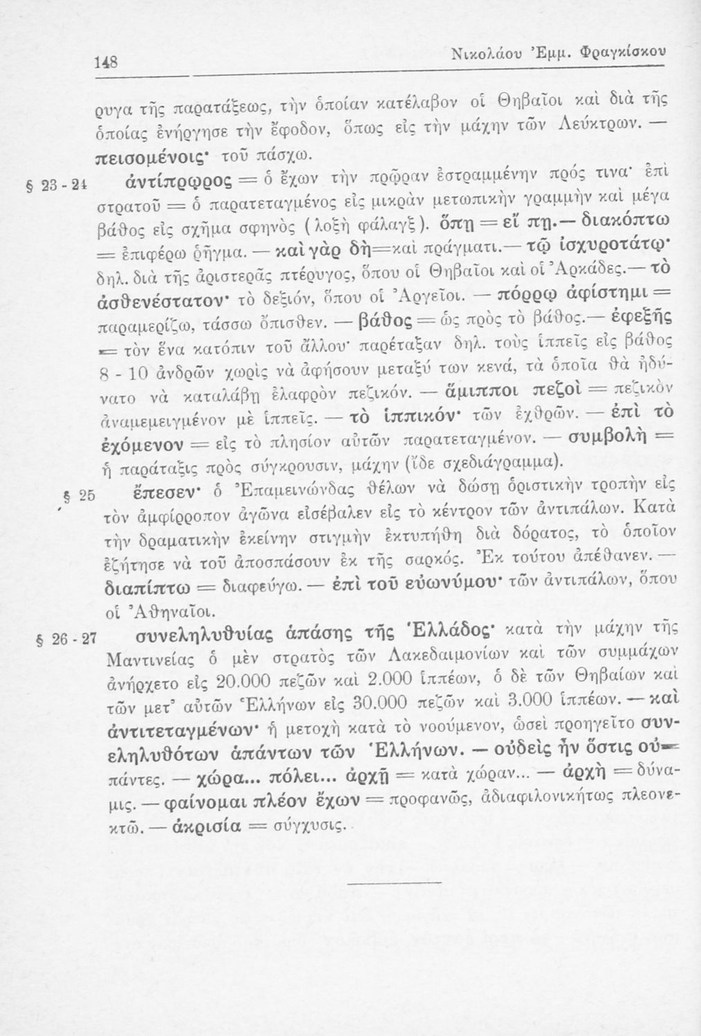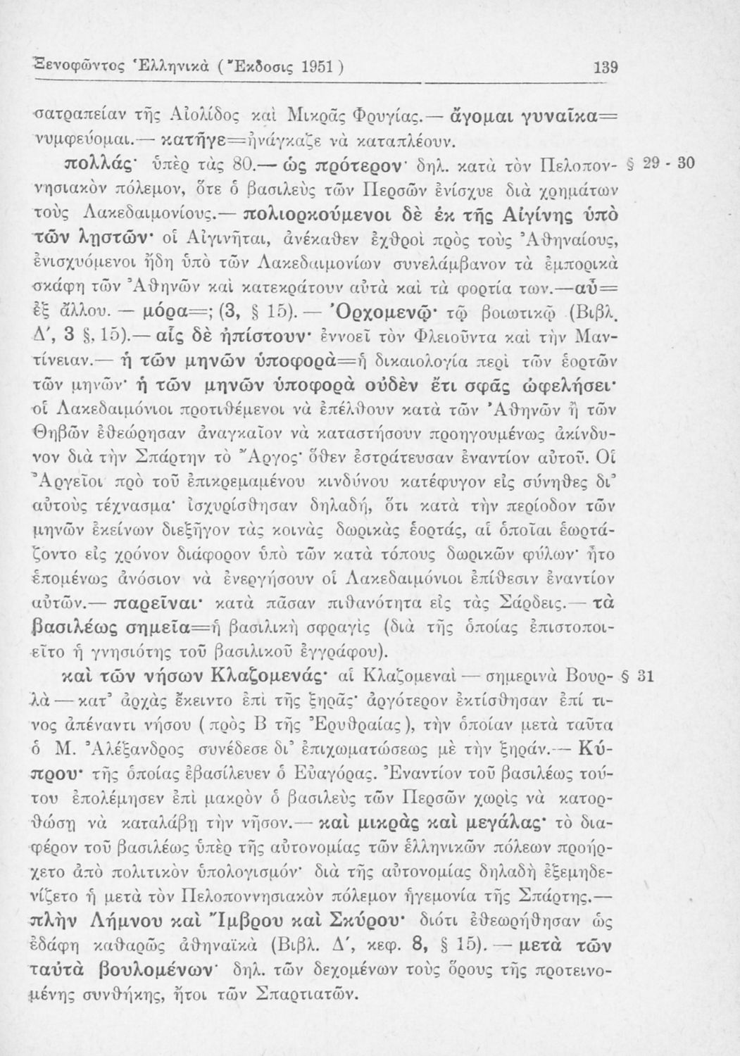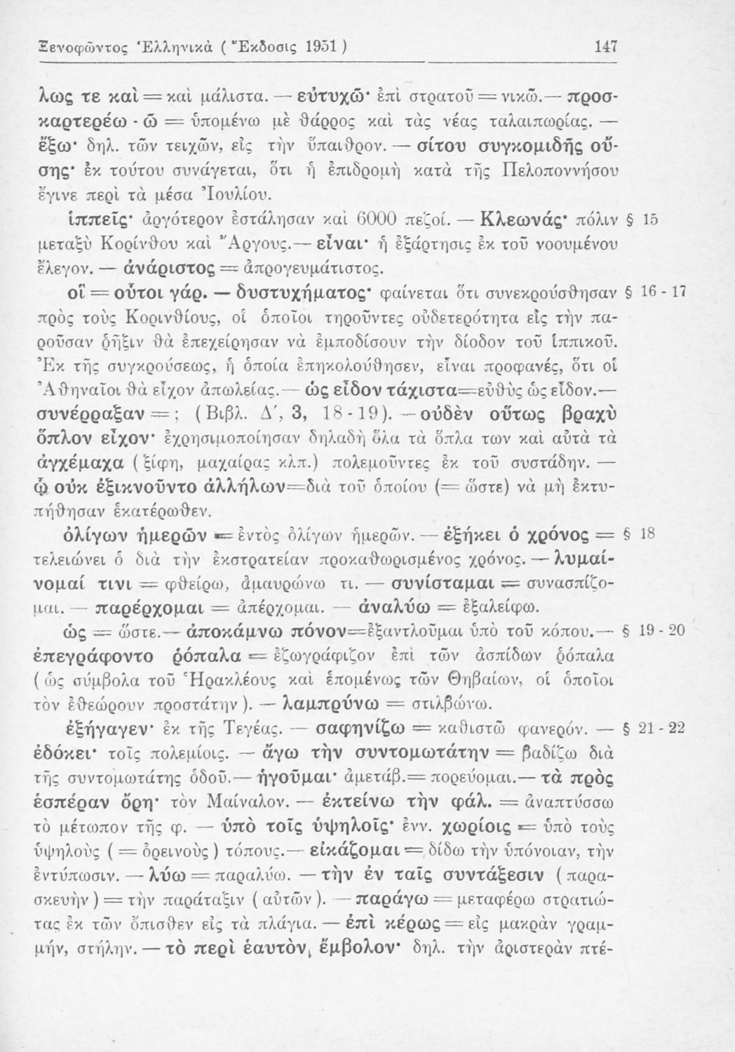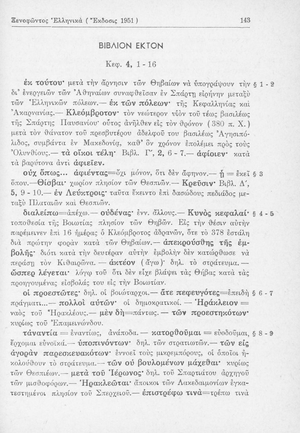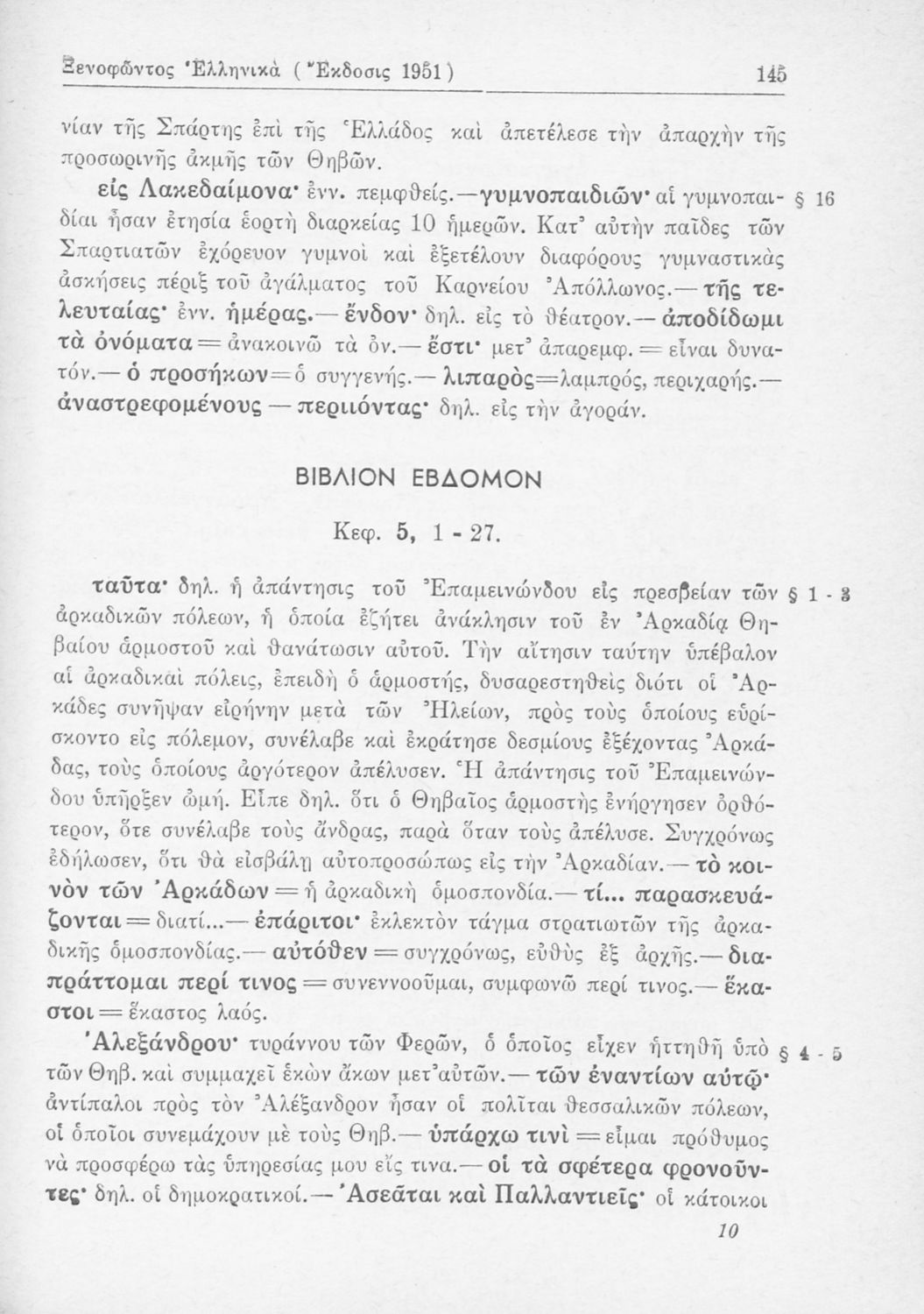 Σχολικό εγχειρίδιο Αρχαίων Ελληνικών Β΄ Γυμνασίου που περιλαμβάνει αποσπάσματα από τα Ελληνικά του Ξενοφώντα, εισαγωγή, ερμηνευτικές παρατηρήσεις και πίνακες και σχεδιαγράμματα μαχών.