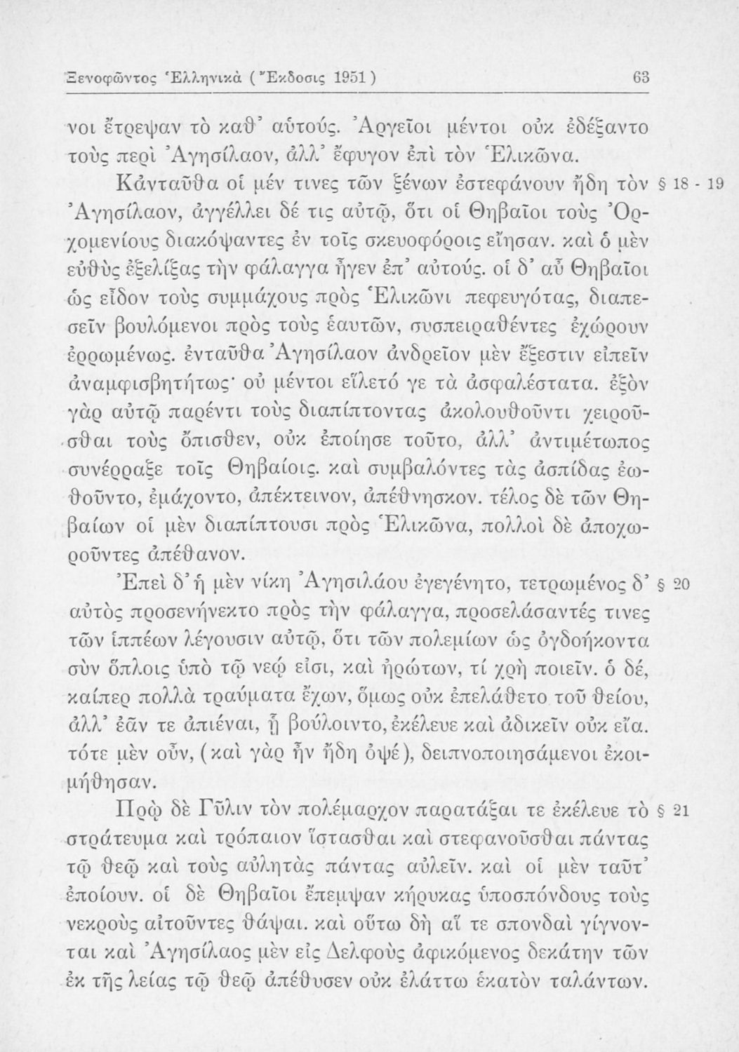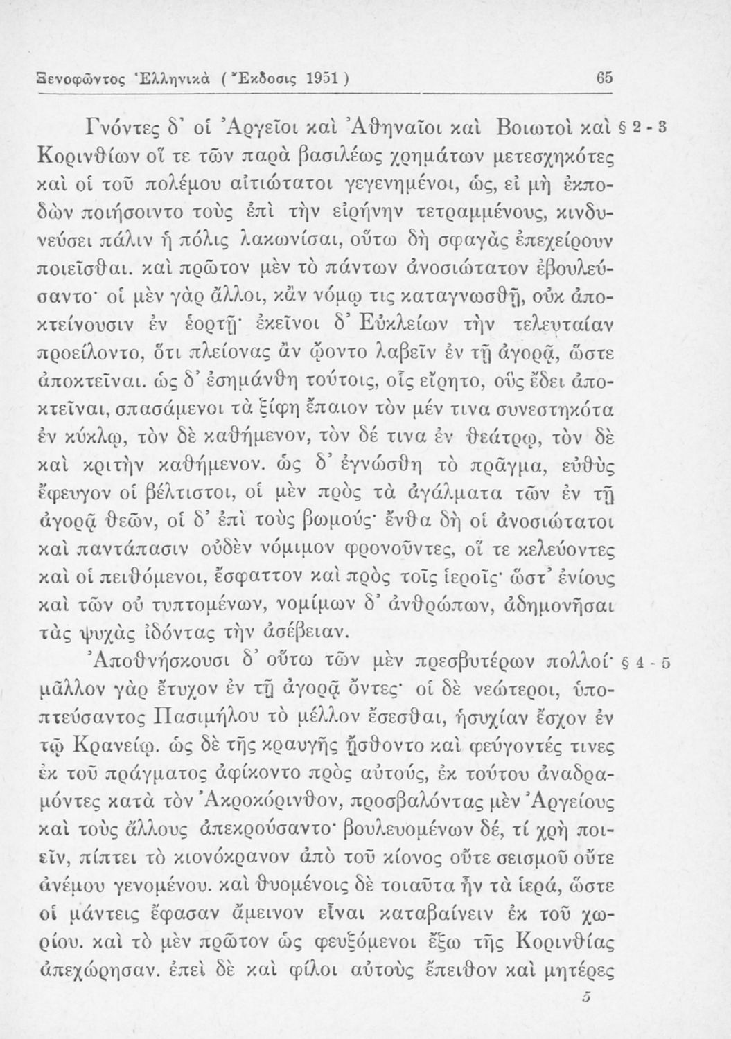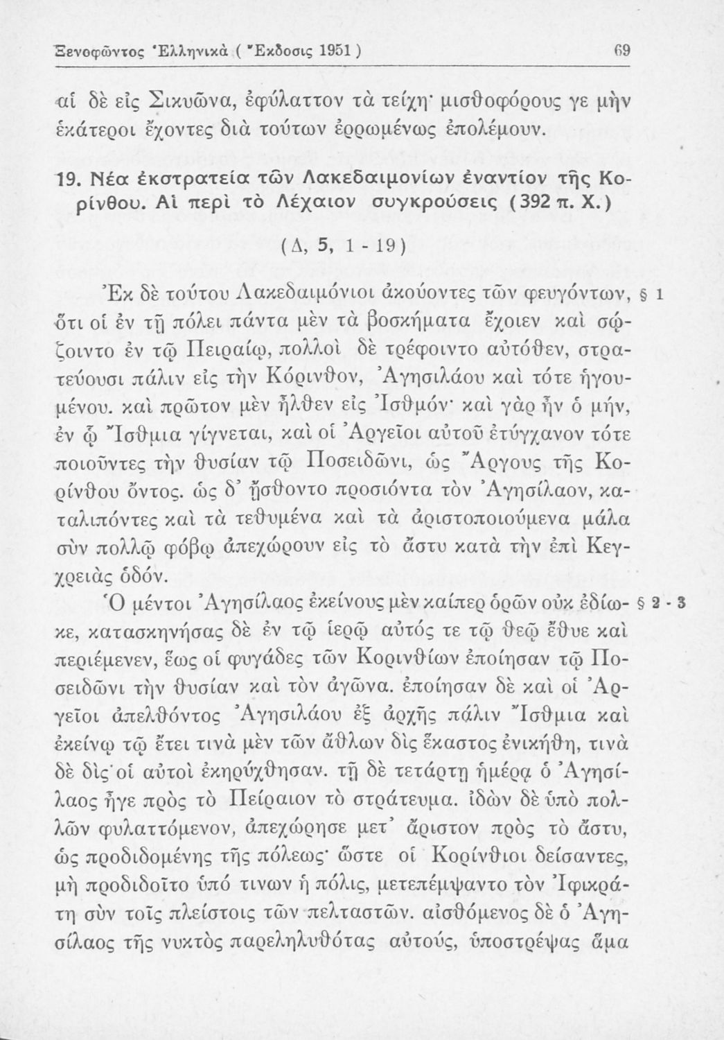 Σχολικό εγχειρίδιο Αρχαίων Ελληνικών Β΄ Γυμνασίου που περιλαμβάνει αποσπάσματα από τα Ελληνικά του Ξενοφώντα, εισαγωγή, ερμηνευτικές παρατηρήσεις και πίνακες και σχεδιαγράμματα μαχών.