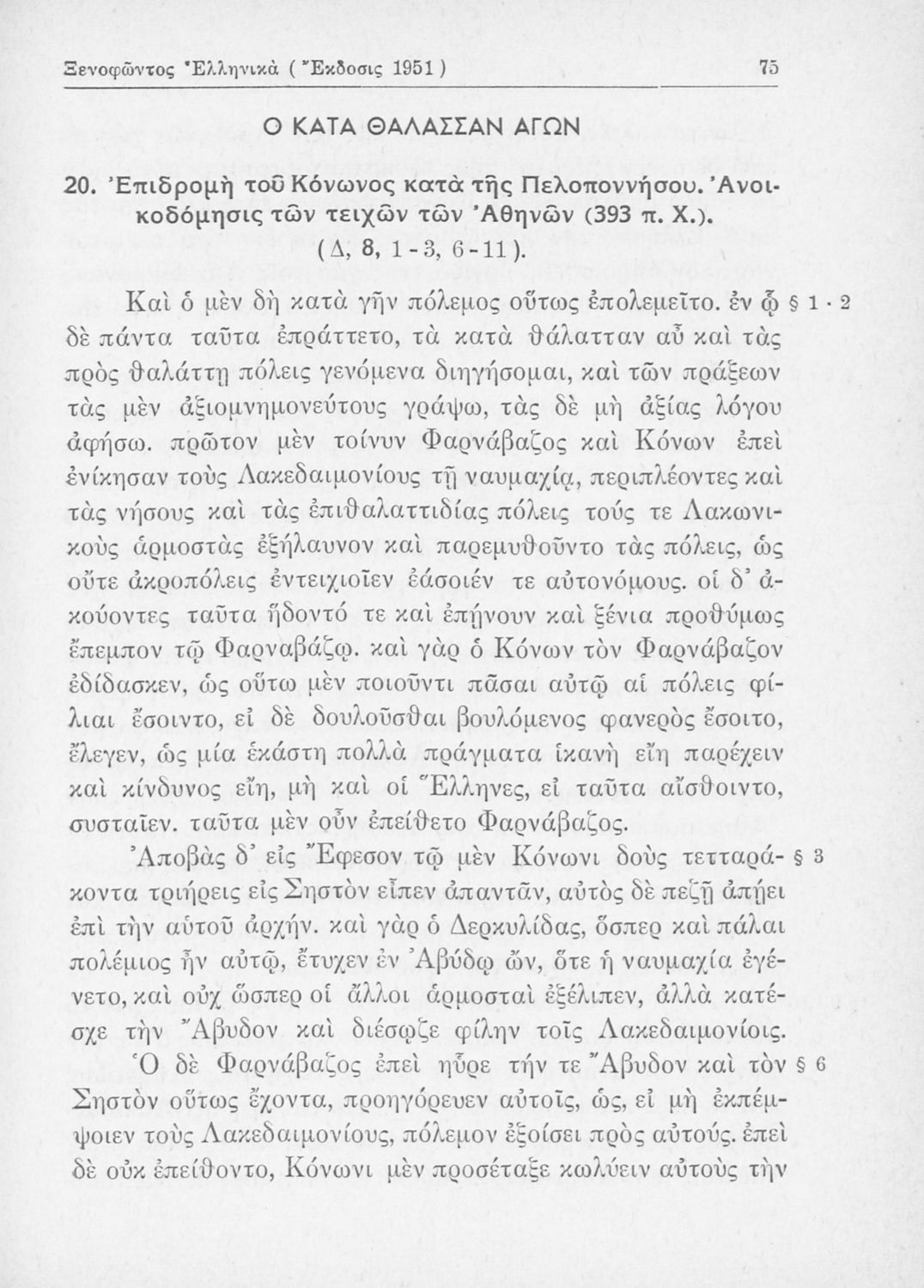 520 ## _aΣχολικό εγχειρίδιο Αρχαίων Ελληνικών Β΄ Γυμνασίου που περιλαμβάνει αποσπάσματα από τα Ελληνικά του Ξενοφώντα, εισαγωγή, ερμηνευτικές παρατηρήσεις και πίνακες και σχεδιαγράμματα μαχών.