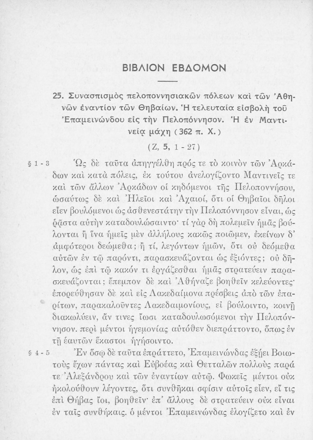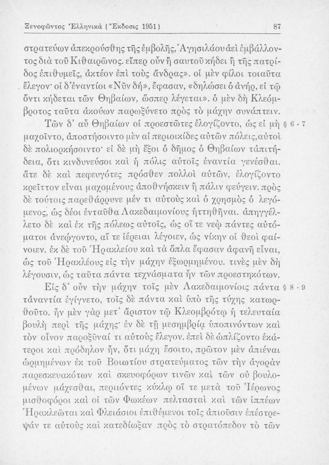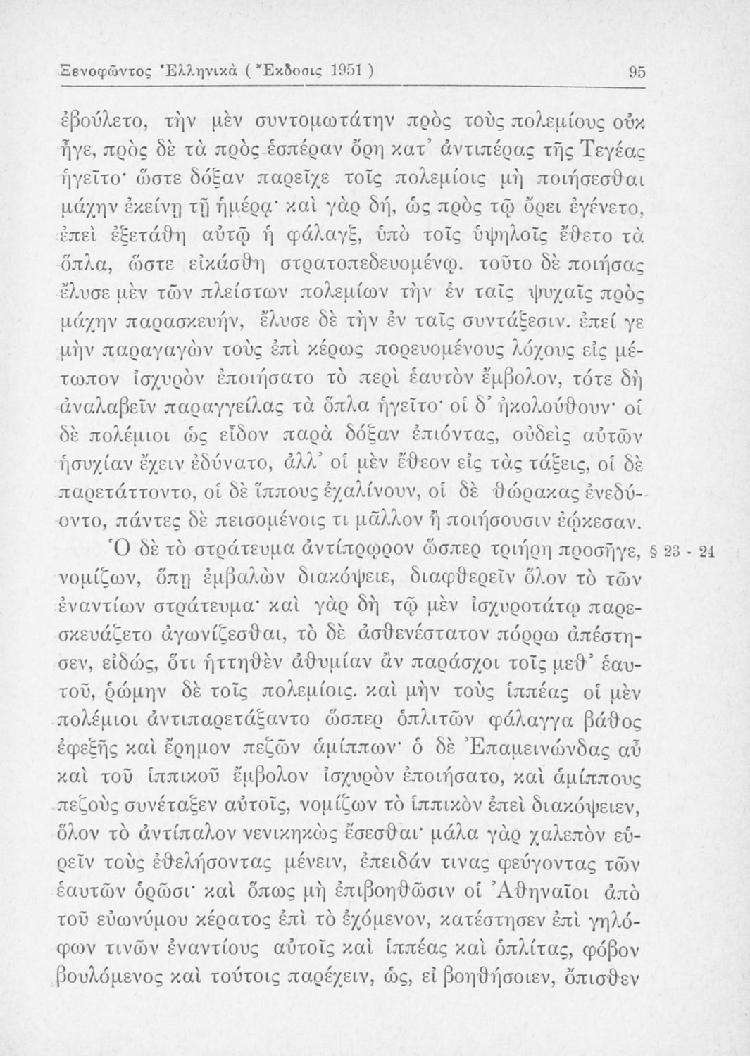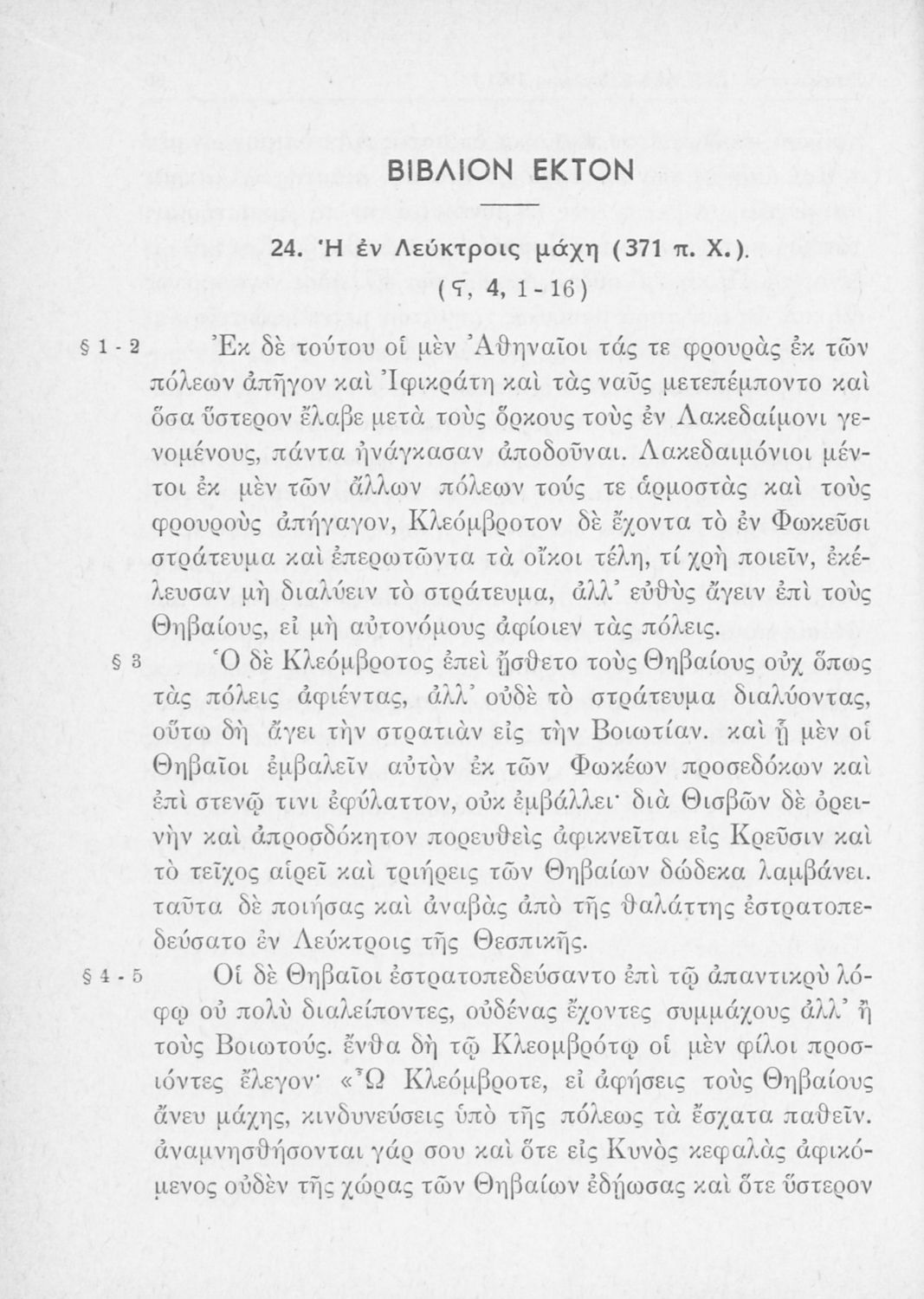 Σχολικό εγχειρίδιο Αρχαίων Ελληνικών Β΄ Γυμνασίου που περιλαμβάνει αποσπάσματα από τα Ελληνικά του Ξενοφώντα, εισαγωγή, ερμηνευτικές παρατηρήσεις και πίνακες και σχεδιαγράμματα μαχών.