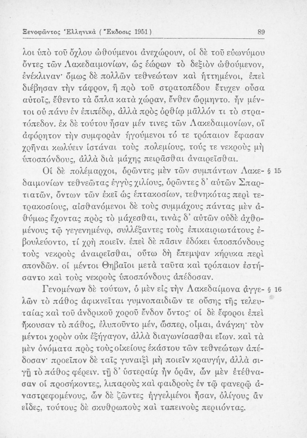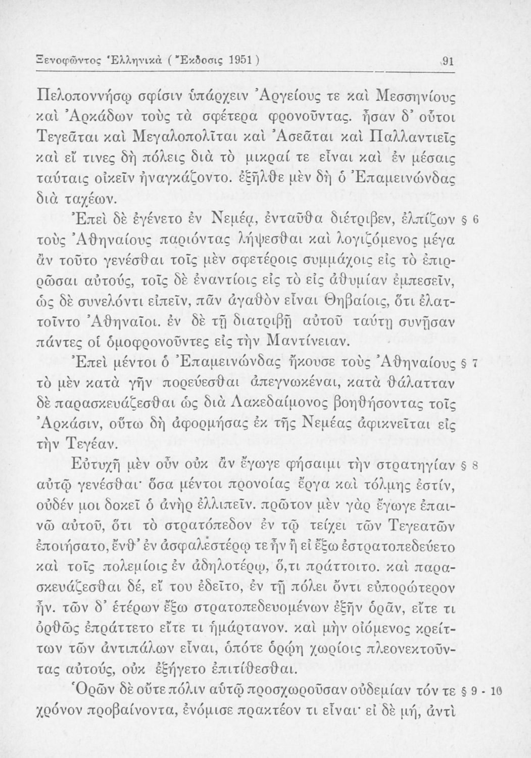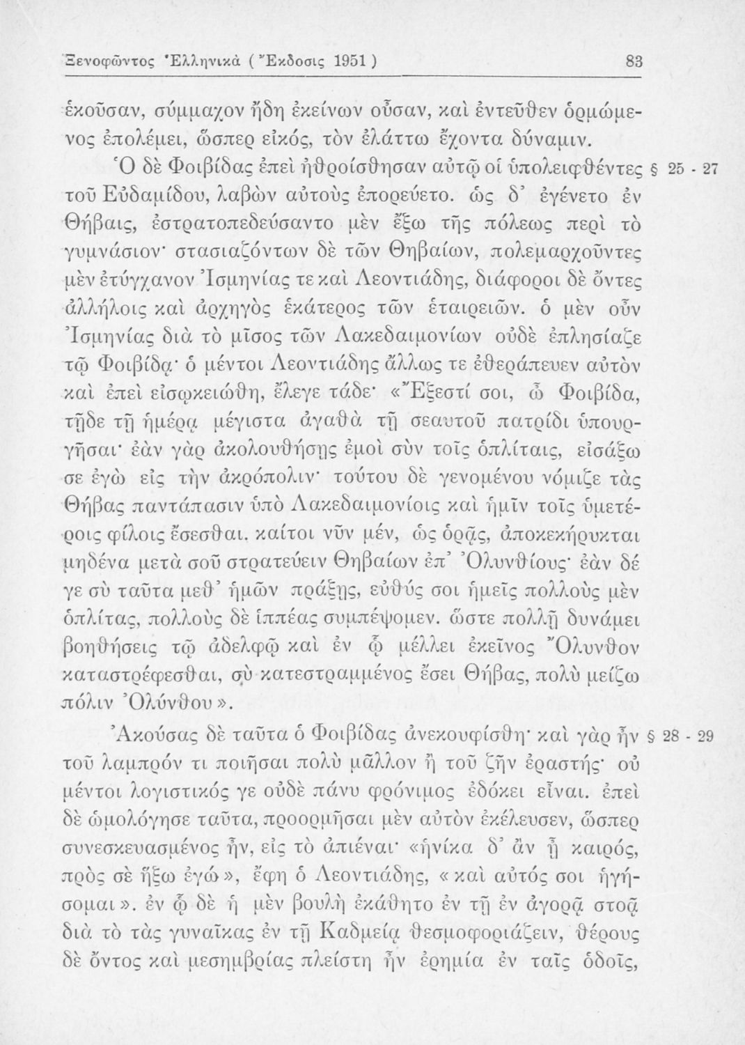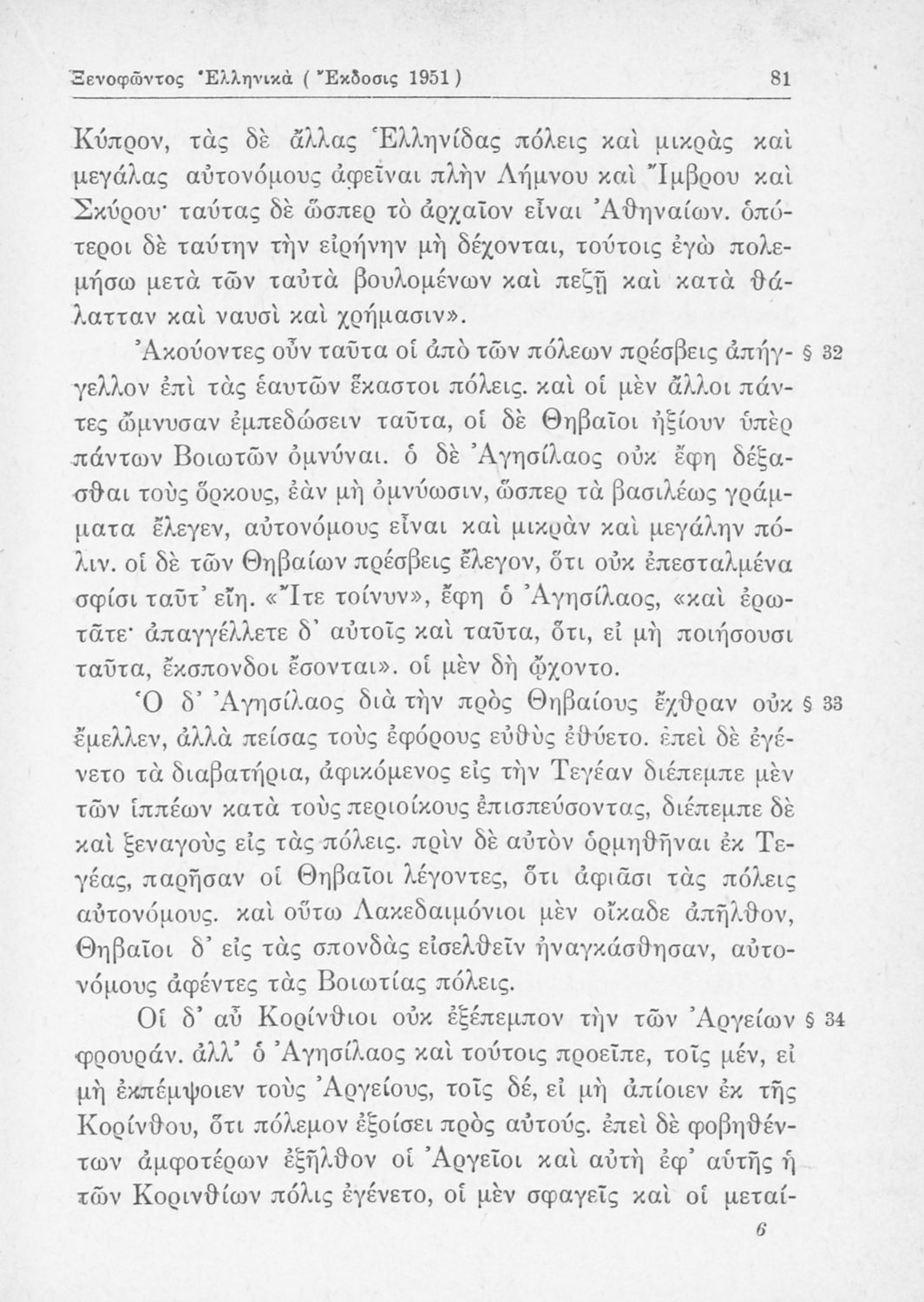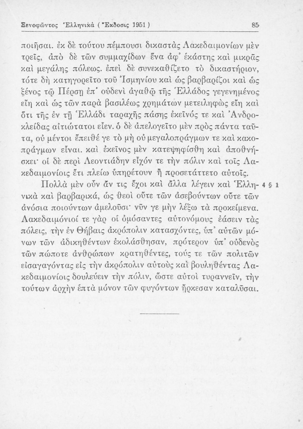 Σχολικό εγχειρίδιο Αρχαίων Ελληνικών Β΄ Γυμνασίου που περιλαμβάνει αποσπάσματα από τα Ελληνικά του Ξενοφώντα, εισαγωγή, ερμηνευτικές παρατηρήσεις και πίνακες και σχεδιαγράμματα μαχών.