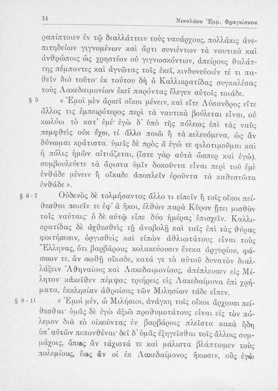 Ξενοφών, Νικόλαος Εμμ. Φραγκίσκος (σχόλια)