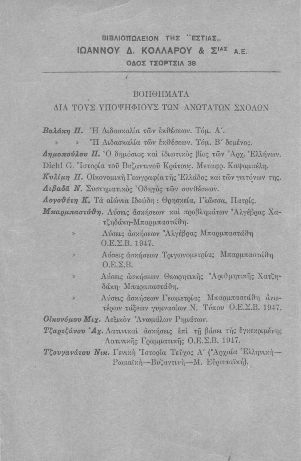 Εκδότης: Ιωάννης Δ. Κολλάρος, Βιβλιοπωλείο της "Εστίας" Τόπος έκδοσης: Αθήνα |