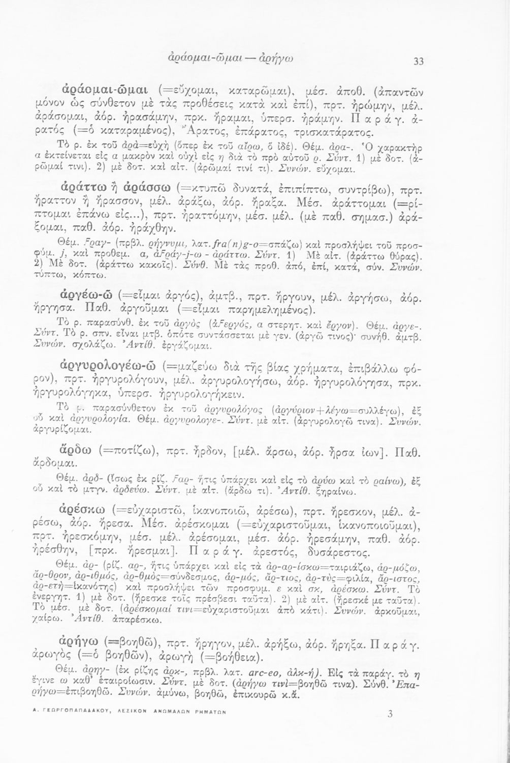 Μαθητικό βοήθημα Αρχαίων Ελληνικών που αποτελεί λεξικό ανωμάλων ρημάτων της αρχαίας ελληνικής και περιλαμβάνει την ετυμολογική επεξήγηση των ρημάτων, συνώνυμα και αρχικούς χρόνους.