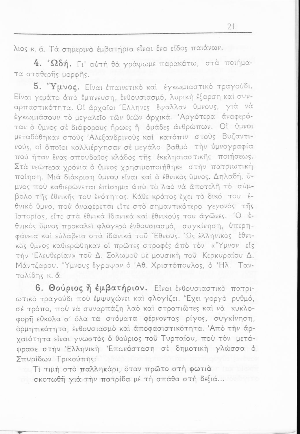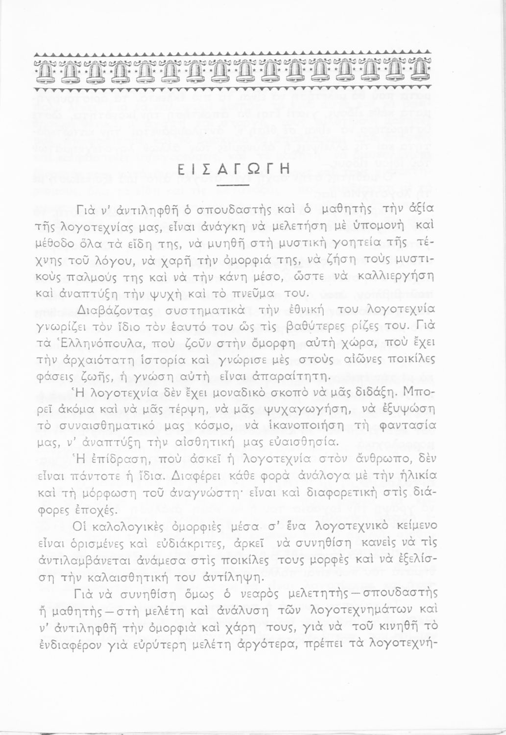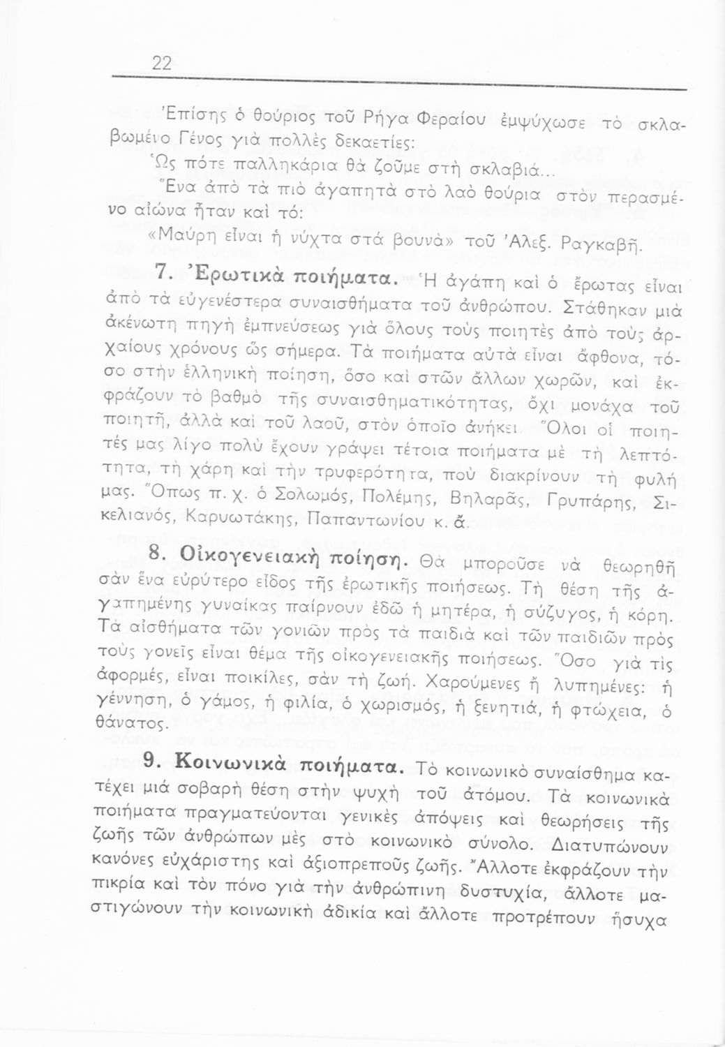 Σχολικό εγχειρίδιο Νέων Ελληνικών Α΄ Γυμνασίου που περιλαμβάνει δοκίμια, πεζά και ποιήματα Ελλήνων συγγραφέων και δημοτικά τραγούδια εμπνευσμένα από τη θρησκευτική, εθνική και κοινωνική ζωή, τη "δοκιμασία της ...