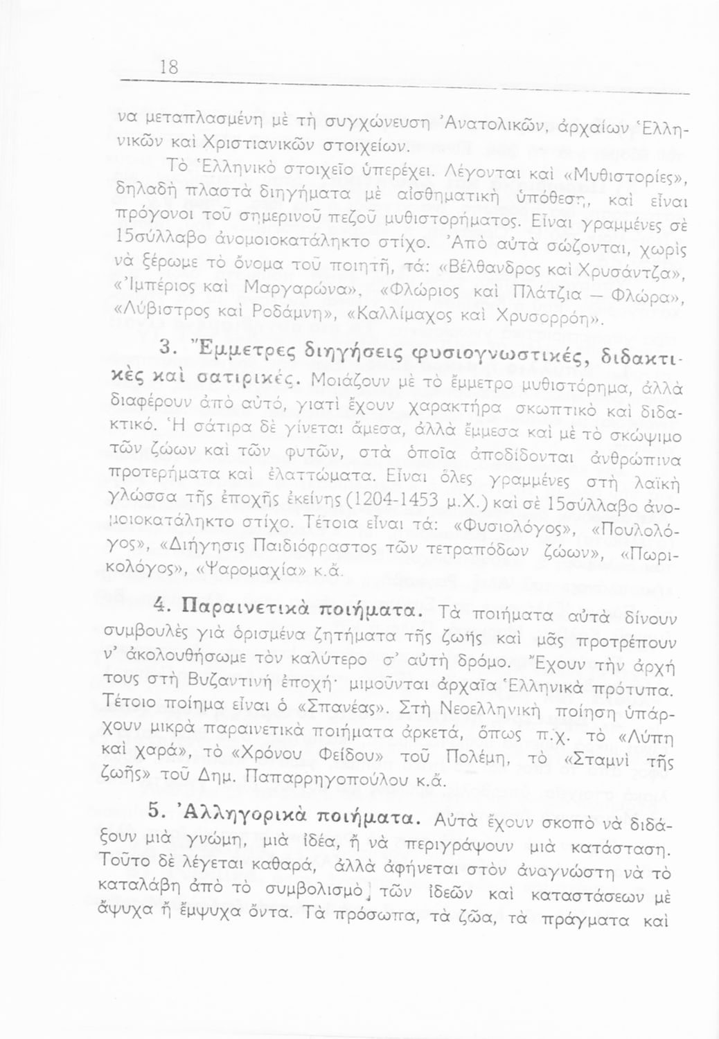 Σχολικό εγχειρίδιο Νέων Ελληνικών Γ΄ Γυμνασίου που περιλαμβάνει δημοτικά τραγούδια, και χαρακτηριστικά δείγματα της κρητικής λογοτεχνίας, της επτανησιακής και ρομαντικής σχολής, της Νέας Αθηναϊκής Σχολής και ...