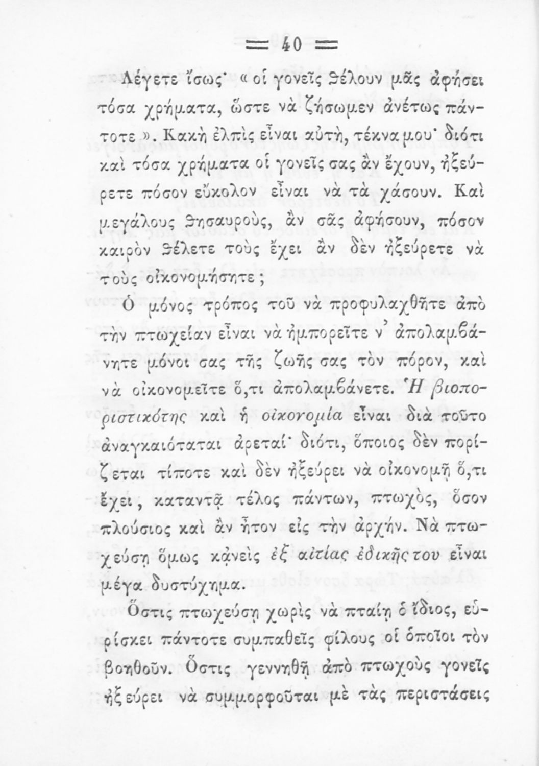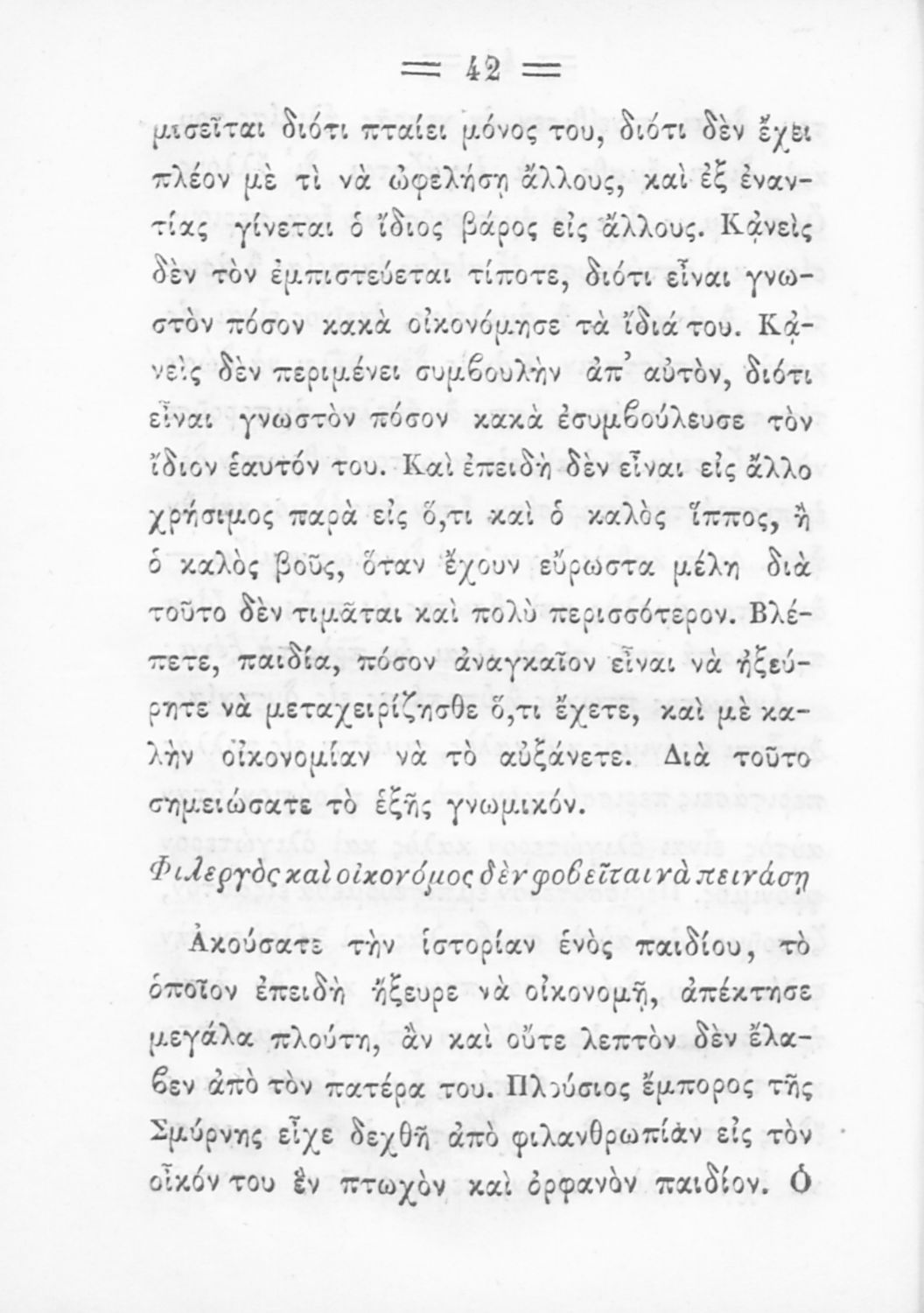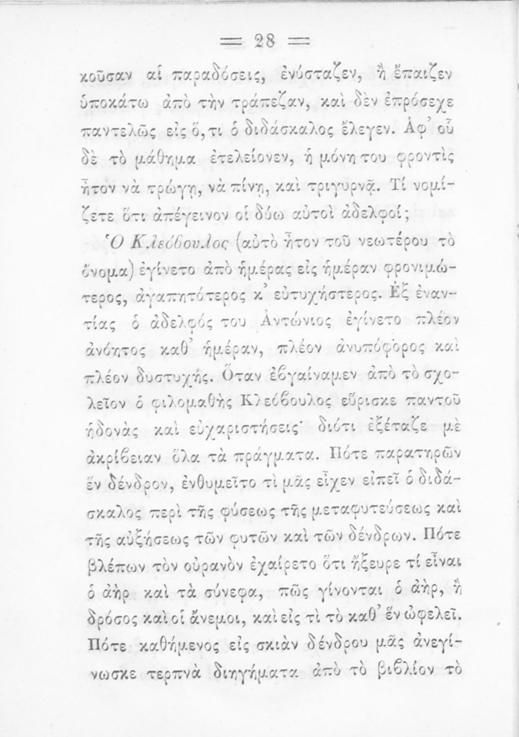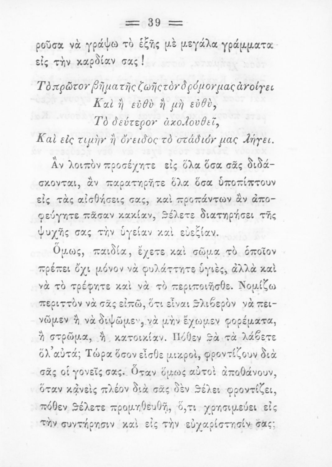 Σχολικό εγχειρίδιο για τα αλληλοδιδακτικά σχολεία που αποσκοπεί στην ηθική και κοινωνική διαπαιδαγώγηση της "ορθόδοξης νεολαίας". Εγκρίθηκε από την Εκκλησιαστική Επιτροπή επειδή δεν περιέχει κάτι που να εναντιώνεται στη "θρησκεία, την ηθική και την εξουσία".