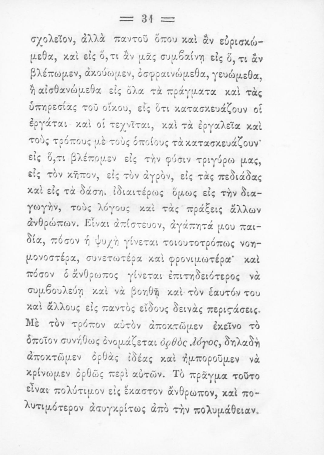 Βαθμίδα εκπαίδευσης: Πρωτοβάθμια Γλώσσα: Καθαρεύουσα Παρουσίαση περιεχομένου: Σχολικό εγχειρίδιο για τα αλληλοδιδακτικά σχολεία που αποσκοπεί στην ηθική και κοινωνική διαπαιδαγώγηση της "ορθόδοξης νεολαίας". Εγκρίθηκε από την Εκκλησιαστική Επιτροπή επειδή δεν περιέχει κάτι που να εναντιώνεται στη "θρησκεία, την ηθική και την εξουσία". |