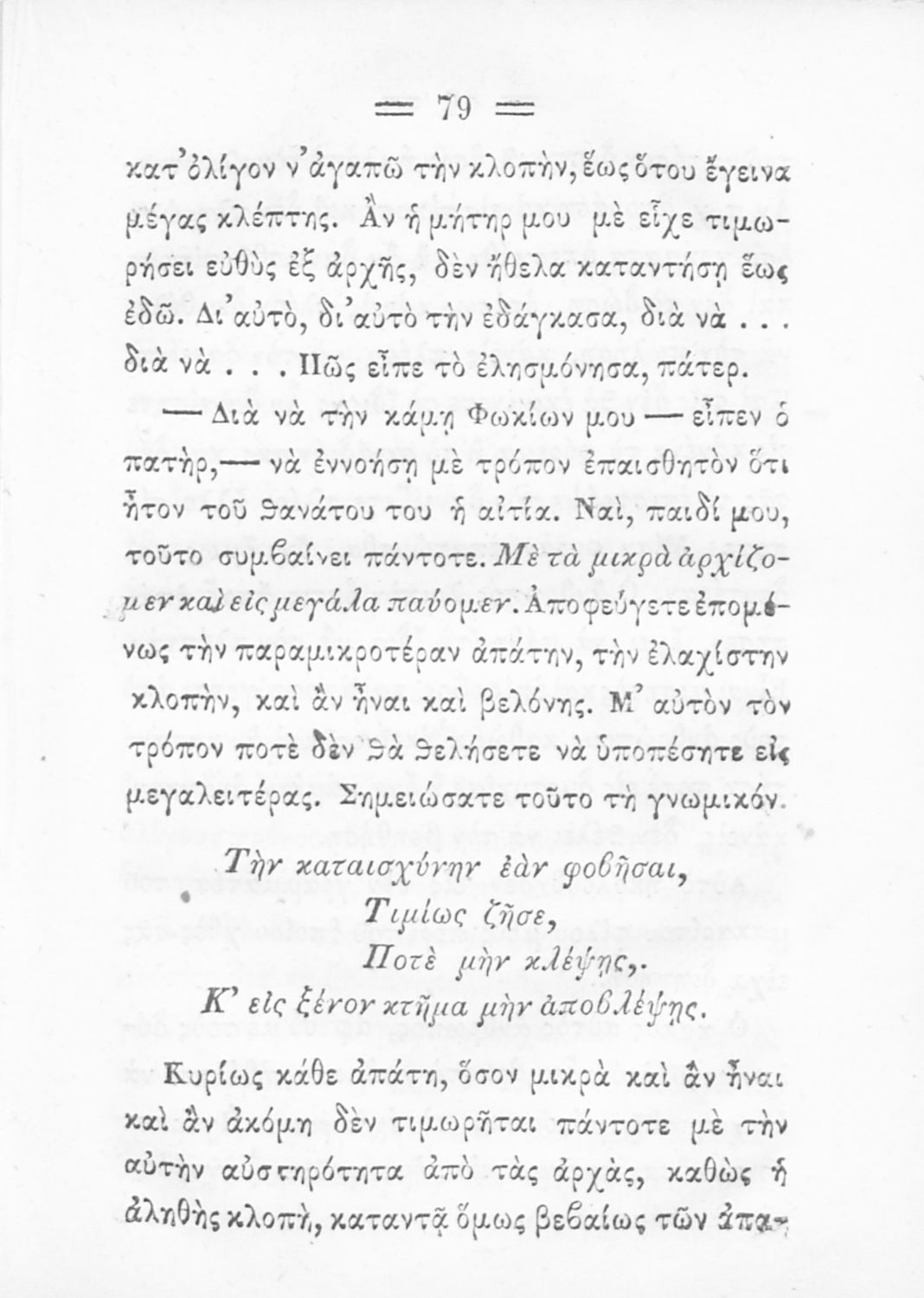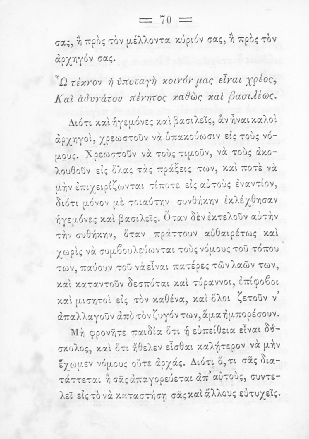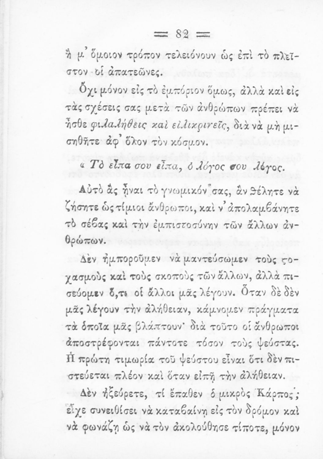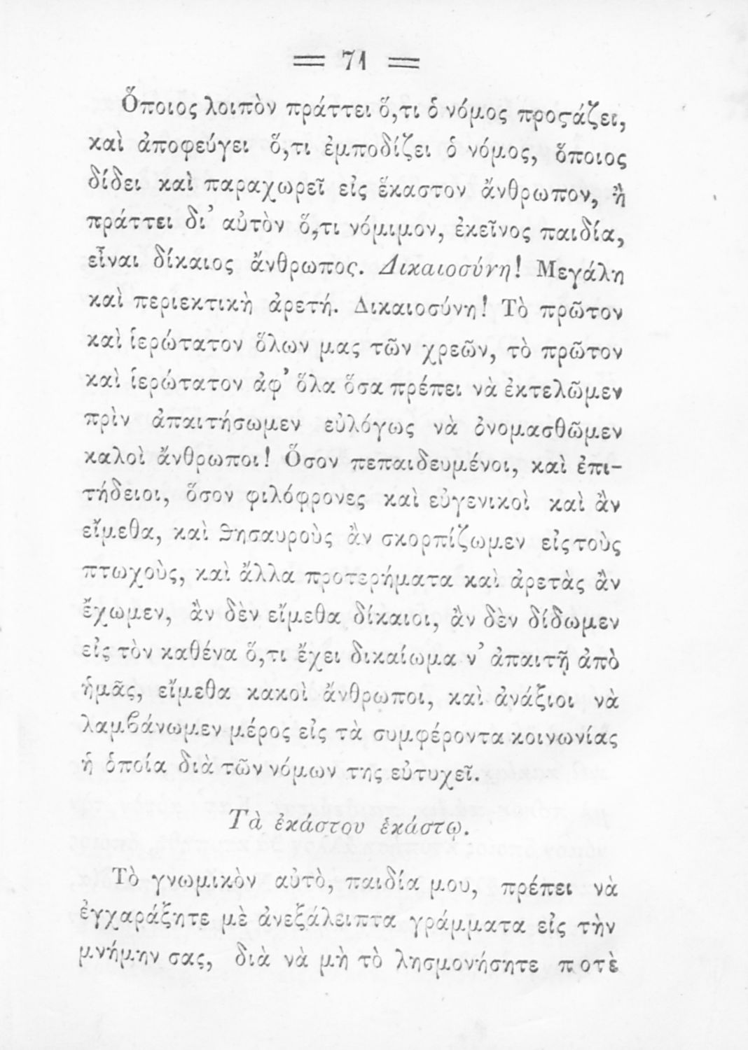 Σχολικό εγχειρίδιο για τα αλληλοδιδακτικά σχολεία που αποσκοπεί στην ηθική και κοινωνική διαπαιδαγώγηση της "ορθόδοξης νεολαίας". Εγκρίθηκε από την Εκκλησιαστική Επιτροπή επειδή δεν περιέχει κάτι που να εναντιώνεται στη "θρησκεία, την ηθική και την εξουσία".
