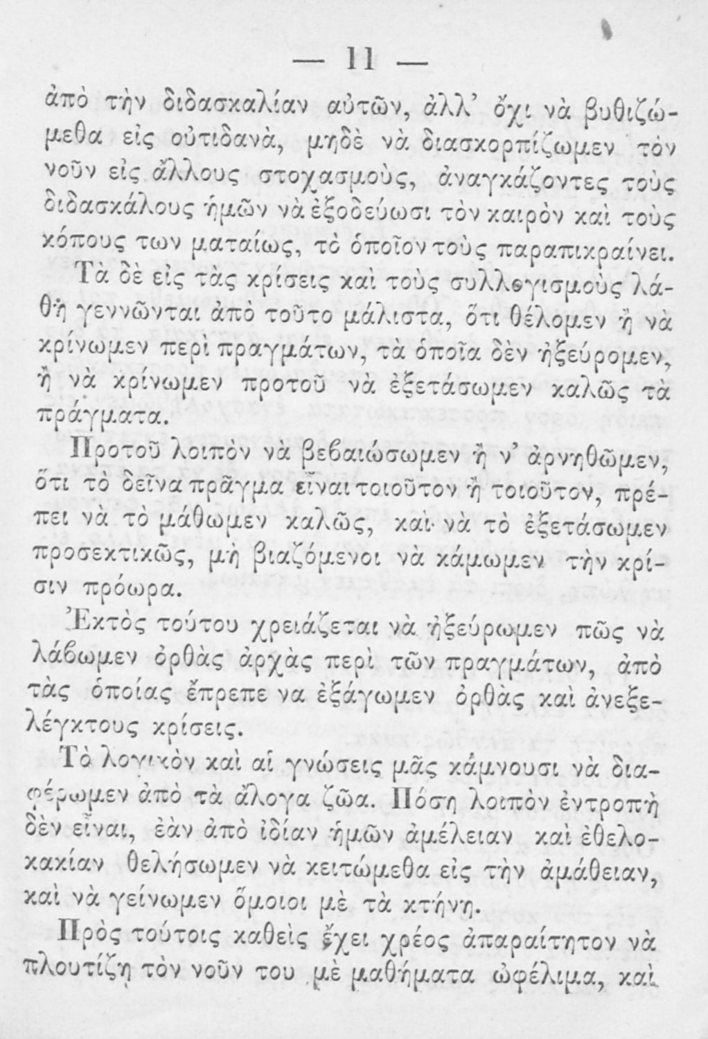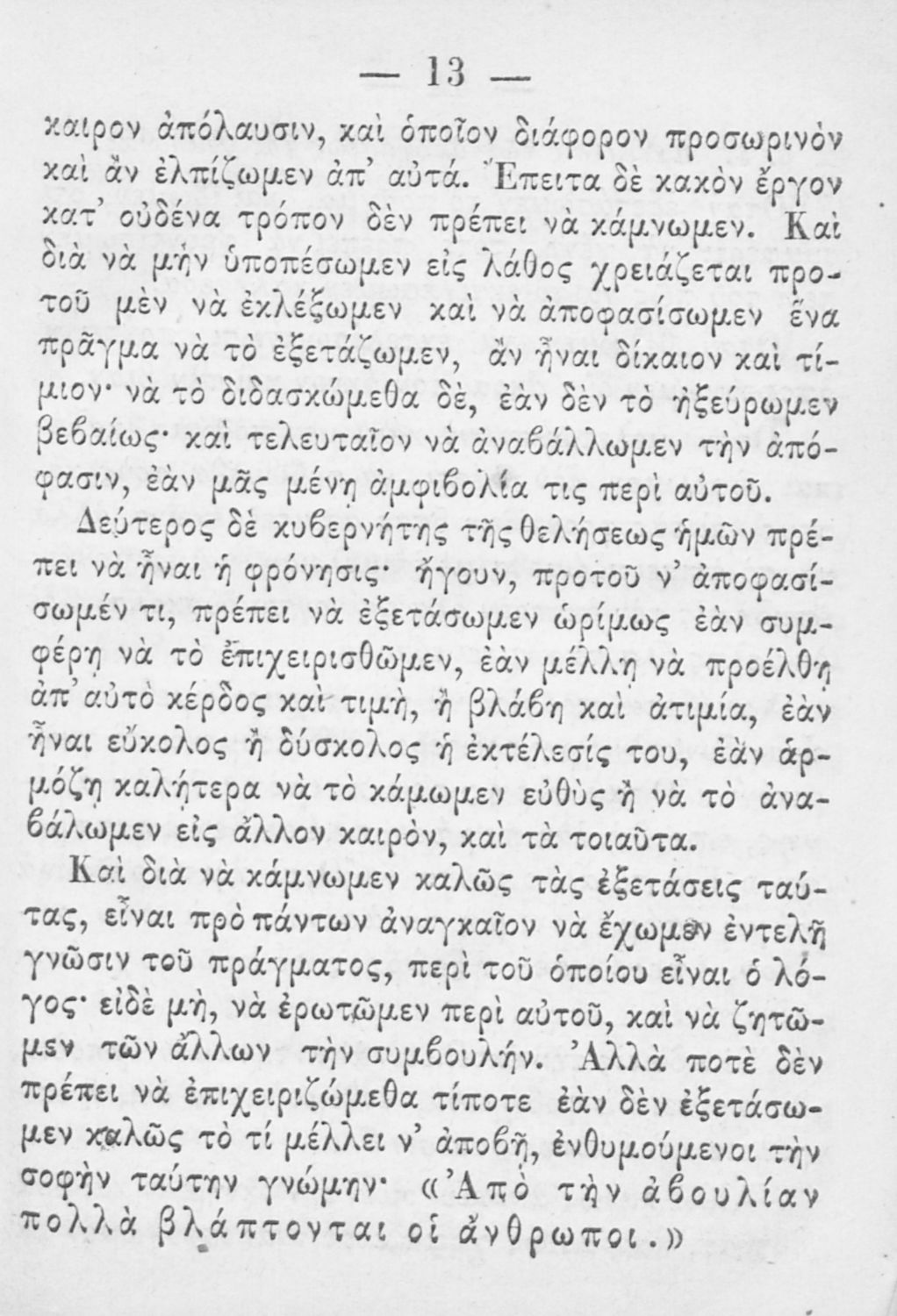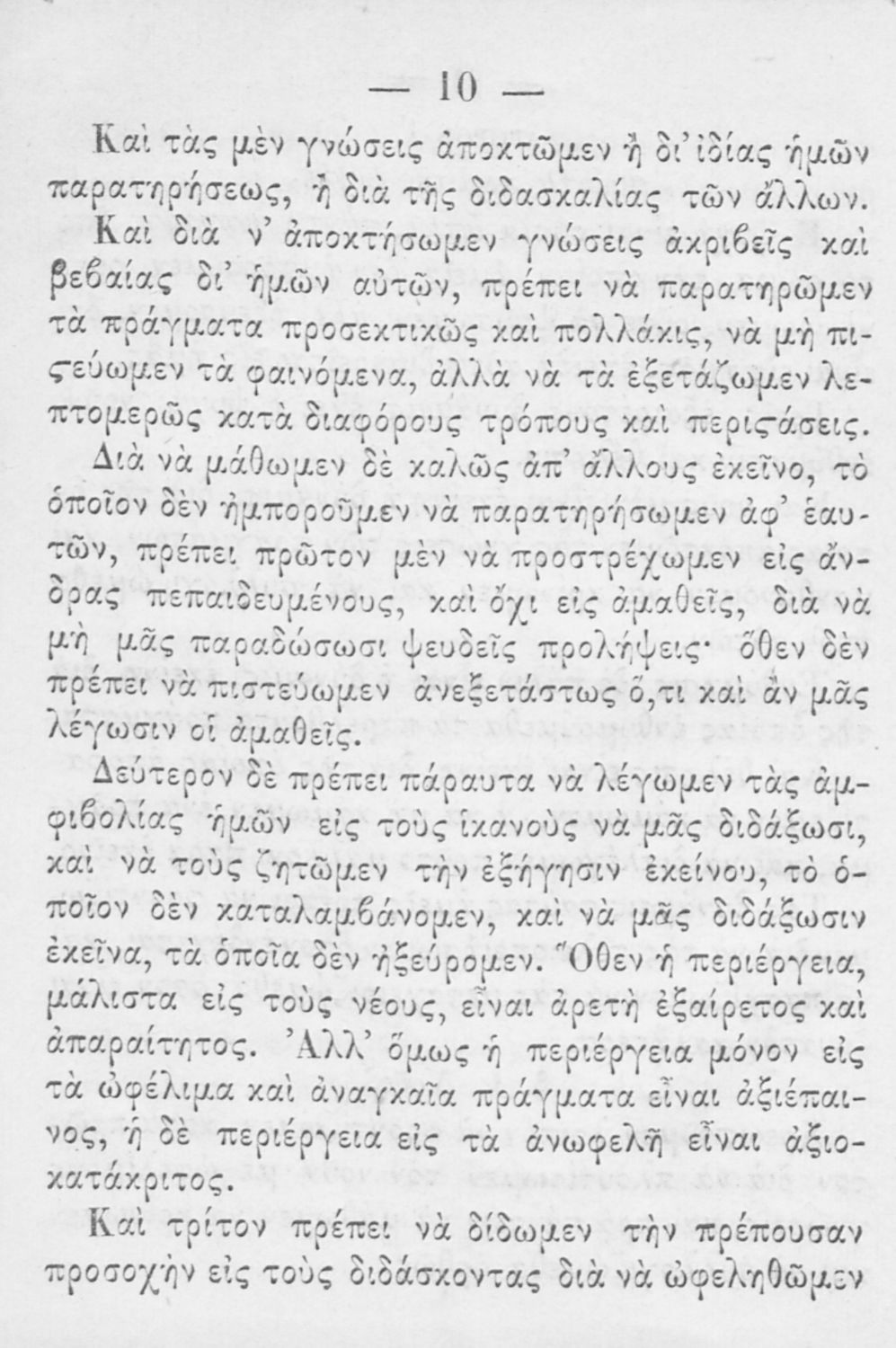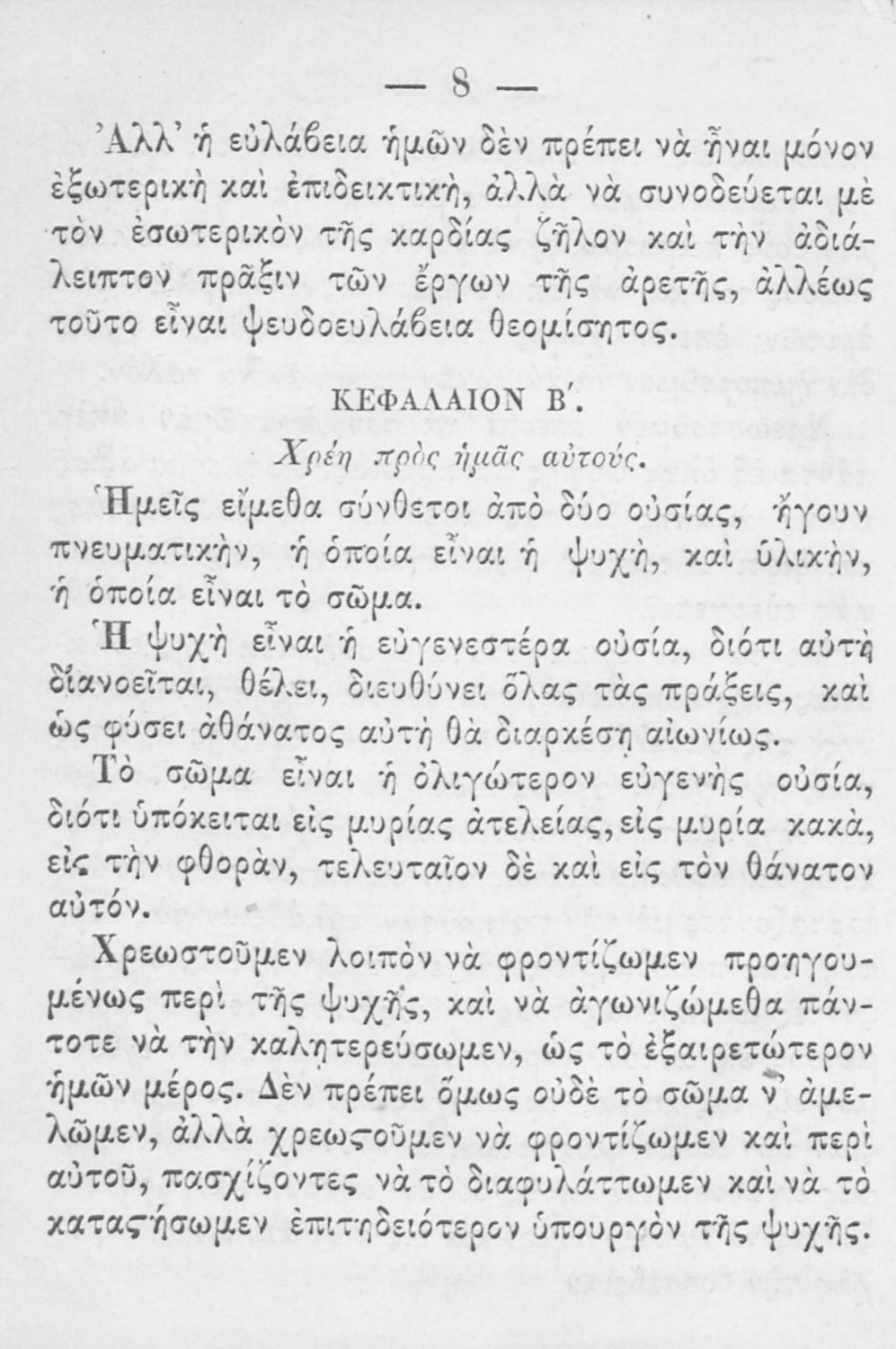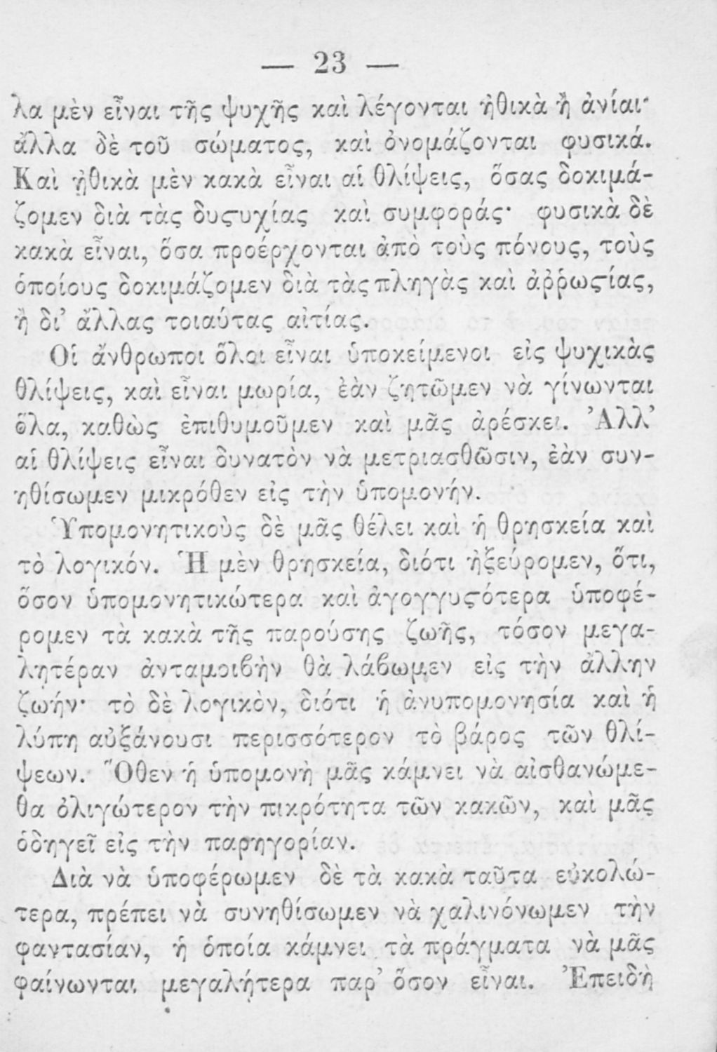 Σχολικό εγχειρίδιο για τα αλληλοδιδακτικά σχολεία που αποσκοπεί στην ηθική και κοινωνική διαπαιδαγώγηση της "ορθόδοξης νεολαίας". Εγκρίθηκε από την Εκκλησιαστική Επιτροπή επειδή δεν περιέχει κάτι που να εναντιώνεται στη "θρησκεία, την ηθική και την εξουσία".