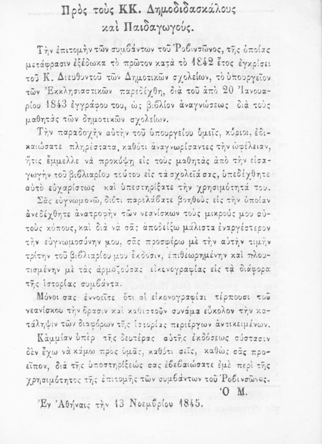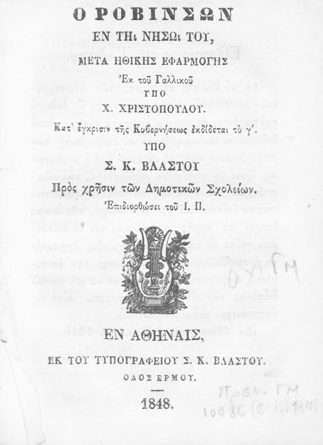 Τίτλος: Ο Ροβινσών εν τη νήσω του μετά ηθικής εφαρμογής