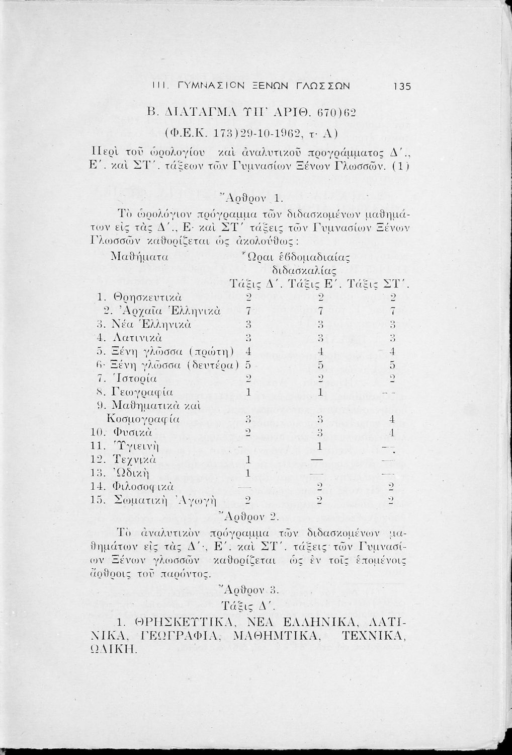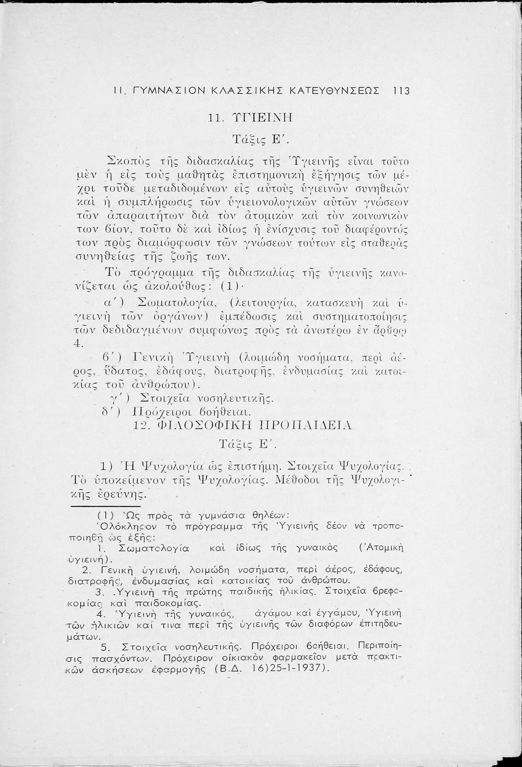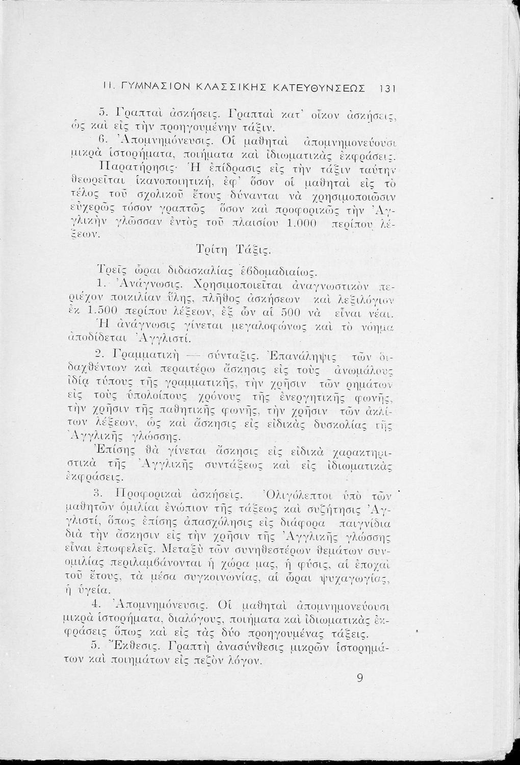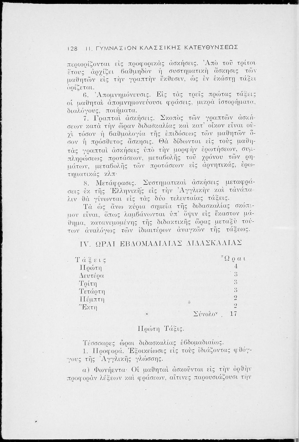 Έκδοση του Υπουργείο Παιδείας που περιλαμβάνει τα ωρολόγια αναλυτικά προγράμματα των μαθημάτων που διδάσκονται στα Εξατάξια Γυμνάσια, Πρακτικά Λύκεια, Ανώτερα Παρθεναγωγεία και τα Τριτάξια Αστικά Σχολεία.