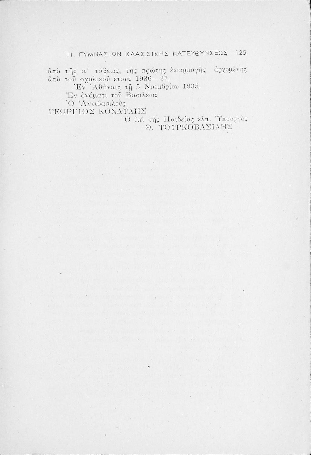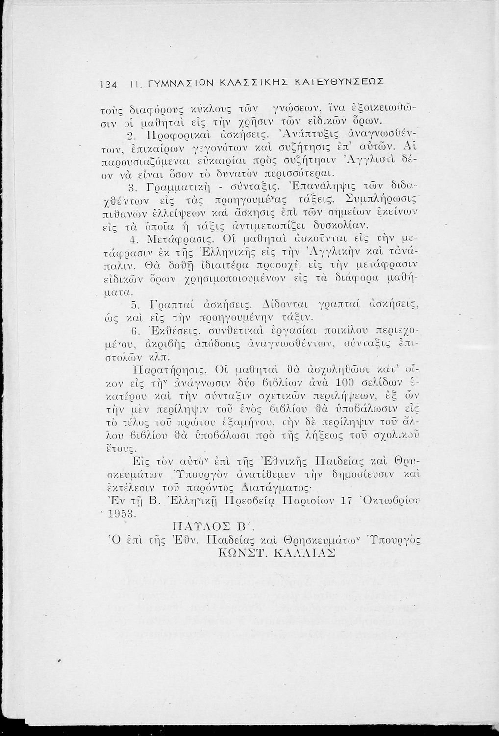 Αναλυτικό πρόγραμμα που υπογράφεται από τον Βασιλιά Κωνσταντίνο. Σε χειρόγραφη σημείωση στο εσωτερικό του αναφέρεται ότι πρόκειται για Το Ωρολόγιο και Αναλυτικό Πρόγραμμα των Δημοτικών που δημοσιεύτηκε στο ΦΕΚ