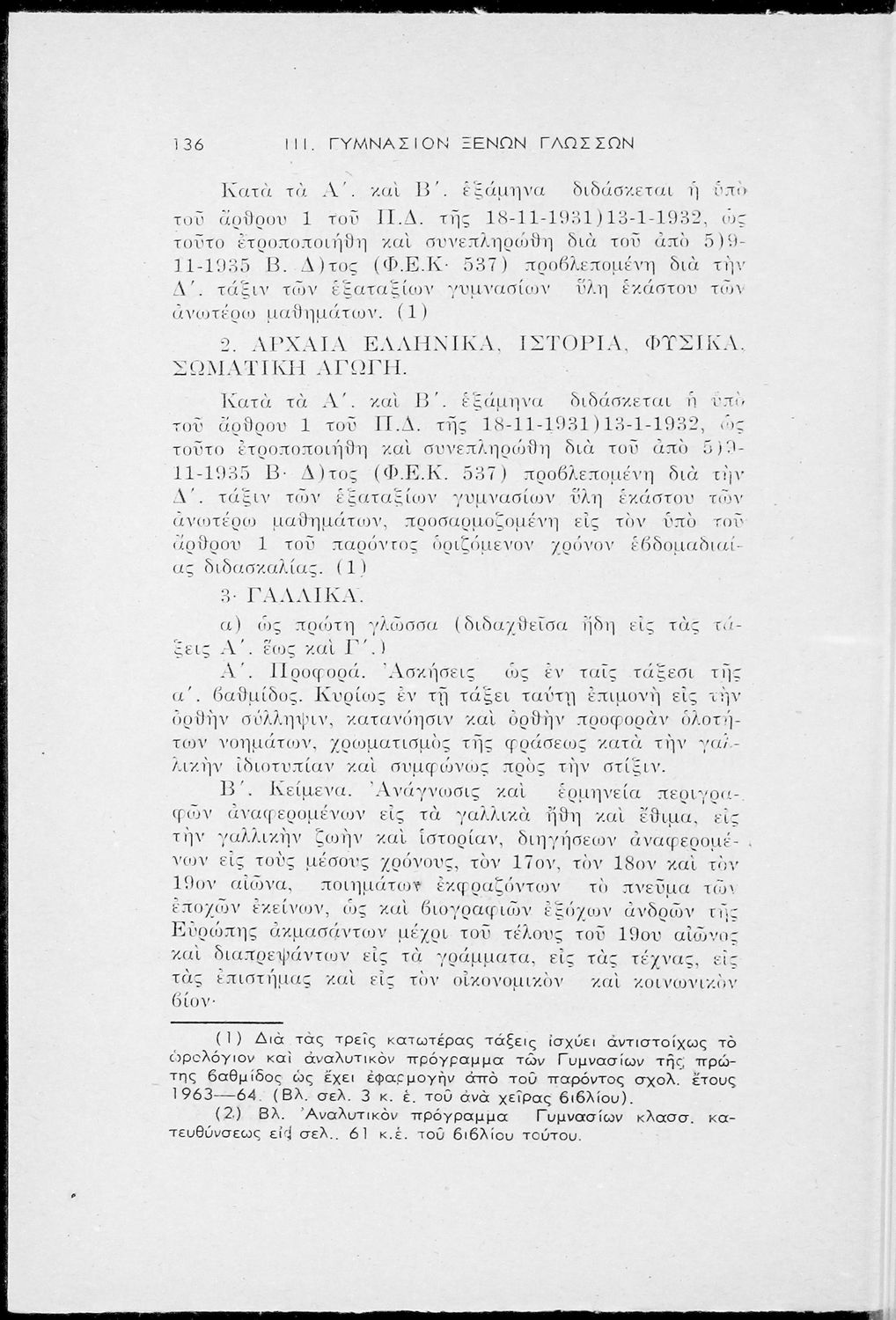 Τα αναλυτικά και ωρολόγια προγράμματα των Γυμνασίων (Κωδικοποίησις)
